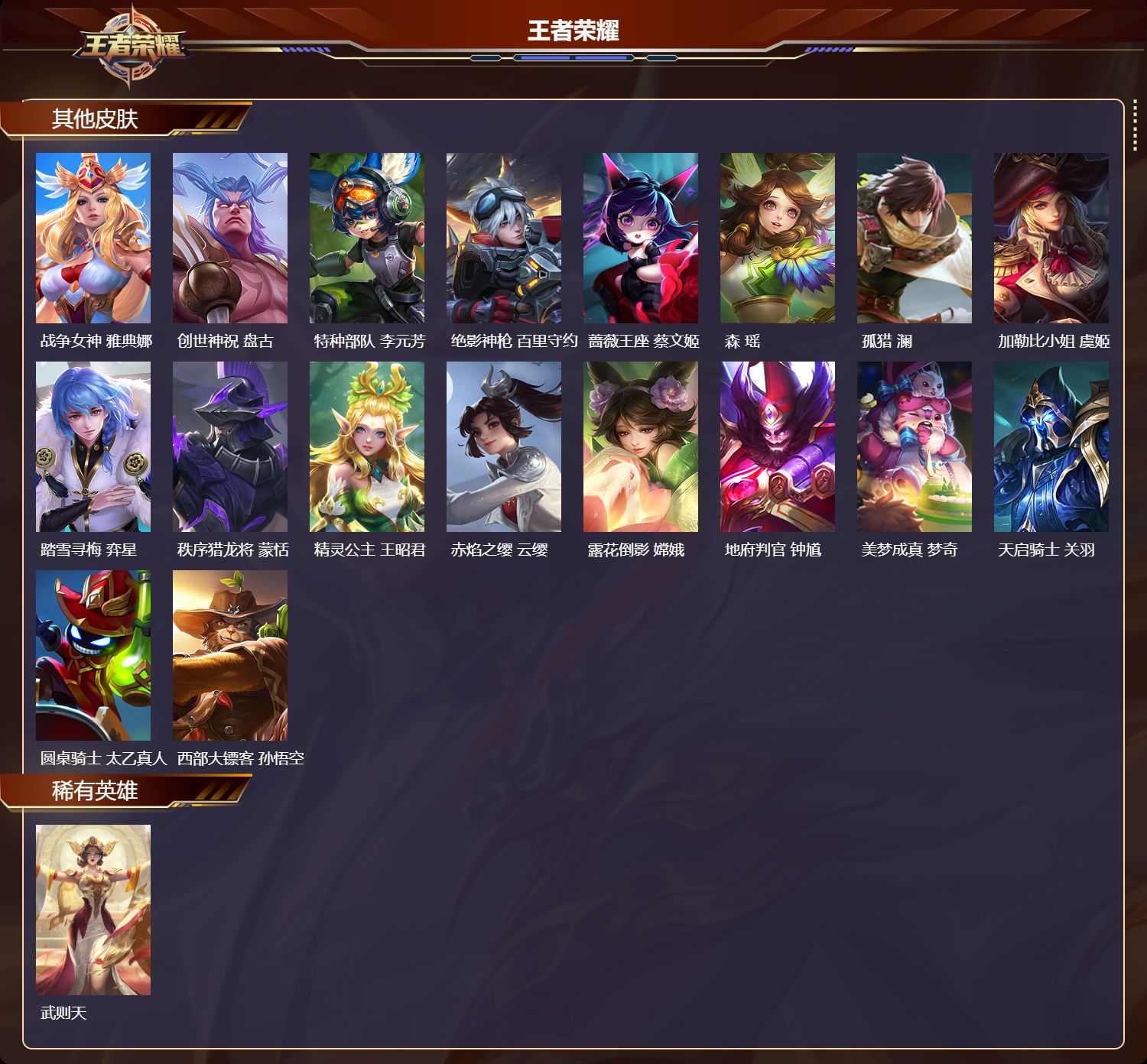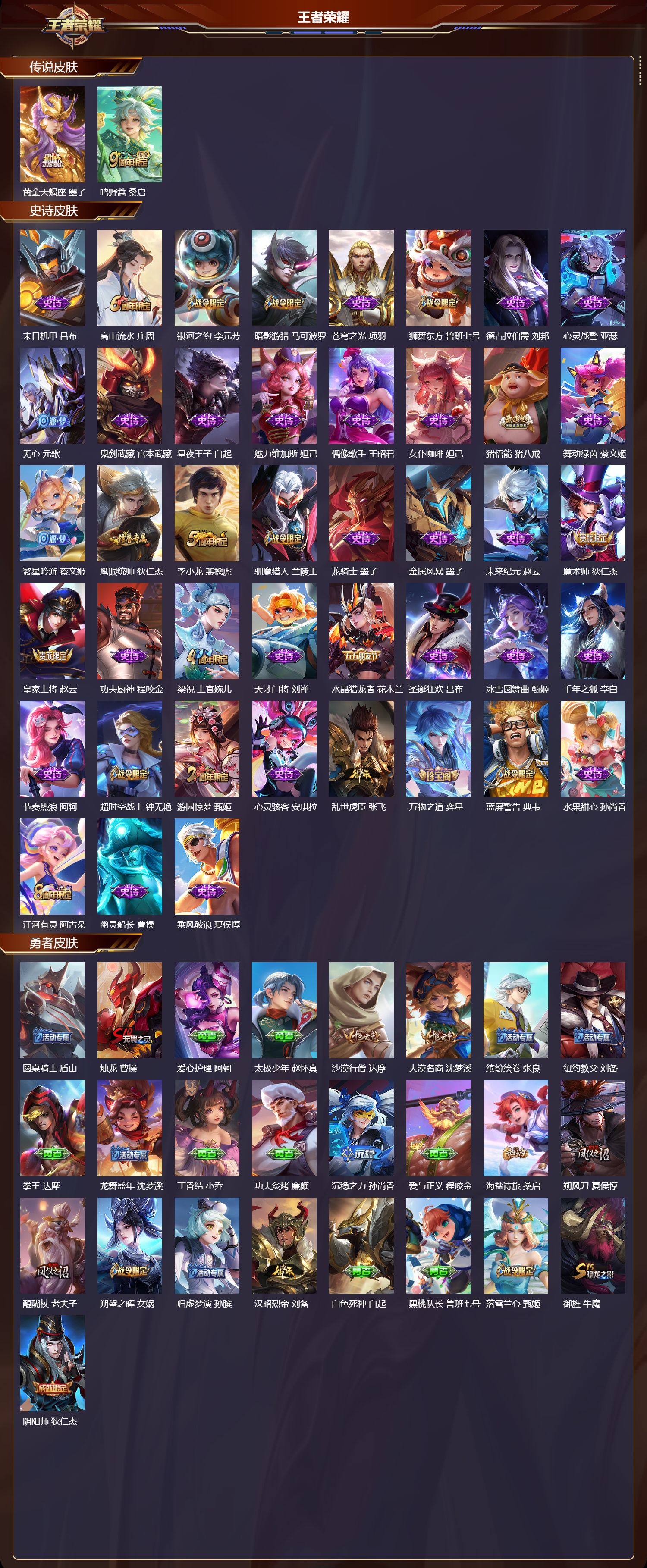 安卓qq/至尊星耀/227皮肤/128英雄/0典藏/0珍品无双/0无双/0珍品传说/2传说/43史诗/10稀有英雄【2 传说皮肤】黄金天蝎座 墨子鸣野蒿 桑启【43 史诗皮肤】末日机甲 吕布高山流水 庄周银河之约 李元芳暗影游猎 马可波罗苍穹之光 项羽狮舞东方 鲁班七号德古拉伯爵 刘邦心灵战警 亚瑟无心 元歌鬼剑武藏 宫本武藏星夜王子 白起魅力维加斯