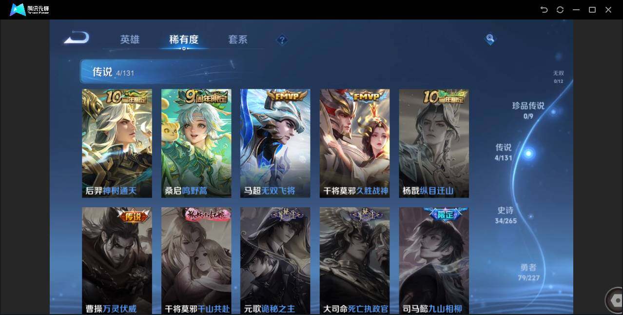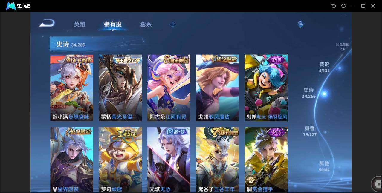 【w4266】安卓q区-可二次-贵4-125英雄-168皮肤-1典藏-4传说-34史诗-43限定-2按键-鸣剑·曳影/无双飞将/久胜战神/神树通天/江河有灵/魅语/顽趣/赏金猎手/电玩·爆裂旋风/鸣野蒿-贵族积分3845-营地id:2119620289