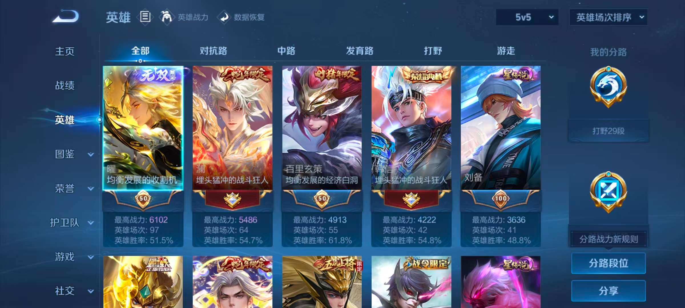 安卓qq/荣耀王者/258皮肤/125英雄/2典藏/0珍品无双/1无双/2珍品传说/17传说/63史诗/7稀有英雄【2 珍品传说】黑崎一护 宫本武藏时之奇旅 孙策【2 典藏皮肤】鸣剑·曳影 李白弑呛猎影 韩信【1 无双皮肤】器灵·螭龙剑 曜【17 传说皮肤】启明星使 虞姬逐花归海 澜白虎志 百里玄策地狱火 孙悟空浮生妄 夏洛特祈雪灵祝 公孙离时雨天司 诸葛
