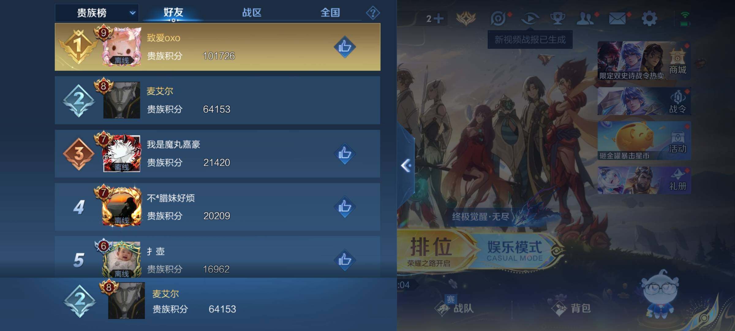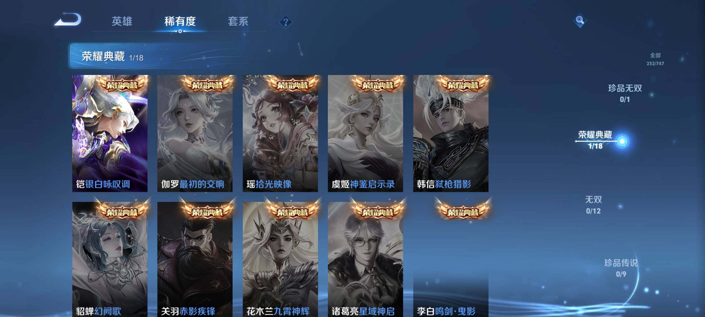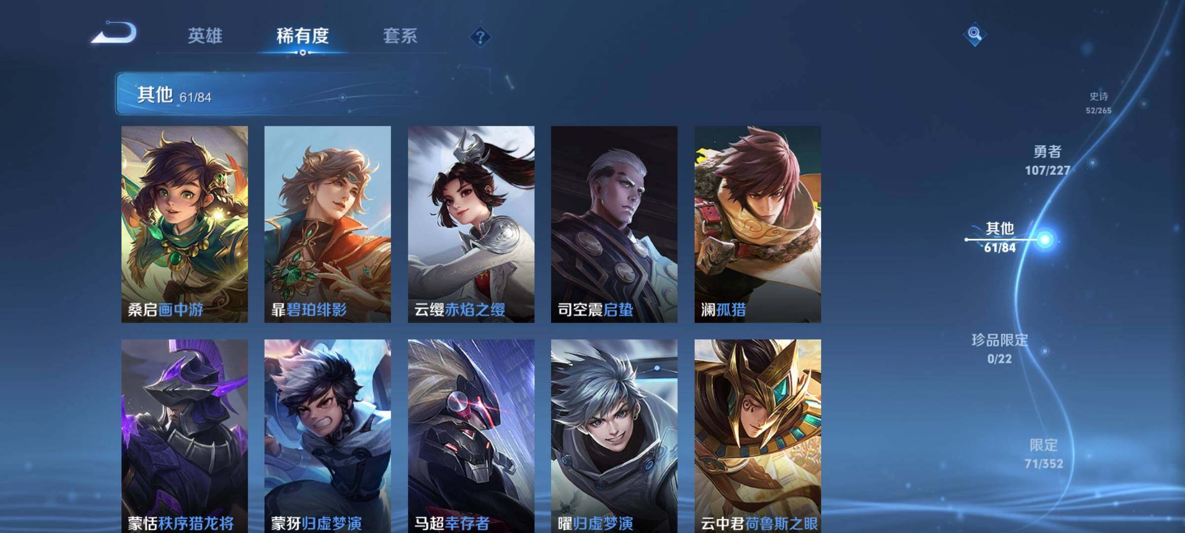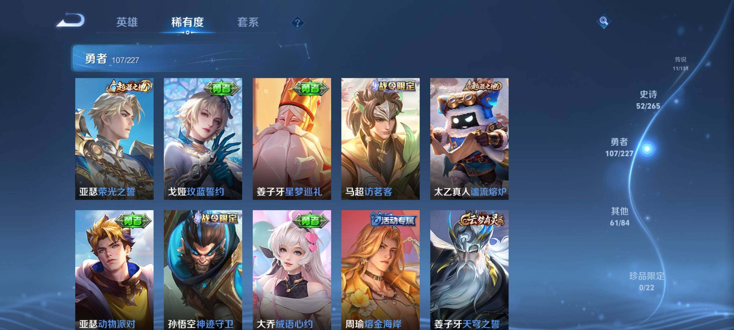_2313924-wx-v8-最强王者段位-有限制打野23段对抗路7段124英雄-233皮肤-1典藏皮肤-11传说-53史诗 【荣耀典藏】:铠银白咏叹调 【传说皮肤】:桑启鸣野蒿,铠冥王哈迪斯,云中君群星魔术团,虞姬启明星使,孙悟空零号赤焰,百里玄策白虎志,花木兰冠军飞将,孙尚香末日机甲,宫本武藏地狱之眼,孙悟空地狱火,狄仁杰超时空战士 【限定皮肤】:铠冥王哈迪斯,大乔绒语心约,姜子牙天穹之誓,狄仁杰阴阳师,赵云皇家上将,赵云龙胆,赵云百木心呛,墨子神迹守卫,鲁班七号狮舞东方,高渐离玩趣恶龙,阿轲迷踪丽影,周瑜赤莲之焰,元歌云间偶戏,元歌无心,夏侯惇朔风刀,典韦蓝屏警告,马可波罗暗影游猎,狄仁杰魔术师,狄仁杰万华元夜,达摩沙漠行僧,项羽海滩派对,老夫子醍醐杖,程咬金演武夺筹,刘邦夺宝奇兵,韩信逐梦之影,韩信飞衡,兰陵王驯魔猎人,兰陵王金庭之子,亚瑟潮玩骑士王,孙悟空至尊宝,孙悟空零号赤焰,孙悟空孙行者,牛魔御旌,后羿圣弓游侠,刘备百相守梦,李元芳银河之约,李元芳云中旅人,虞姬启明星使,钟馗神迹守卫,钟馗驱傩正仪,女娲朔望之晖,雅典娜单词大作战,鬼谷子原初探秘者,鬼谷子五谷丰年,苏烈千军破阵,百里玄策白虎志,弈星混沌棋,沈梦溪星空之诺,沈梦溪大漠名商,明世隐疑决卦,裴擒虎天狼狩猎者,裴擒虎李小龙,裴擒虎擒涛扼浪,云中君纤云弄巧,盾山御銮,猪八戒西部大镖客,蒙犽狂想玩偶喵,鲁班大师探海日志,桑启海盐诗旅,张良古海寻踪,鬼谷子天穹祈灯,刘邦剑破天穹,云中君群星魔术团,刘备异域游侠,周瑜熔金海岸 【年限皮肤】:百里玄策白虎志,韩信飞衡,赵云龙胆 【赛季限定】:夏侯惇朔风刀,狄仁杰万华元夜,达摩沙漠行僧,老夫子醍醐杖,程咬金演武夺筹,兰陵王金庭之子,张良古海寻踪,牛魔御旌,李元芳云中旅人,钟馗驱傩正仪,鬼谷子原初探秘者,苏烈千军破阵,弈星混沌棋,沈梦溪大漠名商,明世隐疑决卦,裴擒虎擒涛扼浪,盾山御銮,鲁班大师探海日志,桑启海盐诗旅,鬼谷子天穹祈灯,刘邦剑破天穹,姜子牙天穹之誓 【战令限定】:墨子神迹守卫,鲁班七号狮舞东方,阿轲迷踪丽影,周瑜赤莲之焰,元歌云间偶戏,典韦蓝屏警告,马可波罗暗影游猎,刘邦夺宝奇兵,兰陵王驯魔猎人,亚瑟潮玩骑士王,后羿圣弓游侠,李元芳银河之约,钟馗神迹守卫,女娲朔望之晖,雅典娜单词大作战,沈梦溪星空之诺,猪八戒西部大镖客,蒙犽狂想玩偶喵 【史诗皮肤】:赵云皇家