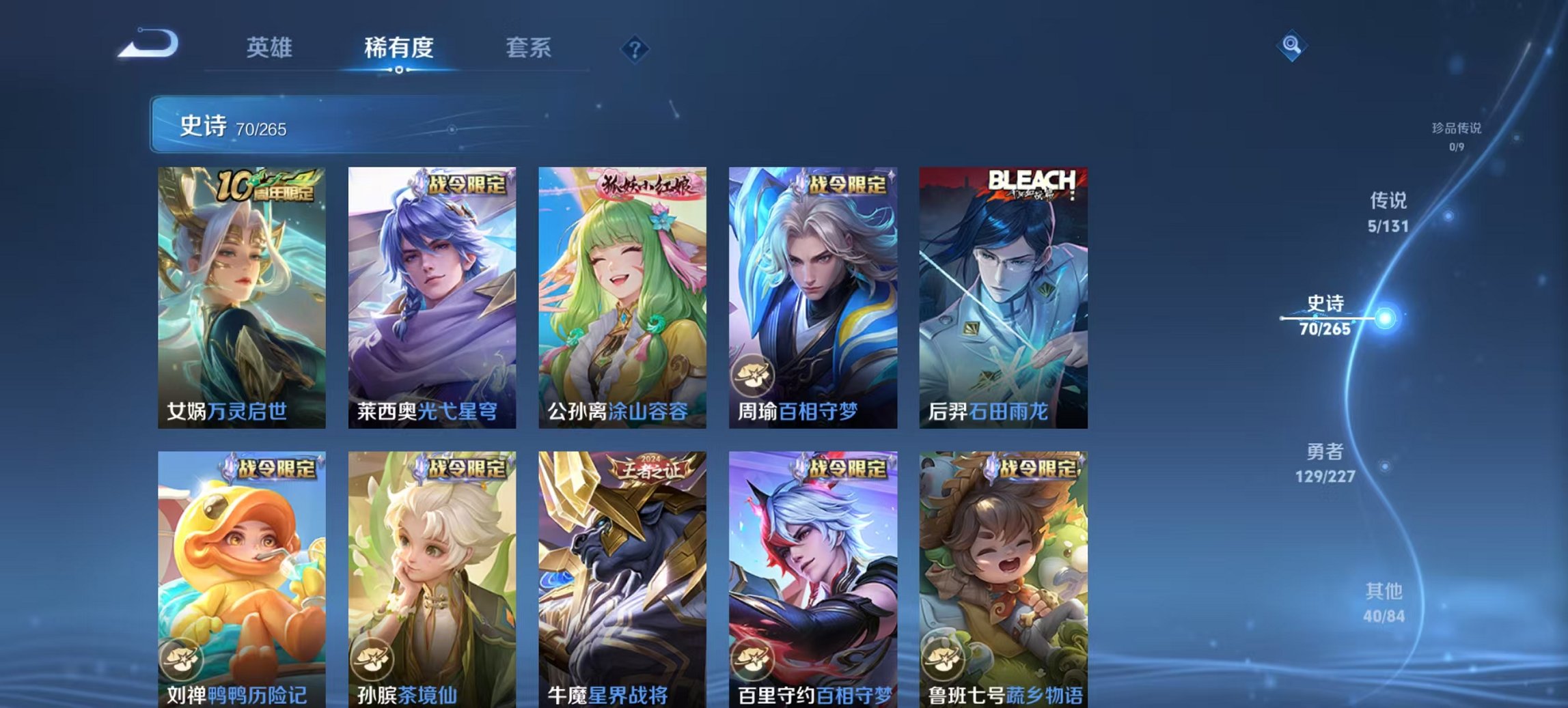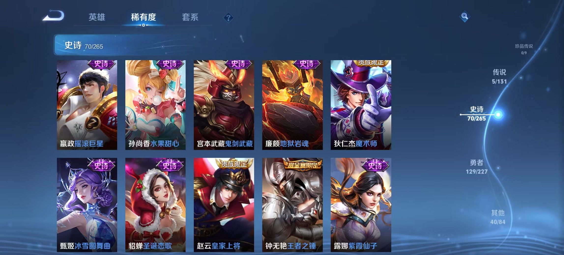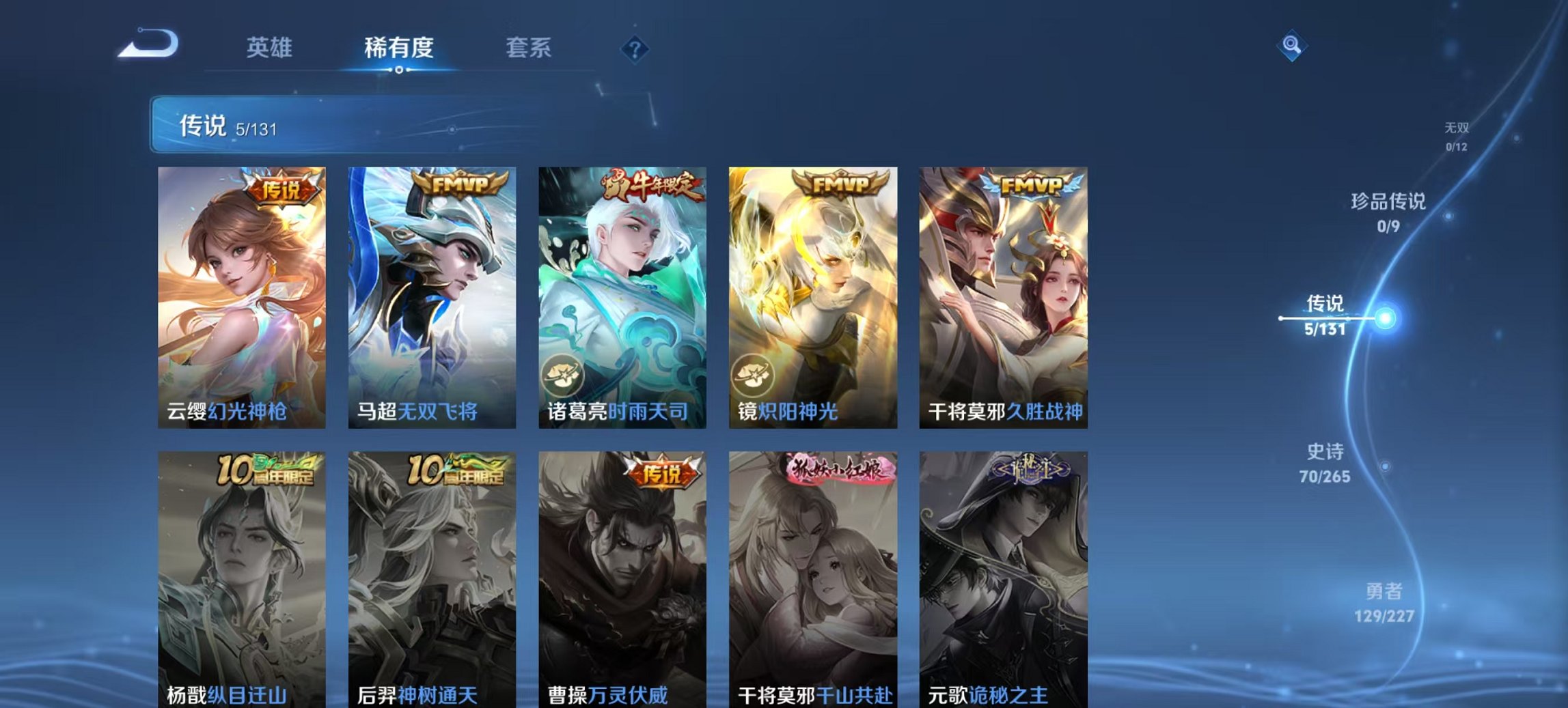 【至尊宝245皮肤1典藏5传说1金标 秒换绑不用等】安卓q-126英雄【1水晶】九霄神辉【5传说】无双飞将 久胜战神 炽阳神光 时雨天司 幻光神呛【72史诗】飞衡 鸭鸭历险记 至尊宝 星界战将 江河有灵 妄想食味 地狱燃心 天穹祈灯 石田雨龙 百相守梦 逆浪荇歌 茶境仙 星界游侠 涂山容容 顽趣 蔬乡物语 完美运算 热力回旋 魅语 幽灵船长 繁星吟游 女仆咖啡 魅力维加斯 魔术师 鹰眼统帅 圣诞
