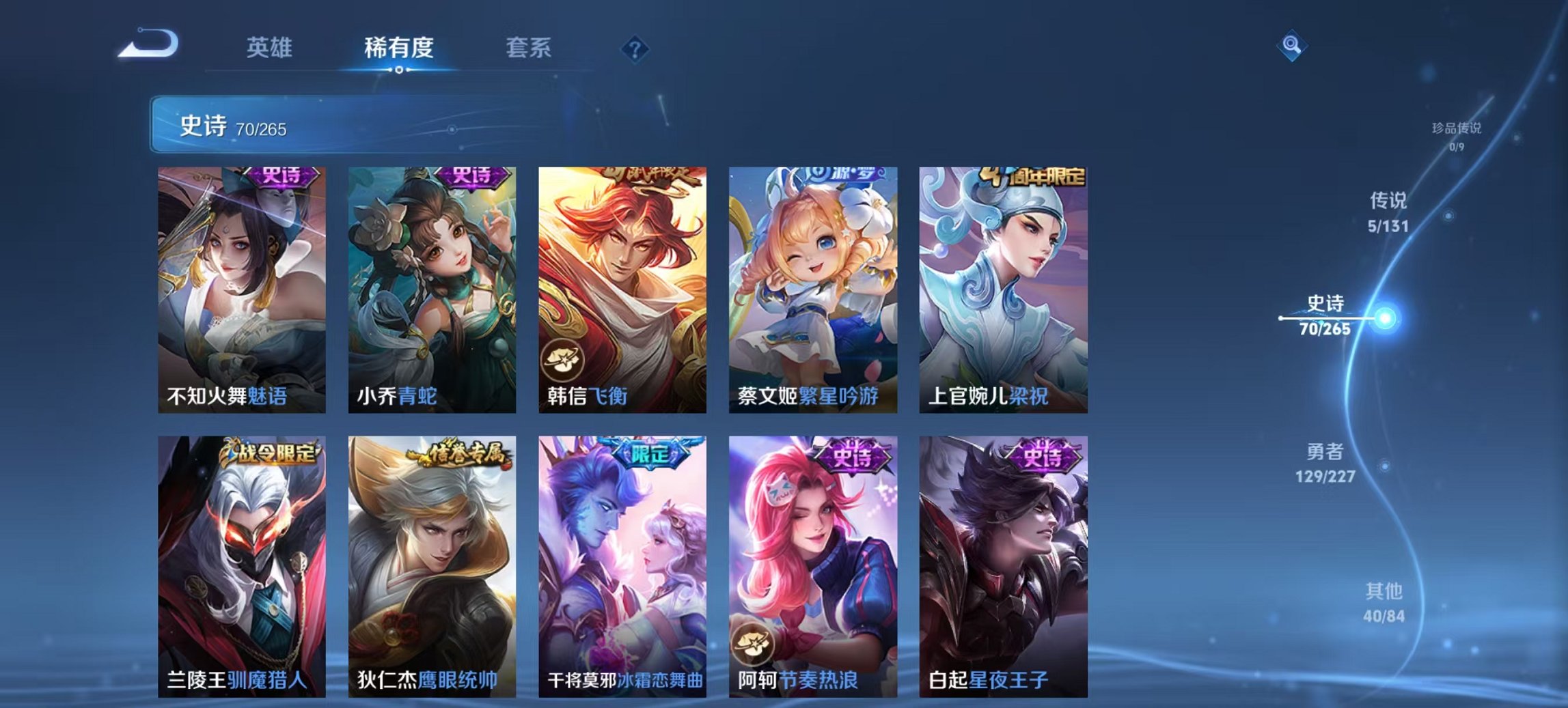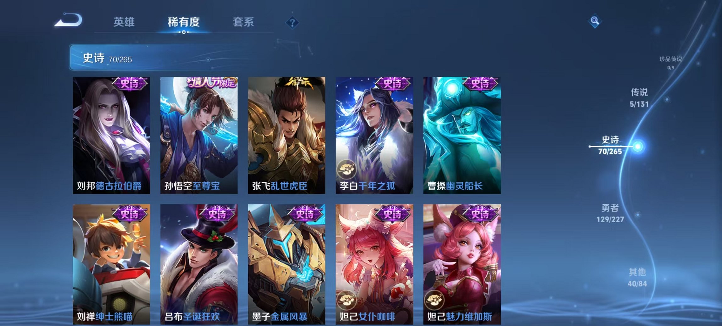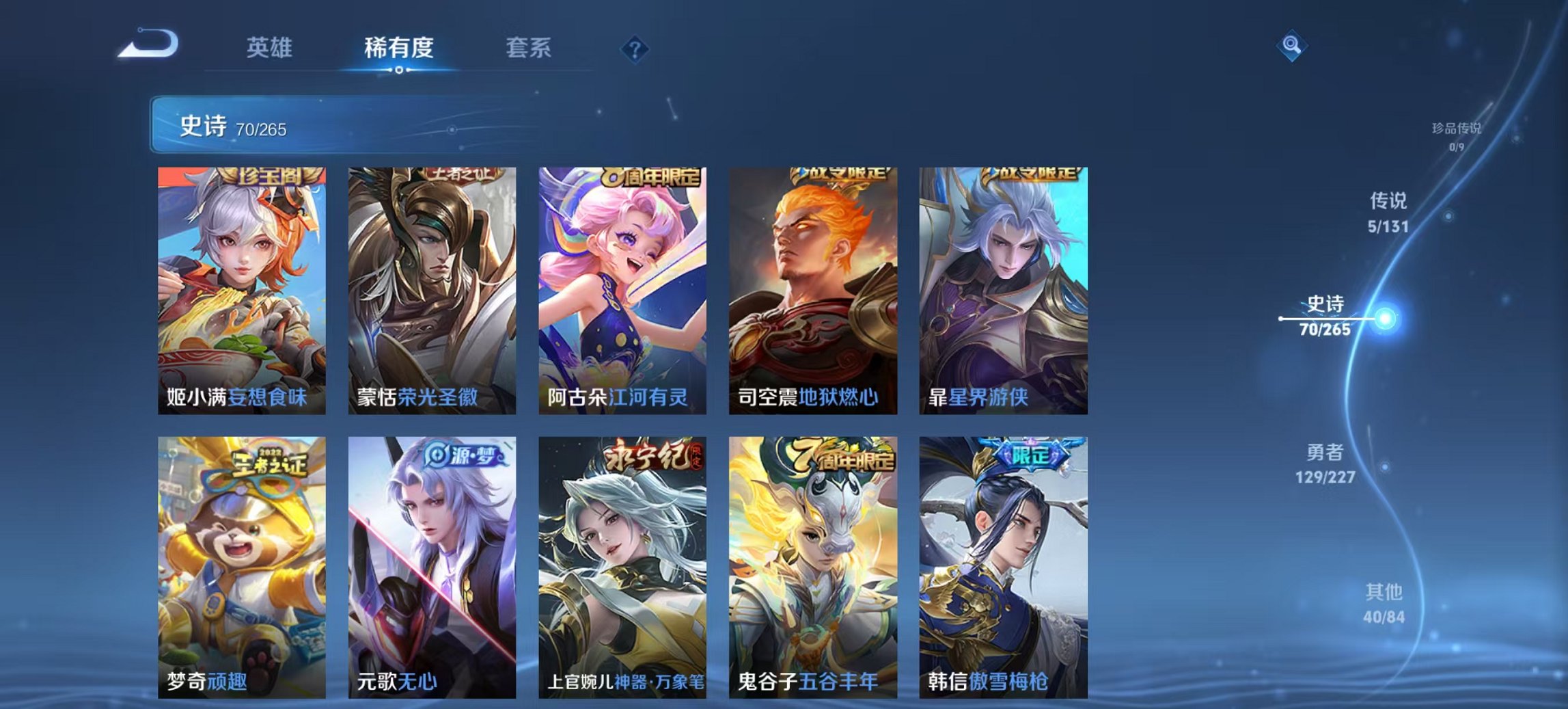 【至尊宝245皮肤1典藏5传说1金标 秒换绑不用等】安卓q-126英雄【1水晶】九霄神辉【5传说】无双飞将 久胜战神 炽阳神光 时雨天司 幻光神呛【72史诗】飞衡 鸭鸭历险记 至尊宝 星界战将 江河有灵 妄想食味 地狱燃心 天穹祈灯 石田雨龙 百相守梦 逆浪荇歌 茶境仙 星界游侠 涂山容容 顽趣 蔬乡物语 完美运算 热力回旋 魅语 幽灵船长 繁星吟游 女仆咖啡 魅力维加斯 魔术师 鹰眼统帅 圣诞