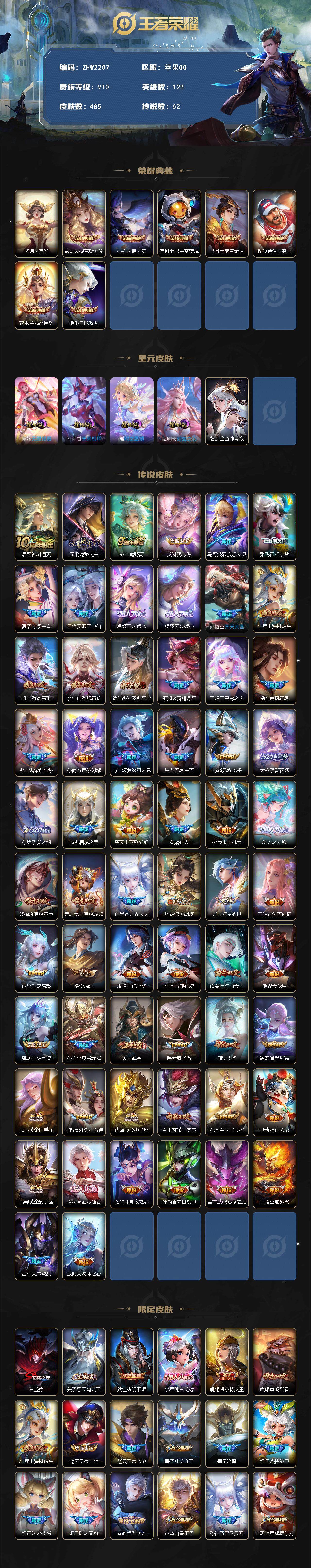 【店主推荐捡漏号!可直接换绑 小国程咬金】苹果q-v10-最强王者段位-128英雄-485皮肤-7典藏皮肤-1典藏英雄-62传说-161史诗 【英雄全皮】:元歌全皮,刘邦全皮,孙权全皮,娜可露露全皮,橘右京全皮,雅典娜全皮,鬼谷子全皮,狂铁全皮,盾山全皮,猪八戒全皮,鲁班大师全皮,蒙恬全皮,夏洛特全皮,金蝉全皮,空空儿全皮 【荣耀典藏】:武则天英雄,武则天倪克斯神谕,小乔天鹅之梦,鲁班七号星空梦想,芈月大秦宣太后,程咬金活力突击,花木兰九霄神辉,铠银白咏叹调 【传说皮肤】:后羿神树通天,元歌诡秘之主,桑启鸣野蒿,艾琳觅芳踪,马可波罗妄想实况,张飞百相守梦,夏洛特浮生妄,干将莫邪画中仙,虞姬无限倾心,项羽无限倾心,孙悟空齐天大圣,小乔山海琳琅生,曜山海苍雷引,李信山海炽霜斩,狄仁杰神器狴犴令,不知火舞绯月行,王昭君星穹之声,橘右京枫霜尽,娜可露露前尘镜,孙尚香音你闪耀,马可波罗深海之息,后羿无尽星芒,马超无双飞将,大乔挚爱花嫁,孙策挚爱之约,露娜启示之音,蔡文姬花朝如约,女娲补天,孙策末日机甲,瑶时之祈愿,裴擒虎寅虎赤拳,鲁班七号寅虎瑞焰,孙尚香异界灵契,貂蝉遇见胡旋,赵云淬星耀世,王昭君乞巧织情,西施游龙清影,曜李 ,周瑜音你心动,小乔音你心动,诸葛亮时雨天司,铠绛天战甲,虞姬启明星使,孙悟空零号赤焰,关羽武圣,曜云鹰飞将,伽罗太华,貂蝉猫影幻舞,张良黄金白羊座,干将莫邪久胜战神,达摩黄金狮子座,百里玄策白虎志,花木兰冠军飞将,梦奇胖达荣荣,后羿黄金射手座,诸葛亮武陵仙君,貂蝉仲夏夜之梦,孙尚香末日机甲,宫本武藏地狱之眼,孙悟空地狱火,吕布天魔缭乱,武则天海洋之心 【限定皮肤】:白起狰,姜子牙天穹之誓,狄仁杰阴阳师,小乔纯白花嫁,虞姬凯尔特女王,廉颇寅虎御盾,小乔山海琳琅生,赵云皇家上将,赵云百木心呛,墨子神迹守卫,墨子降魔,妲己热情桑巴,妲己时之彼端,妲己时之奇旅,嬴政优雅恋人,嬴政白昼王子,孙尚香异界灵契,鲁班七号狮舞东方,鲁班七号乒乒小将,鲁班七号寅虎瑞焰,庄周玄嵩,庄周高山流水,高渐离死亡摇滚,阿轲迷踪丽影,钟无艳超时空战士,孙膑寅虎展翼,扁鹊奇幻香踪,白起夜都怪侠,芈月重明,芈月幻夜卜梦,吕布天魔缭乱,吕布猎兽之王,周瑜真爱至上,周瑜赤莲之焰,元歌云间偶戏,元歌无心,夏侯惇朔风刀,夏侯惇匿光决锋者,甄姬幽恒,甄姬女儿国国王,甄姬游园惊梦,甄姬落雪兰心,曹操烛龙,典韦穷奇,典韦蓝屏警告,马可波罗暗影游猎,马可波罗深海之息,马可波罗山海玄木吟,马可波罗妄想实况,狄仁杰魔术师,狄仁杰万华元夜,狄仁杰神器狴犴令,达摩星际陆战队,达摩沙漠行僧,项羽海滩派对,项羽霸王别姬,项羽无限倾心,老夫子圣诞老人,老夫子醍醐杖,老夫子航海奇遇记,关羽武圣,貂蝉遇见胡旋,程咬金演武夺筹,露娜一生所爱,露娜启示之音,刘邦夺宝奇兵,韩信逐梦之影,韩信飞衡,韩信傲雪梅呛,王昭君午后时光,王昭君星穹之声,兰陵王驯魔猎人,兰陵王金庭之子,花木兰青春决赛季,花木兰瑞麟志,不知火舞绯月行,娜可露露前尘镜,橘右京枫霜尽,亚瑟潮玩骑士王,孙悟空大圣娶亲,孙悟空零号赤焰,孙悟空孙行者,孙悟空齐天大圣,牛魔御旌,后羿如梦令,后羿圣弓游侠,后羿无尽星芒,张飞虎魄,张飞百相守梦,李元芳银河之约,李元芳云中旅人,虞姬霸王别姬,虞姬启明星使,虞姬无限倾心,钟馗神迹守卫,钟馗驱傩正仪,杨玉环寅虎心曲,杨戬潮玩骑兵,女娲朔望之晖,女娲补天,哪吒逐梦之翼,干将莫邪冰霜恋舞曲,干将莫邪真爱魔法,干将莫邪画中仙,雅典娜单词大作战,雅典娜黎明之约,蔡文姬奇迹圣诞,太乙真人饕餮,东皇太一逐梦之光,鬼谷子原初探秘者,鬼谷子五谷丰年,诸葛亮武陵仙君,诸葛亮时雨天司,大乔白鹤梁神女,大乔挚爱花嫁,黄忠火炮绅士,铠青龙志,苏烈玄武志,苏烈千军破阵,百里玄策白虎志,百里玄策原初追逐者,百里守约朱雀志,弈星混沌棋,梦奇顽趣,公孙离蜜橘之夏,公孙离玉兔公主,沈梦溪星空之诺,沈梦溪大漠名商,沈梦溪匿光破解者,明世隐疑决卦,明世隐吟游魔法,裴擒虎天狼狩猎者,裴擒虎寅虎赤拳,裴擒虎擒涛扼浪,狂铁御狮,狂铁电玩高手,米莱狄御霄,米莱狄胡桃异想国,瑶时之祈愿,瑶山海碧波行,云中君时之祈愿,李信山海炽霜斩,伽罗太华,伽罗天狼溯光者,盾山御銮,盾山梦圆繁星,孙策挚爱之约,猪八戒西部大镖客,猪八戒猪悟能,上官婉儿梁祝,上官婉儿天狼绘梦者,上官婉儿神器万象笔,嫦娥如梦令,嫦娥拒霜思,嫦娥暖冬兔眠,曜李 ,曜山海苍雷引,西施玲珑珍味,蒙犽狂想玩偶喵,鲁班大师匿光启智者,鲁班大师探海日志,镜匿光追影者,桑启海盐诗旅,夏洛特浮生妄,金蝉唐三藏,暃星界游侠,戈娅驭风魔法,艾琳女武神,艾琳流音漫舞,张良古海寻踪,艾琳觅芳踪,蒙恬荣光圣徽,鬼谷子天穹祈灯,沈梦溪龙舞盛年,刘邦剑破天穹,程咬金群星魔术团,周瑜熔金海岸 【年限皮肤】:百里玄策白虎志,百里守约朱雀志,花木兰瑞麟志,铠青龙志,苏烈玄武志,裴擒虎寅虎赤拳,孙膑寅虎展翼,鲁班七号寅虎瑞焰,杨玉环寅虎心曲,廉颇寅虎御盾,诸葛亮时雨天司,伽罗太华,甄姬幽恒,韩信飞衡,庄周玄嵩,马超神威,关羽武圣,张飞虎魄,瑶山海碧波行,马可波罗山海玄木吟,李信山海炽霜斩,小乔山海琳琅生,曜山海苍雷引 【赛季限定】:白起狰,芈月重明,夏侯惇朔风刀,曹操烛龙,典韦穷奇,狄仁杰万华元夜,达摩沙漠行僧,老夫子醍醐杖,程咬金演武夺筹,