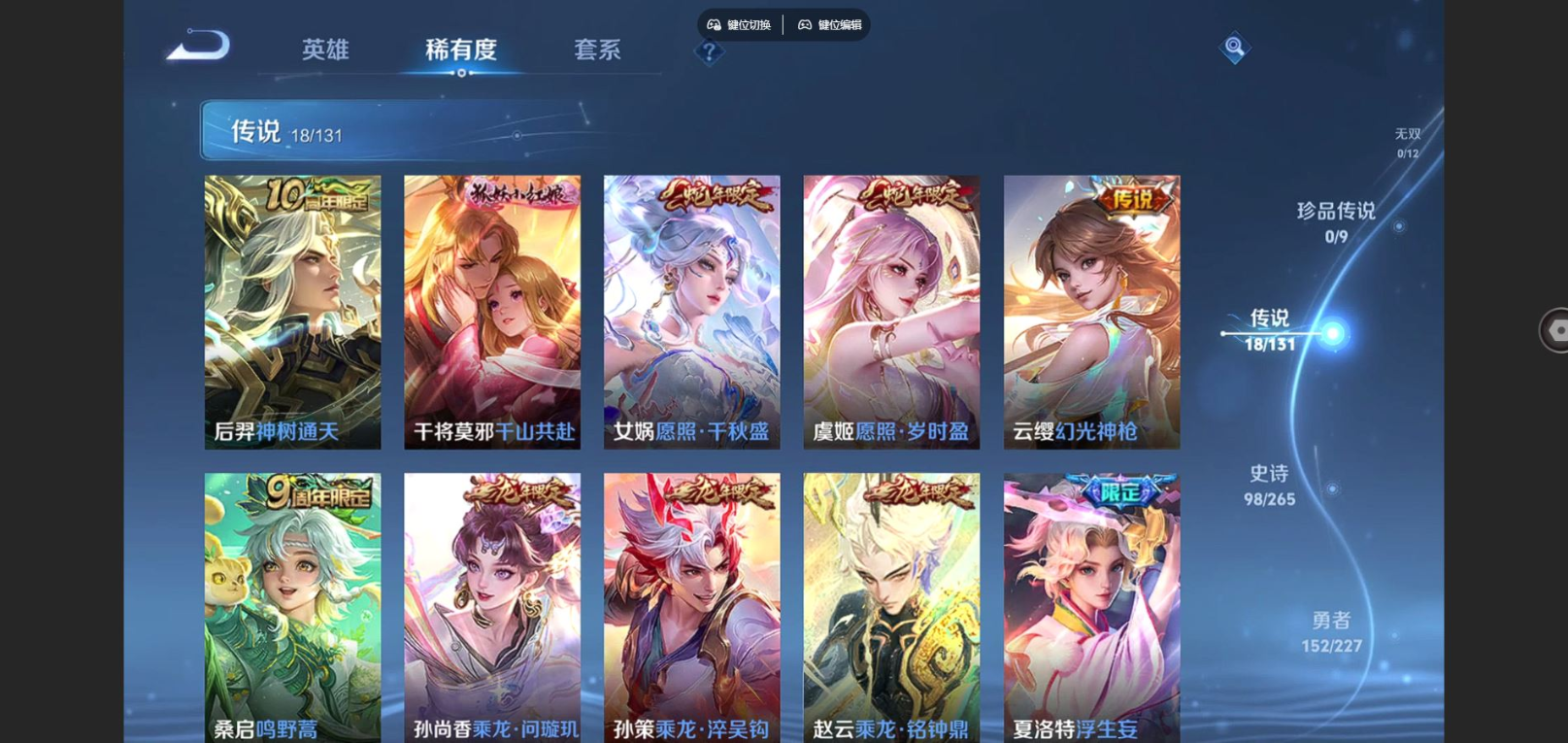 2314548-127英雄-311皮肤-v8-1典藏18传说 对抗路34段 1星传说 未来机甲 【全皮英雄】 海诺全皮 鬼谷子全皮 影全皮 戈娅全皮 【典藏】 九霄神辉 【传说】 乘龙问璇玑 乘龙淬吴钩 乘龙铭钟鼎 神树通天 千山共赴 幻光神呛 愿照岁时盈 愿照千秋盛 鸣野蒿 启明星使 浮生妄 淬星耀世 冠军飞将 云霓雀翎 黄金狮子座 超时空战士男 胖达荣荣 末日机甲女 【热门】万灵启世 涂