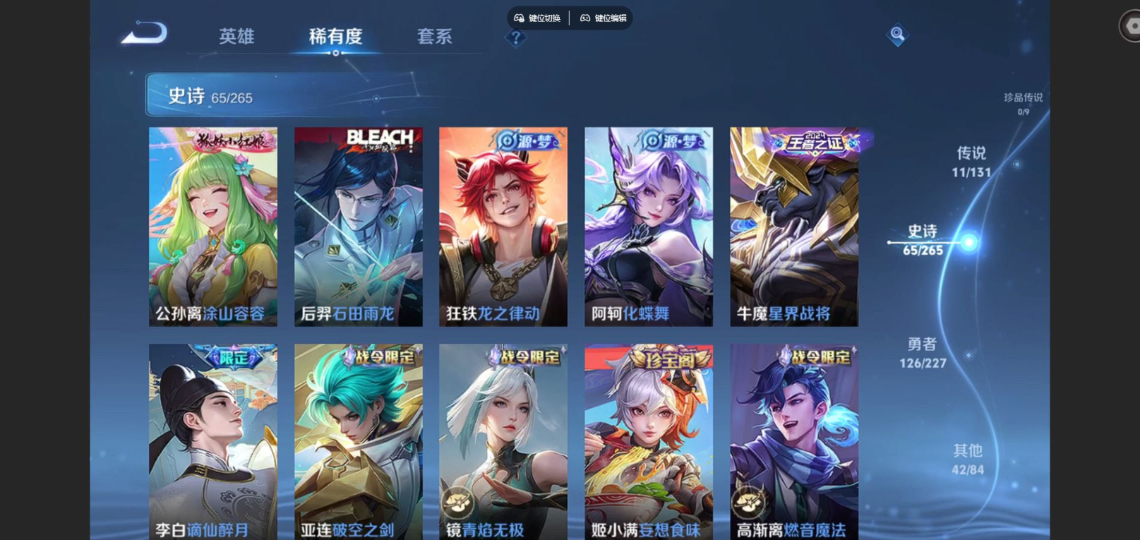 2314740-124英雄-244皮肤v7-11传说1星传说 幽冥之眼【全皮英雄】李信全皮 鬼谷子全皮 影全皮【传说】乘龙铭钟鼎 逐花归海 幻光神呛 鸣野蒿 山海苍雷引 山海炽霜斩 无双飞将 云鹰飞将 一念神魔 黄金射手座 地狱之眼【热门】涂山容容 神威 御风骁将 谪仙醉月 拒霜思 猎兽之王 冰冠公主 原初追逐者 梁祝 龙骑士 燃音魔法 百解令 匿光破解者 电玩爆裂旋风 无限星赏官 原初