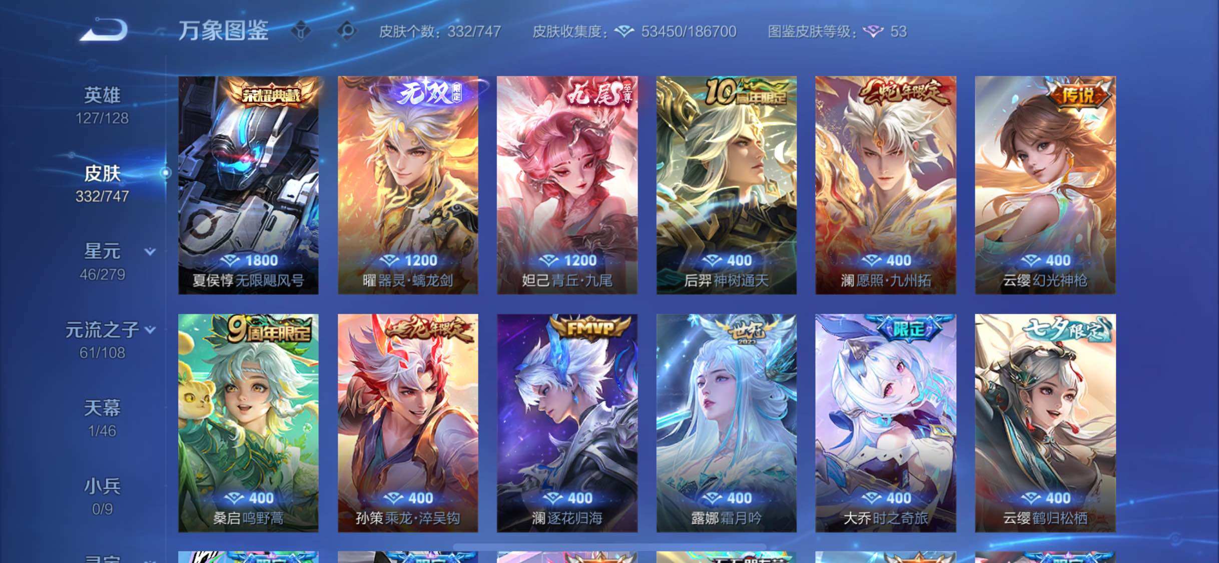 【精品v9·无限飓风号·青丘九尾·器灵螭龙剑·玉鸾吟·愿照九州拓·乘龙淬吴钩·霜月吟·大乔时之奇旅·鹤归松栖·妄想奇谈·鹤羽星尊·浮生妄·炽翼辉光·山海苍雷引·山海炽霜斩·兰陵王默契交锋·零号赤焰·山海碧波行·山海玄木吟·顶级玩家天幕·可二次】w8473-苹果q-127英雄-332皮肤-12王者印记-170铭文-贵族积分17w【贵族9】【1典藏·2无双·3星传说·39传说·1天幕·36按键