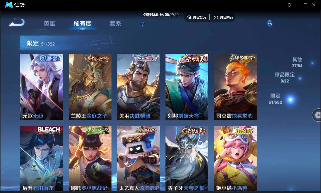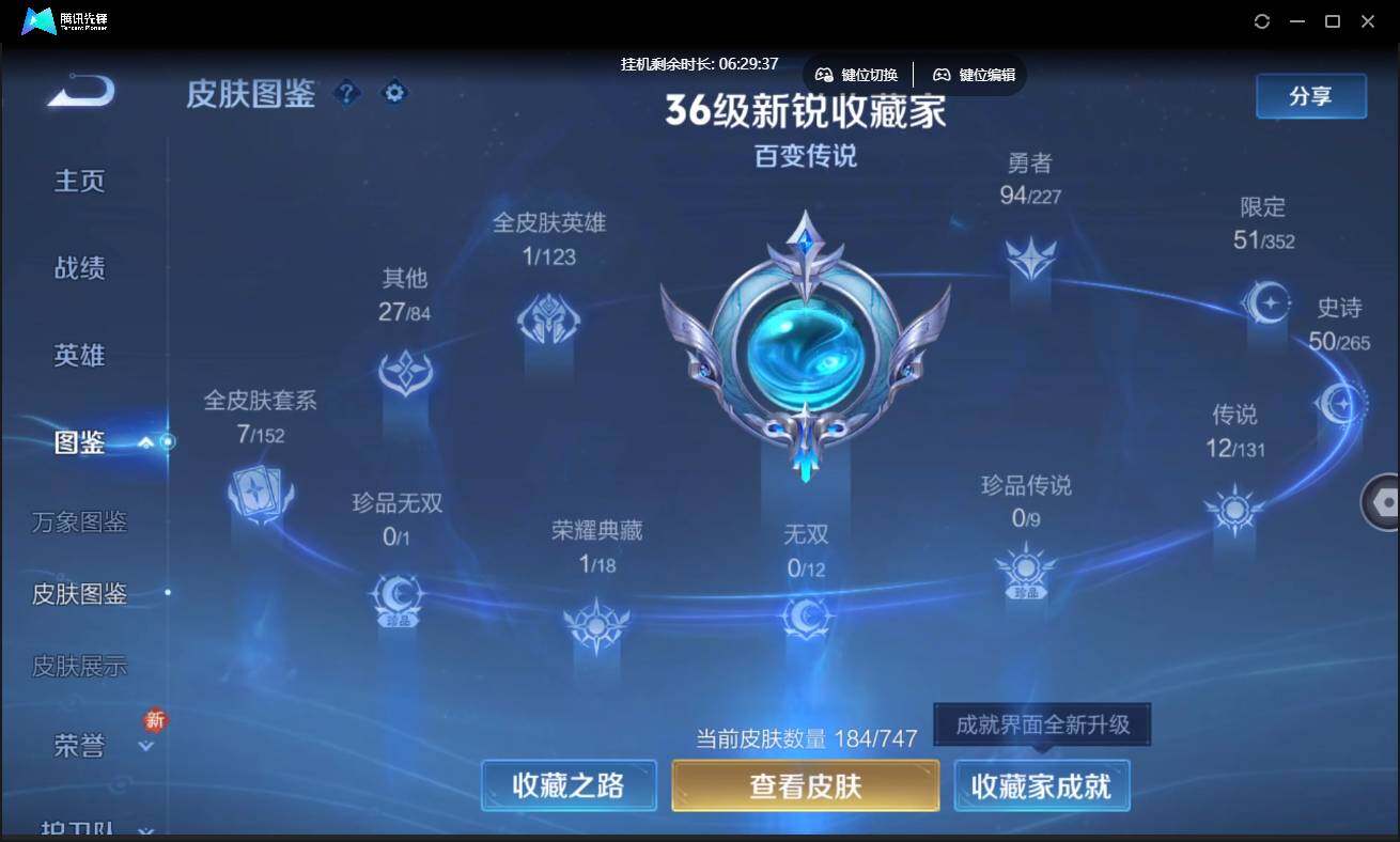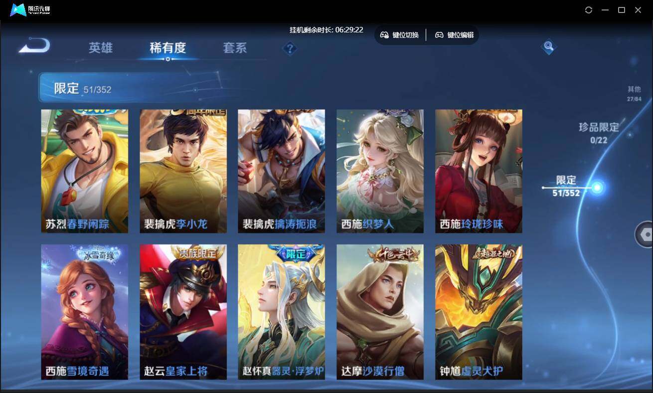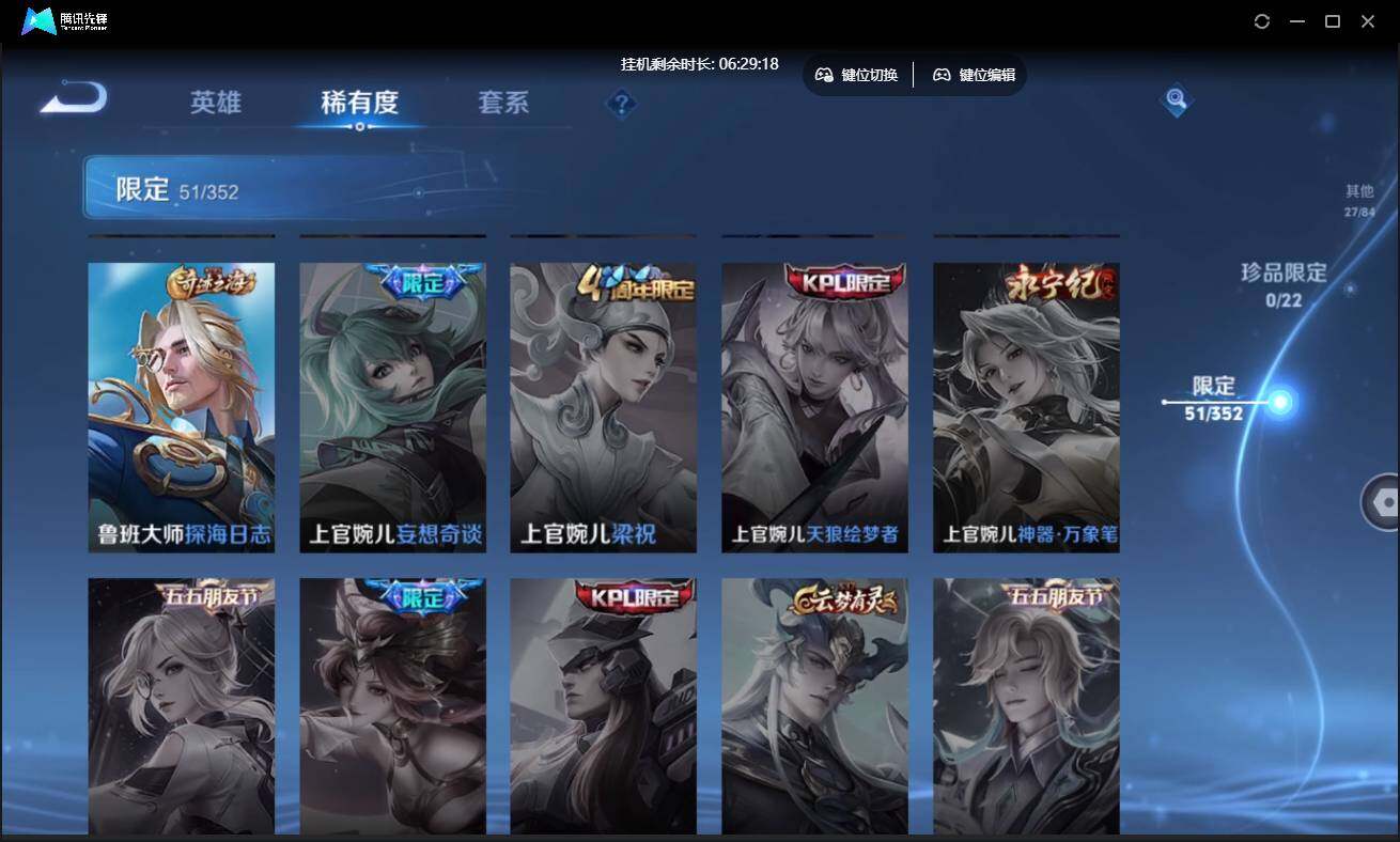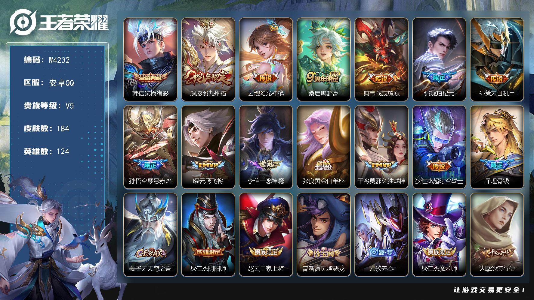 124英雄-184皮肤-贵族5/皮肤184/典藏1/传说12/史诗50/英雄124/影全皮/韩信-弑呛猎影/澜愿照九州拓/云缨幻光神呛/桑启鸣野蒿/典韦-战鼓燎原/凯-琥珀纪元/孙策-末日机甲/孙悟空-零号·赤焰/曜-云鹰飞将/李信-一念神魔/张良-黄金白羊座/干将莫邪-久胜战神/狄仁杰-超时空战士/暃埋骨钱/姜子牙天穹之誓/狄仁杰-阴阳师/赵云-皇家上将/高渐离-玩趣恶龙/元歌-无心/狄仁杰-魔术师/达摩-沙漠行僧