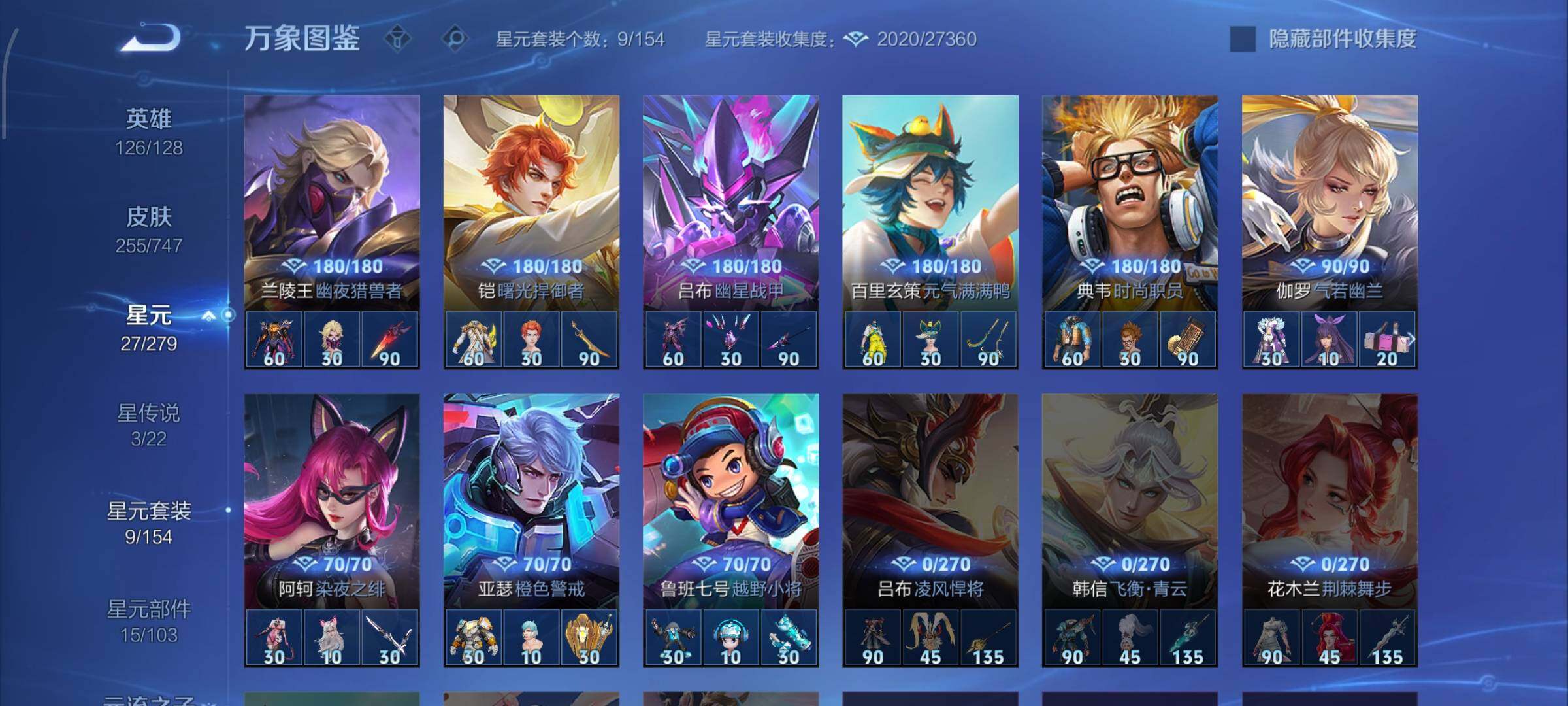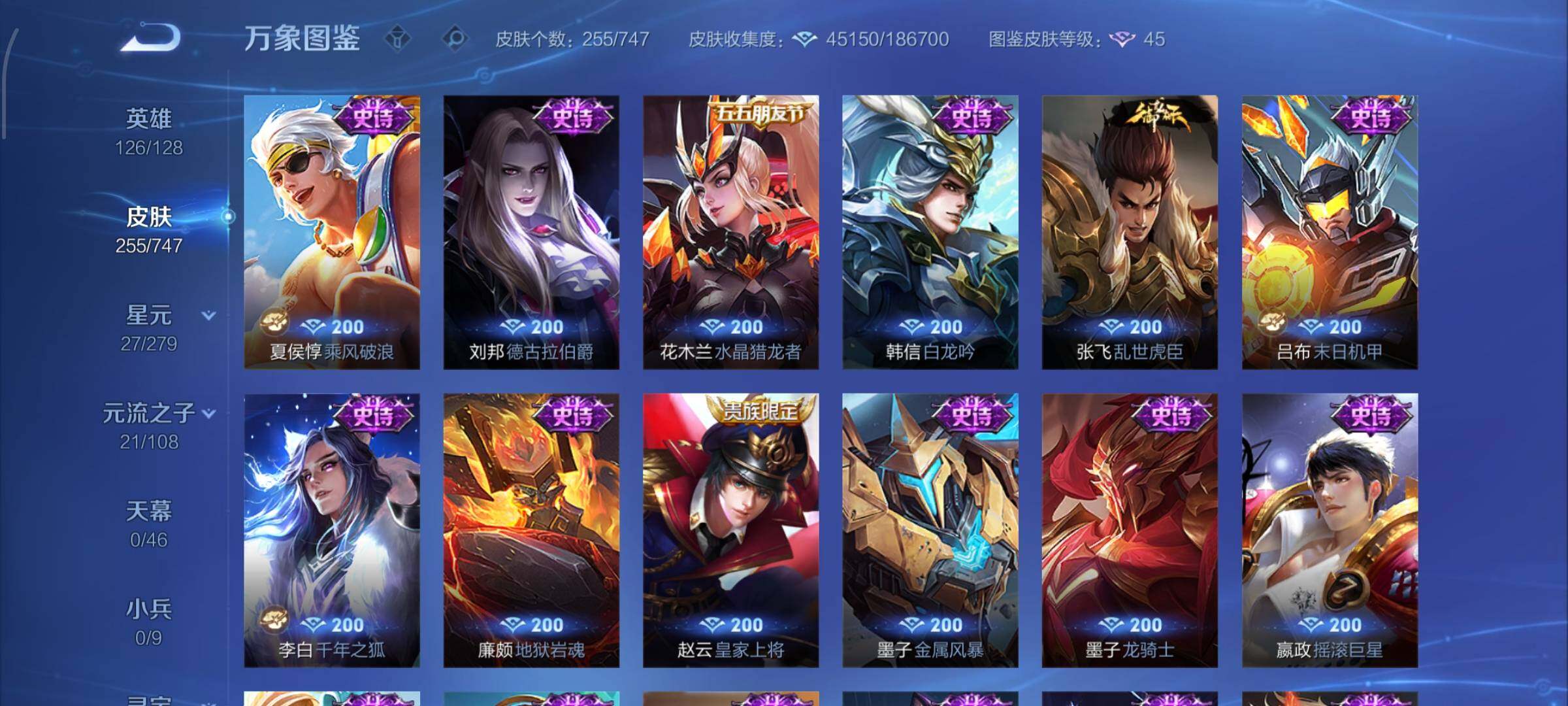 【高性价比推荐·背包一荣耀水晶·全皮李信·九霄神辉·器灵螭龙剑·神罪·刘备时之思念·马超琥珀纪元·祈雪灵祝·夜礼服假面·绯月行·武圣·万灵伏威·愿照山河定·愿照九州拓·落雪白狼·貂蝉曦玄引·乘龙问璇玑·乘龙淬吴钩·山海玄木吟·10年限·可二次】w8516-安卓q-126英雄-255皮肤-15王者印记-180铭文-贵族积分9w【贵族8】【1典藏·2无双·3星传说·39传说·18按键】【因赛季