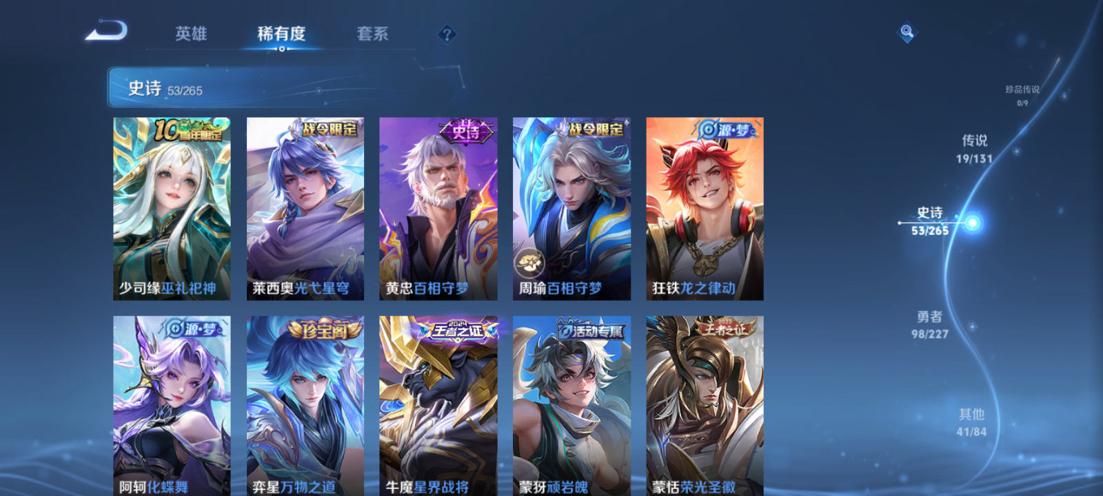 【王者荣耀】【lywz24065】珍品无双0 典藏1 无双0 珍品传说0 传说19 史诗53 英雄126 皮肤212 贵族7级 荣耀典藏:星域神启__传说皮肤:鸣野蒿|无双飞将|绛天战甲|地狱之眼|孙策-末日机甲|刘备-时之恋人|一念神魔|飞鸢探春|李|兰陵王-默契交锋|诗剑行|战鼓燎原|逐花归海|祥瑞亨通|愿照·九州拓|万灵伏威|神树通天|纵目迁山__稀有限定:至尊宝|李小龙|大漠名商|高山流水|古海寻踪|海滩派对|海盐诗旅|胡桃夹子|皇家上将|剑破天穹|江河有灵|金庭之子|黎明之约|魔术师|千军破阵|擒涛扼浪|驱傩正仪|荣光圣徽|沙漠行僧|探海日志|醍醐杖|天穹祈灯|玩趣恶龙|万华元夜|无心|五谷丰年|星界游侠|演武夺筹|阴阳师|原初追逐者|暗隐猎兽者|暗渊魔法|缤纷独角兽|冰冠公主|冰雪圆舞曲|乘风破浪|鬼剑武藏|黄金分割率|金属风暴|吕布-末日机甲|魅力维加斯|梦奇-顽趣|热力回旋|圣诞恋歌|水果甜心|水晶猎龙者|孙策-猫狗日记|天秀·启明|赵云-未来纪元|星夜王子|摇滚巨星|鹰眼统帅|幽灵船长|钟无艳-超时空战士|逐浪之夏|紫霞仙子|噬灭天穹|霜北刀|顽岩魄|天穹之誓|修罗|曙光守护者|心灵战警|千年之狐|特工魅影|星界战将|谧流熔炉|万物之道|化蝶舞|原初探秘者|云中旅人|暖冬·兔眠|落雪兰心|仙境爱丽丝|龙之律动|虚灵犬护|逆浪荇歌|孙策-百相守梦|周瑜-百相守梦|黄忠-百相守梦|光弋星穹|往忆晖光|荣光之誓|巫礼祀神|鹤鸣心笺__优质皮肤:埃及法老|孤猎|熊喵少女|午夜歌剧院|露花倒影|激情绿茵|天启骑士|碧珀绯影|秩序猎龙将|冰刃幻境|维京掠夺者|踏雪寻梅|启蛰|画中游|威尼斯狂欢|芝加哥教父|绝影神呛|幸存者|赤焰之缨|隐刃|前尘|特种部队|精灵王|剑舞者|范海辛|星航指挥官|龙域领主|占星师|花间舞|魇语军师|花见巫女|棒球奇才|灼热之刃|霓裳曲|阿摩司公爵|修竹墨客|万圣前夜|长夏之忆|暗都幽影|功夫炙烤|聚星闪耀|潮玩探月行|瓷语鉴心|秘密基地|次元突破|鲨炮海盗猫|野性能量|丁香结|奇妙博物学|虹云星官|守护之力|幻乐之宴|功夫老勺|命运角斗场|海滩丽影|兔女郎|死亡骑士|黄金武士|天使之翼|玩偶对对碰|忍·炎影|街头霸王|教廷特使|西部游侠|太极少年|乐园追猎者|进击墨子号|拳王|救世之瞳|白色死神|爱与正义|大发明家|哥特玫瑰|星梦巡礼|缤纷绘卷|逐霄战戟|纽约教父|龙腾万里|乱世虎臣|孙悟空-西部大镖客|牛魔-西部大镖客|鲁班大师-归虚梦演|热血海滩|龙舞盛年|汉昭烈帝|乓乓大师|五福同心|盾山-圆桌骑士|万事如意|曜-归虚梦演|唤灵魔甲|沉稳之力|程咬金-群星魔术团|花好人间|熔金海岸|万象初新|蔚蓝守将|劲辣红锅|妄想特派|玫蓝誓约|命运加冕|无双福将|踏浪烽翎|云械蓝图|克喵|哪吒-罗小黑战记|张良-罗小黑战记|径山谋武__贵族等级:贵族7级__王者段位:荣耀王者精美练手小号 典藏星域神启 李 ,诗剑行,时之恋人,绛天战甲,末日机甲,纵目迁山,战鼓燎原,霜北刀,飞鸢探春,神树通天,万灵伏威,一念神魔,逐花归海,无双飞将,祥瑞亨通,愿照·九州拓,地狱之眼,默契交锋
