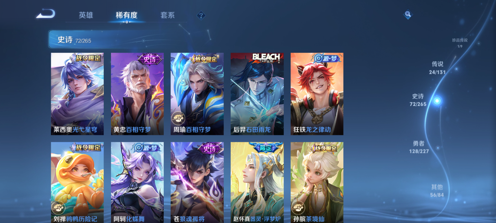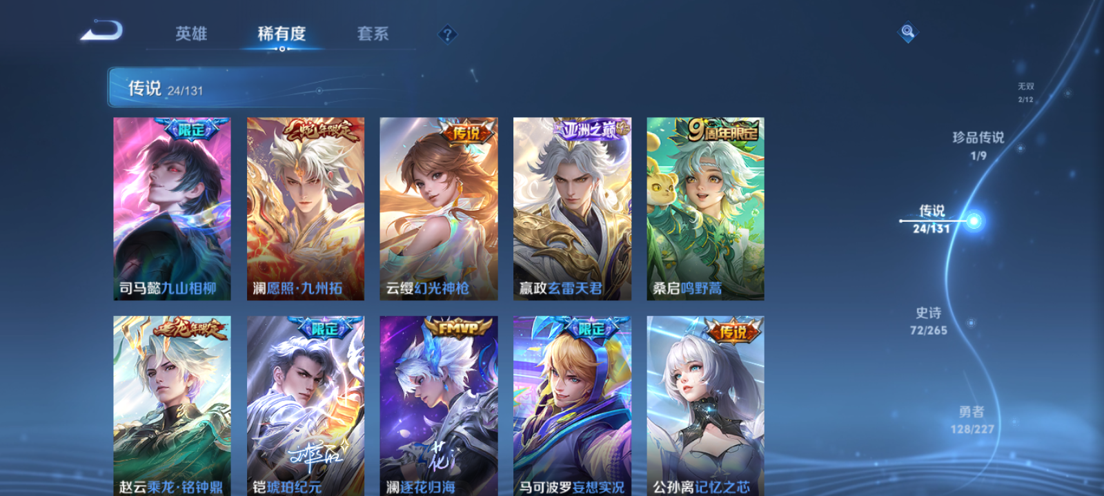 【王者荣耀】【lywz24051】珍品无双0 典藏1 无双2 珍品传说1 传说24 史诗72 英雄127 皮肤284 贵族8级 荣耀典藏:星域神启__无双皮肤:真我赫兹|器灵·螭龙剑__珍品传说:怪盗基德__传说皮肤:鸣野蒿|无双飞将|炽阳神光|启明星使|地狱之眼|地狱火|黄金狮子座|狄仁杰-超时空战士|黄金射手座|淬星耀世|绯月行|记忆之芯|孙尚香-末日机甲|铠-琥珀纪元|零号·赤焰|祈雪灵祝|妄想实况|逐花归海|乘龙·铭钟鼎|寅虎·赤拳|玄雷天君|幻光神呛|愿照·九州拓|九山相柳__稀有限定:至尊宝|神威|孙行者|傲雪梅呛|李小龙|梁祝|山海·玄木吟|拒霜思|暗影游猎|百解令|冰锋战神|大漠名商|繁星吟游|古海寻踪|海滩派对|海盐诗旅|幻夜卜梦|皇家上将|混沌棋|剑破天穹|江河有灵|金庭之子|迷踪丽影|魔术师|匿光侦查者|女武神|擒涛扼浪|穷奇|沙漠行僧|朔风刀|死亡摇滚|探海日志|饕餮|醍醐杖|天穹祈灯|妄想食味|五谷丰年|纤云弄巧|疑决卦|阴阳师|游园惊梦|遇见飞天|御旌|御銮|御狮|原初追逐者|云间偶戏|暗夜贵公子|暗隐猎兽者|白龙吟|冰冠公主|冰雪圆舞曲|乘风破浪|德古拉伯爵|地狱岩魂|电玩小子|鬼剑武藏|黄金分割率|节奏热浪|乐园奇幻夜|李元芳-蔬乡物语|吕布-末日机甲|魅力维加斯|魅语|女仆咖啡|偶像歌手|赏金猎手|绅士熊喵|圣诞恋歌|诗语江南|水果甜心|水晶猎龙者|孙策-猫狗日记|赵云-未来纪元|星夜王子|鹰眼统帅|幽灵船长|至美·乘鲤谣|逐浪之夏|紫霞仙子|百里守约-百相守梦|老夫子-百相守梦|噬灭天穹|东方月初|修罗|千年之狐|心灵骇客|茶境仙|谧流熔炉|器灵·浮梦炉|狼魂孤将|化蝶舞|御霄|狰|烛龙|原初探秘者|重明|云中旅人|单词大作战|达摩-星际陆战队|访茗客|夺宝奇兵|死神来了|刘禅-鸭鸭历险记|沈梦溪-鸭鸭历险记|龙之律动|布丁狗之约|虚灵犬护|石田雨龙|逆浪荇歌|孙策-百相守梦|周瑜-百相守梦|黄忠-百相守梦|光弋星穹|往忆晖光|荣光之誓|鹤鸣心笺__优质皮肤:尼罗河女神|创世神祝|年年有余|埃及法老|孤猎|午夜歌剧院|露花倒影|激情绿茵|海之征途|碧珀绯影|秩序猎龙将|锦衣卫|冰刃幻境|英喵野望|维京掠夺者|海军大将|绯红之刃|踏雪寻梅|启蛰|战争骑士|伊势巫女|生化警戒|威尼斯狂欢|第七人偶|潮流仙人|芝加哥教父|街头旋风|绝影神呛|地府判官|幸存者|赤焰之缨|隐刃|特种部队|精灵王|剑舞者|范海辛|龙域领主|花间舞|魇语军师|极冰防御线|花见巫女|棒球奇才|灼热之刃|圣殿之光|战争女神|霓裳曲|加勒比小姐|阿摩司公爵|异域舞娘|修竹墨客|异域游侠|暗都幽影|功夫炙烤|幻夜行动|潮玩探月行|虎啸剑宗|瓷语鉴心|秘密基地|次元突破|鲨炮海盗猫|野性能量|丁香结|虹云星官|坚韧之力|幻乐之宴|功夫老勺|幻想奇妙夜|海滩丽影|阿尔法小队|兔女郎|死亡骑士|黄金武士|少女阿狸|忍·炎影|街头霸王|教廷特使|金色潮汐|王牌新星|零食大作战|西部游侠|幻泉雾影|危途狂花|胡桃狂想曲|潮玩牛仔|铁甲之心|重装意志|无尽征程|制霸全明星|拳王|时尚教父|白色死神|白执事|大发明家|哥特玫瑰|魅影绮裳|西施-雪境奇遇|金福满堂|星梦巡礼|灵卦秘语|爆裂喵拳|景韶洛都|浪漫序章|雾都夜雨|逐霄战戟|铁骨偃魂|纽约教父|龙腾万里|霸王丸|乱世虎臣|敏锐之力|孙悟空-西部大镖客|龙舞盛年|乓乓大师|蒙犽-归虚梦演|曜-归虚梦演|太乙真人-圆桌骑士|化身博士|花好人间|熔金海岸|春野之旅|苍林狼骑|蔚蓝守将|劲辣红锅|灵野札记|玫蓝誓约|命运加冕|潮玩士官长|小满鸭|死霸装|无双福将|锦麟游梦|踏浪烽翎|云械蓝图|戏梦巡演|落日弦歌|克喵|哪吒-罗小黑战记__贵族等级:贵族8级__王者段位:无双王者打野皮肤号 诸葛亮典藏 瑶瑶无双 马可珍品 黄金狮子座,九山相柳,炽阳神光,玄雷天君,祈雪灵祝,绯月行,愿照·九州拓,末日机甲,乘龙·铭钟鼎,寅虎·赤拳,妄想实况,琥珀纪元,无双飞将,逐花归海,地狱之眼,零号·赤焰,地狱火