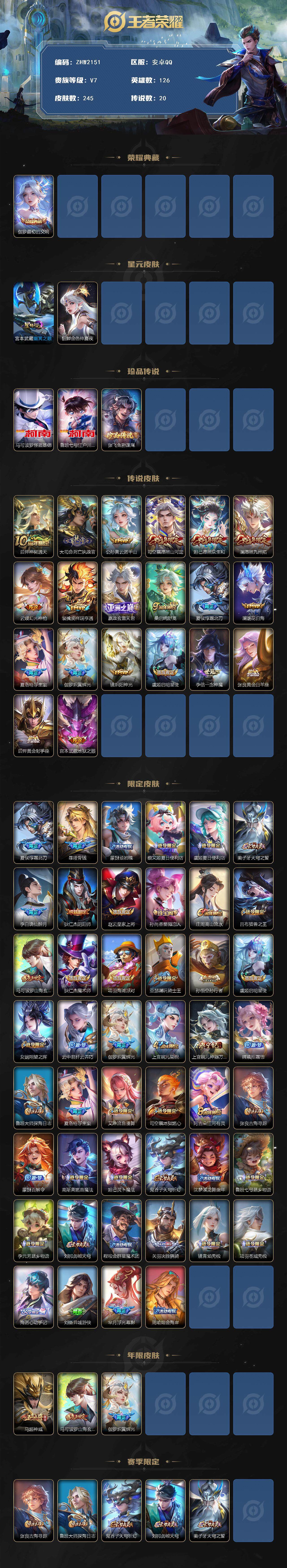 可二次【店主推荐捡漏号!可直接换绑】安卓q-v7-最强王者段位-126英雄-245皮肤-1典藏皮肤-3珍品传说-2星传说-20传说-80史诗 【英雄全皮】:大司命全皮,夏洛特全皮,司空震全皮,影全皮,海诺全皮 【荣耀典藏】:伽罗最初的交响 【珍品传说】:马可波罗怪盗基德,鲁班七号江户川柯南,张飞兔狲蓬尾 【传说皮肤】:后羿神树通天,大司命死亡执政官,公孙离云诺千山,司空震愿照山河定,妲己愿照众生和,澜愿照九州拓,云缨幻光神呛,裴擒虎祥瑞亨通,嬴政玄雷天君,桑启鸣野蒿,夏侯惇霜北刀,澜逐花归海,夏洛特浮生妄,伽罗炽翼辉光,镜炽阳神光,虞姬启明星使,李信一念神魔,张良黄金白羊座,后羿黄金射手座,宫本武藏地狱之眼 【限定皮肤】:夏侯惇霜北刀,暃埋骨钱,蒙犽顽岩魄,蔡文姬夏日便利店,虞姬夏日便利店,姜子牙天穹之誓,李白谪仙醉月,狄仁杰阴阳师,赵云皇家上将,孙尚香蔷薇恋人,庄周高山流水,吕布猎兽之王,马可波罗山海玄木吟,狄仁杰魔术师,项羽海滩派对,亚瑟潮玩骑士王,孙悟空孙行者,虞姬启明星使,女娲朔望之晖,云中君纤云弄巧,伽罗炽翼辉光,上官婉儿梁祝,上官婉儿神器万象笔,嫦娥拒霜思,鲁班大师探海日志,夏洛特浮生妄,艾琳流音漫舞,司空震地狱燃心,阿古朵江河有灵,张良古海寻踪,蒙犽百解令,高渐离燃音魔法,妲己灵卜魔法,鬼谷子天穹祈灯,沈梦溪龙舞盛年,鲁班七号蔬乡物语,李元芳蔬乡物语,刘邦剑破天穹,程咬金群星魔术团,关羽决胜骁骑,镜青焰无极,项羽苍威无极,海诺心动手记,刘备异域游侠,芈月浮光幕影,周瑜熔金海岸 【年限皮肤】:马超神威,马可波罗山海玄木吟,伽罗炽翼辉光 【赛季限定】:张良古海寻踪,鲁班大师探海日志,鬼谷子天穹祈灯,刘邦剑破天穹,姜子牙天穹之誓 【战令限定】:蔡文姬夏日便利店,虞姬夏日便利店,吕布猎兽之王,艾琳流音漫舞,亚瑟潮玩骑士王,女娲朔望之晖,司空震地狱燃心,高渐离燃音魔法,妲己灵卜魔法,鲁班七号蔬乡物语,李元芳蔬乡物语,镜青焰无极,项羽苍威无极 【史诗皮肤】:项羽苍穹之光,露娜紫霞仙子,赵云皇家上将,赵云未来纪元,貂蝉圣诞恋歌,甄姬冰雪圆舞曲,王昭君偶像歌手,狄仁杰魔术师,廉颇地狱岩魂,宫本武藏鬼剑武藏,孙尚香蔷薇恋人,孙尚香水果甜心,嬴政摇滚巨星,妲己魅力维加斯,妲己女仆咖啡,墨子金属风暴,吕布圣诞狂欢,曹操幽灵船长,吕布末日机甲,张飞乱世虎臣,花木兰水晶猎龙者,夏侯惇乘风破浪,兰陵王暗隐猎兽者,亚瑟心灵战警,雅典娜冰冠公主,安琪拉心灵骇客,百里守约特工魅影,蔡文姬舞动绿茵,刘禅天才门将,程咬金功夫厨神,白起星夜王子,孙策猫狗日记,伽罗箭羽风息,狄仁杰鹰眼统帅,上官婉儿梁祝,大乔白蛇,瑶遇见神鹿,马超神威,云中君纤云弄巧,钟馗乐园奇幻夜,孙悟空孙行者,庄周高山流水,司马懿暗渊魔法,嫦娥拒霜思,夏洛特永昼,上官婉儿神器万象笔,马可波罗山海玄木吟,司空震地狱燃心,阿古朵江河有灵,蒙犽百解令,妲己灵卜魔法,高渐离燃音魔法,鲁班七号蔬乡物语,镜青焰无极,关羽决胜骁骑,海诺心动手记,黄忠怒海争锋,芈月浮光幕影,蔡文姬夏日便利店,蒙犽顽岩魄,暃埋骨钱,大司命东方月初,姬小满战舞者,亚连破空之剑,马可波罗星界特工,李白谪仙醉月,百里守约百相守梦,牛魔星界战将,孙膑茶境仙,赵怀真器灵浮梦炉,阿轲化蝶舞,刘禅鸭鸭历险记,狂铁龙之律动,百里守约雪豹霜爪,周瑜百相守梦,黄忠百相守梦,西施织梦人,公孙离涂山容容,莱西奥光弋星穹,兰陵王傩神司,少司缘巫礼祀神 【其他皮肤】:项羽海滩派对,韩信街头霸王,露娜哥特玫瑰,赵云忍炎影,芈月红桃皇后,程咬金星际陆战队,白起白色死神,牛魔西部大镖客,扁鹊化身博士,宫本武藏未来纪元,妲己少女阿狸,亚瑟死亡骑士,达摩拳王,张飞五福同心,甄姬花好人间,宫本武藏万象初新,后羿阿尔法小队,狄仁杰阴阳师,刘备纽约教父,刘备汉昭烈帝,关羽龙腾万里,钟无艳海滩丽影,王昭君幻想奇妙夜,孙尚香沉稳之力,李白敏锐之力,苏烈坚韧之力,大乔守护之力,吕布猎兽之王,女娲朔望之晖,小乔丁香结,姜子牙炽热元素使,狂铁特工战影,亚瑟潮玩骑士王,刘禅秘密基地,张良缤纷绘卷,鲁班大师乓乓大师,程咬金无双福将,蒙恬蔚蓝守将,猪八戒潮玩探月行,莱西奥西部游侠,鲁班大师探海日志,姬小满零食大作战,李元芳妄想特派,艾琳流音漫舞,张良古海寻踪,钟无艳聚星闪耀,海月王牌新星,亚连破局者,兰陵王幻夜行动,曹操决胜大满贯,后羿完美运算,鬼谷子天穹祈灯,妲己灵卜魔法,海诺时空谍影,廉颇功夫炙烤,亚瑟鸿运当头,沈梦溪龙舞盛年,钟无艳春野之旅,李元芳蔬乡物语,刘邦剑破天穹,盘古经纬探寻者,程咬金群星魔术团,项羽苍威无极,大司命暗都幽影,刘备异域游侠,姜子牙天穹之誓,周瑜熔金海岸,虞姬夏日便利店,孙悟空神迹守卫,盘古敬我三分,东皇太一噬灭天穹,亚瑟动物派对,老夫子百相守梦,米莱狄怪诞之夜,干将莫邪雾都夜雨,吕布逐霄战戟,苍苍林狼骑,太乙真人谧流熔炉,典韦铁骨偃魂,马超访茗客,影魅影绮裳,西施雪境奇遇,姜子牙星梦巡礼,东皇太一金福满堂,达摩爆裂喵拳,少司缘灵卦秘语,明世隐景韶洛都,戈娅玫蓝誓约,刘备浪漫序章,钟馗虚灵犬护,沈梦溪鸭鸭历险记,苏烈春野闲踪,小乔秘证寻踪,张良灵野札记,阿古朵布丁狗之约,白起死霸装,甄姬逆浪荇歌,孙策百相守梦,庄周锦麟游梦,莱西奥踏浪烽翎,鬼谷子克喵,哪吒罗小