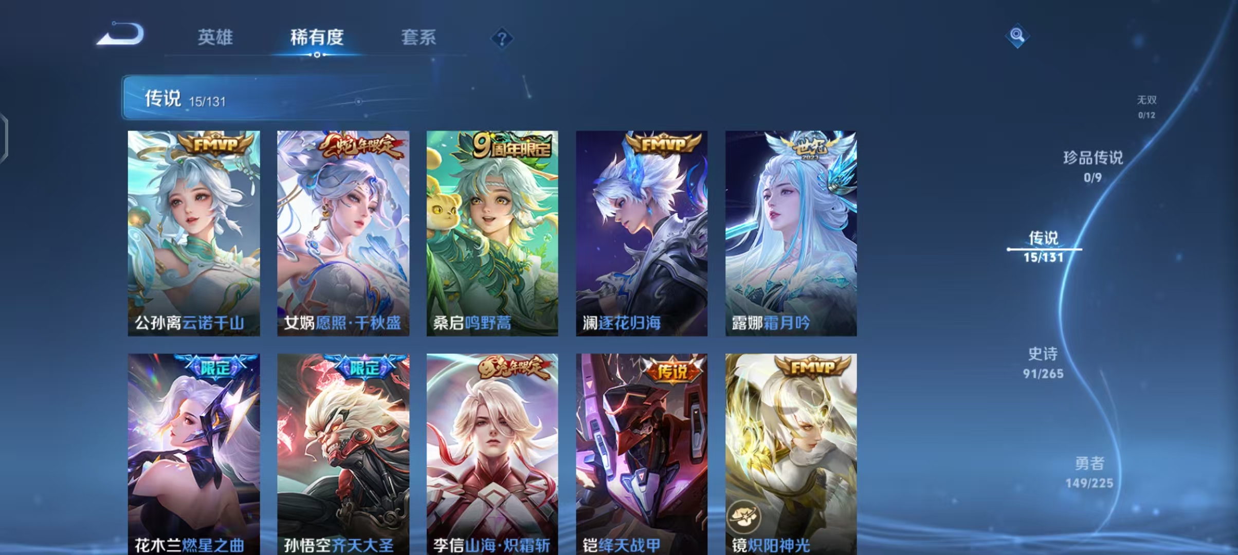126英雄-311皮肤-实名: 不可修改 贵族等级: v8 英雄数: 126 皮肤数: 308 荣耀水晶: 银白咏叹调 传说皮: 绛天战甲猫影幻舞久胜战神炽阳神光海洋之心超时空战士-狄仁杰山海·炽霜斩燃星之曲霜月吟澜逐花归海云诺千山 限定皮: 李小龙游园惊梦御风骁将引擎之心岱宗乒乒小将至尊宝大圣娶亲默契交锋-花木兰玉兔公主五谷丰年神器·万象笔齐天大圣至美·