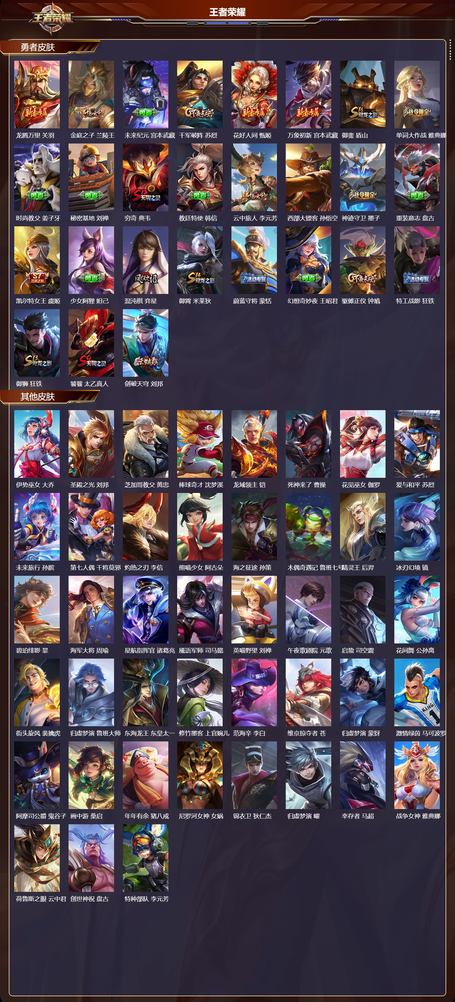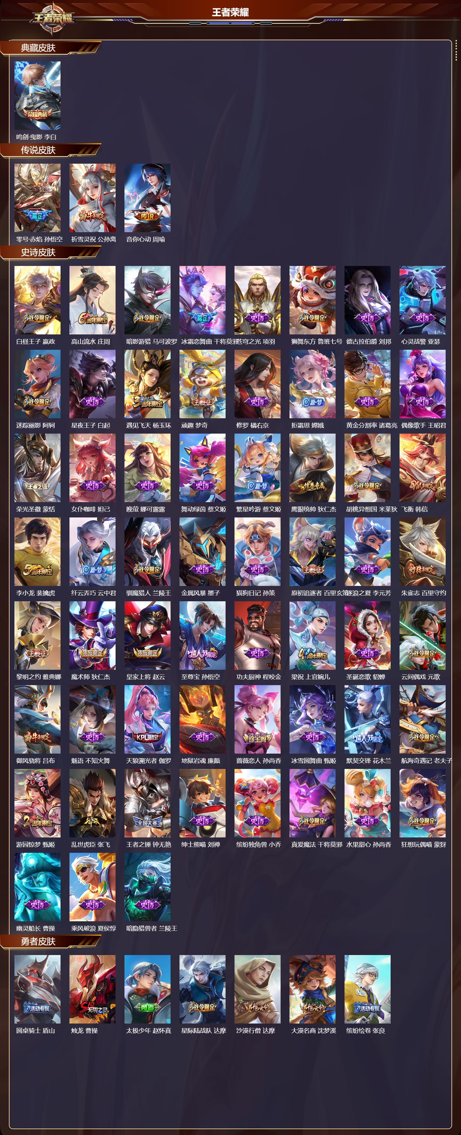 安卓qq/秩序白银/221皮肤/120英雄/1典藏/0珍品无双/0无双/0珍品传说/3传说/59史诗/7稀有英雄【1 典藏皮肤】鸣剑·曳影 李白【3 传说皮肤】零号·赤焰 孙悟空祈雪灵祝 公孙离音你心动 周瑜【59 史诗皮肤】白昼王子 嬴政高山流水 庄周暗影游猎 马可波罗冰霜恋舞曲 干将莫邪苍穹之光 项羽狮舞东方 鲁班七号德古拉伯爵 刘邦心灵战警 亚瑟迷踪丽影 阿轲星夜王