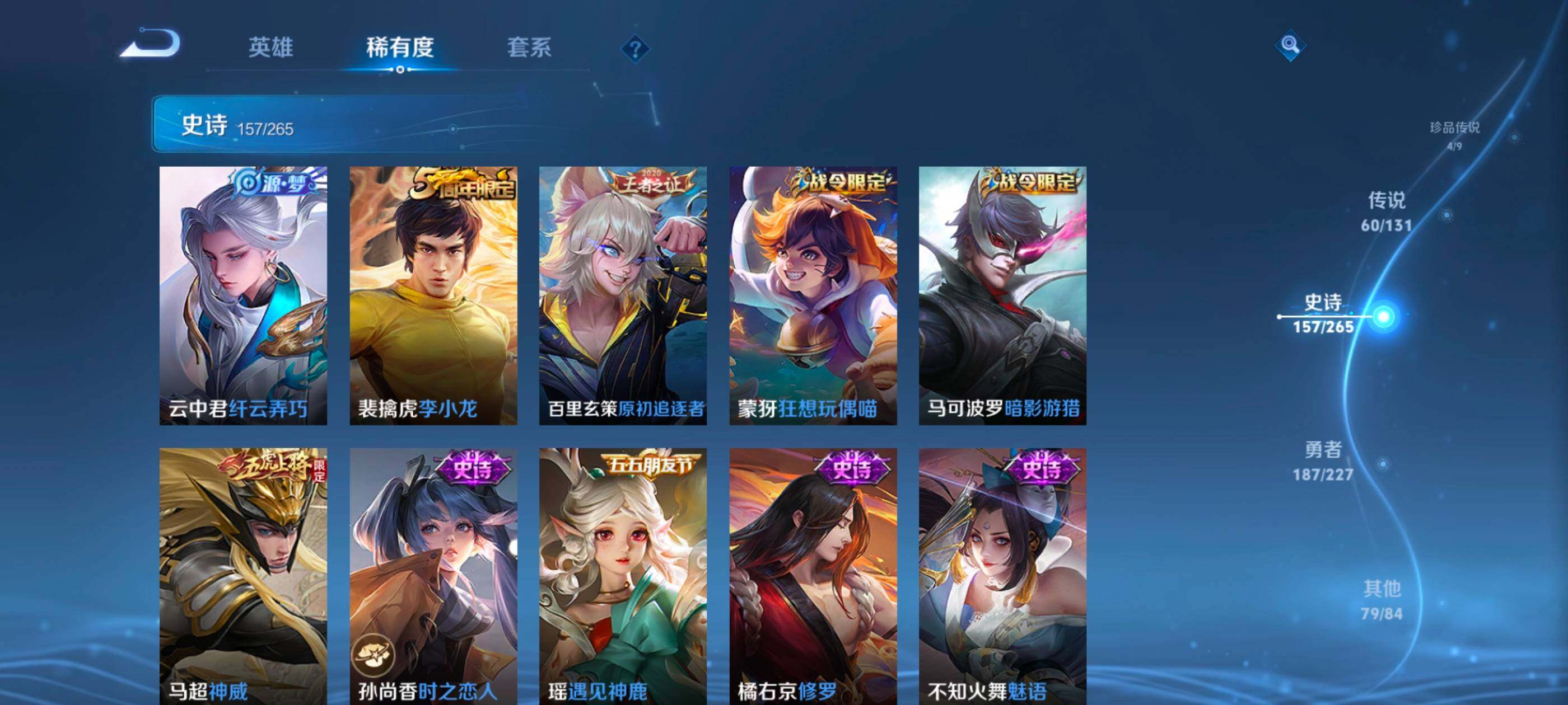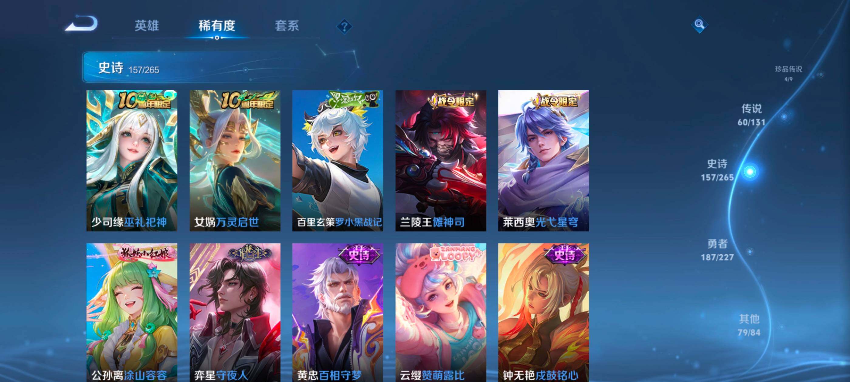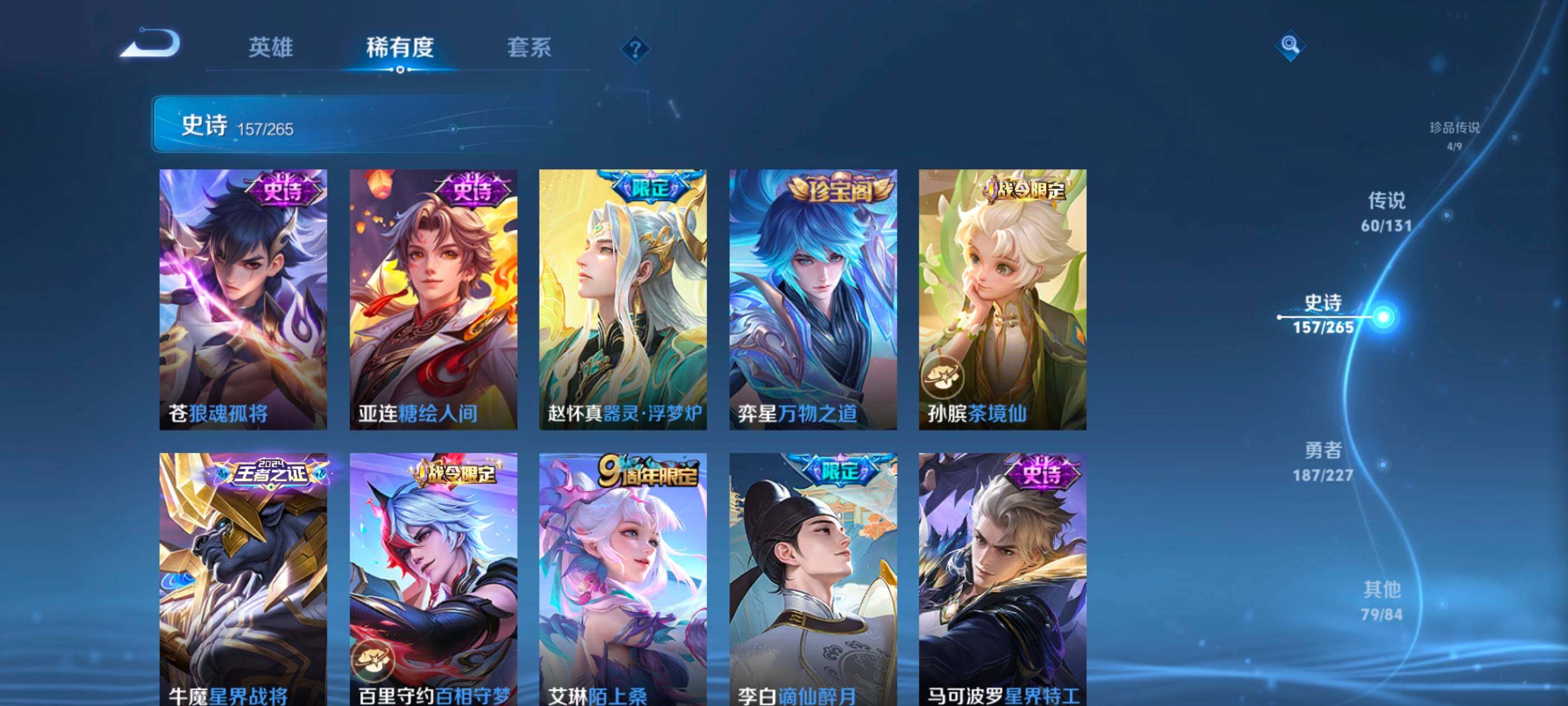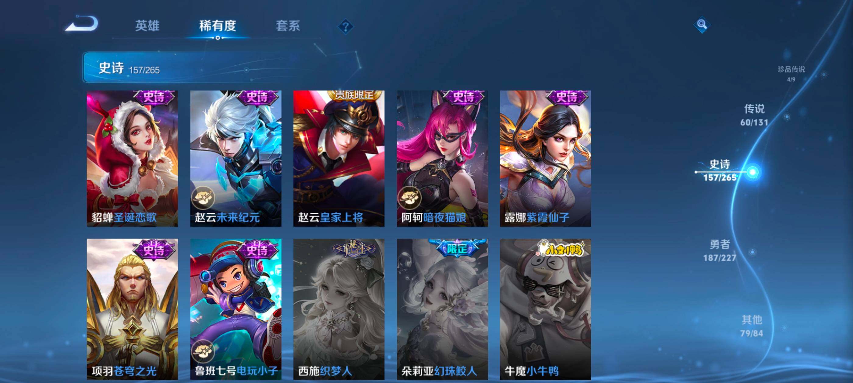【5无双4珍品5星传说2典藏】v10-最强王者段位-127英雄-494皮肤-2典藏皮肤-5无双-4珍品传说-60传说-157史诗 【英雄全皮】:刘禅全皮,孙权全皮,艾琳全皮,刘备全皮,苍全皮,鬼谷子全皮,铠全皮,苏烈全皮,沈梦溪全皮,马超全皮,蒙恬全皮,镜全皮,夏洛特全皮,司空震全皮,云缨全皮,金蝉全皮,赵怀真全皮,莱西奥全皮,戈娅全皮,空空儿全皮,影全皮 【荣耀典藏】:铠银白咏叹调,伽罗最初的交响 【无双皮肤】:妲己青丘九尾,瑶真我赫兹,小乔时之魔女,曜器灵螭龙剑,铠神罪 【珍品传说】:马可波罗怪盗基德,鲁班七号江户川柯南,孙策时之奇旅,嫦娥器灵落星盏 【传说皮肤】:后羿神树通天,公孙离云诺千山,西施续相思,司空震愿照山河定,女娲愿照千秋盛,妲己愿照众生和,澜愿照九州拓,蔡文姬愿照福禄聚,虞姬愿照岁时盈,云缨幻光神呛,嬴政玄雷天君,桑启鸣野蒿,铠冥王哈迪斯,孙尚香乘龙问璇玑,马超琥珀纪元,铠琥珀纪元,艾琳觅芳踪,云缨鹤归松栖,东皇太一灼幽烈阳,诸葛亮鹤羽星尊,亚瑟追逃游戏,安琪拉追逃游戏,张飞百相守梦,公孙离记忆之芯,夏洛特浮生妄,虞姬无限倾心,项羽无限倾心,孙悟空齐天大圣,吕布怒海麟威,李白诗剑行,不知火舞绯月行,孙尚香音你闪耀,马可波罗深海之息,马超无双飞将,大乔挚爱花嫁,孙策挚爱之约,露娜启示之音,孙策末日机甲,赵云淬星耀世,王昭君乞巧织情,西施游龙清影,周瑜音你心动,小乔音你心动,李元芳飞鸢探春,铠绛天战甲,镜炽阳神光,虞姬启明星使,孙悟空零号赤焰,曜云鹰飞将,李信一念神魔,刘备时之恋人,伽罗太华,张良黄金白羊座,达摩黄金狮子座,后羿黄金射手座,貂蝉仲夏夜之梦,孙尚香末日机甲,宫本武藏地狱之眼,孙悟空地狱火,狄仁杰超时空战士 【限定皮肤】:铠冥王哈迪斯,暃埋骨钱,蒙犽顽岩魄,蔡文姬夏日便利店,大乔绒语心约,虞姬夏日便利店,姜子牙天穹之誓,杨戬破阵退雄兵,李白谪仙醉月,狄仁杰阴阳师,赵云皇家上将,赵云引擎之心,赵云百木心呛,墨子神迹守卫,孙尚香蔷薇恋人,鲁班七号狮舞东方,庄周云端筑梦师,钟无艳超时空战士,扁鹊奇幻香踪,白起夜都怪侠,芈月幻夜卜梦,吕布猎兽之王,吕布御风骁将,周瑜赤莲之焰,元歌云间偶戏,元歌无心,夏侯惇匿光决锋者,甄姬落雪兰心,马可波罗暗影游猎,马可波罗深海之息,马可波罗山海玄木吟,狄仁杰魔术师,狄仁杰万华元夜,达摩沙漠行僧,项羽海滩派对,项羽无限倾心,老夫子醍醐杖,老夫子航海奇遇记,关羽百相守梦,安琪拉追逃游戏,程咬金演武夺筹,露娜启示之音,韩信傲雪梅呛,王昭君午后时光,兰陵王金庭之子,不知火舞绯月行,亚瑟追逃游戏,孙悟空美猴王,孙悟空至尊宝,孙悟空零号赤焰,孙悟空齐天大圣,后羿圣弓游侠,刘备百相守梦,张飞百相守梦,李元芳云中旅人,虞姬启明星使,虞姬无限倾心,钟馗驱傩正仪,杨戬潮玩骑兵,女娲朔望之晖,干将莫邪冰霜恋舞曲,干将莫邪真爱魔法,雅典娜黎明之约,鬼谷子原初探秘者,鬼谷子五谷丰年,诸葛亮鹤羽星尊,大乔挚爱花嫁,黄忠火炮绅士,铠青龙志,苏烈玄武志,苏烈千军破阵,百里玄策原初追逐者,弈星混沌棋,梦奇顽趣,沈梦溪星空之诺,沈梦溪大漠名商,沈梦溪匿光破解者,明世隐疑决卦,明世隐吟游魔法,裴擒虎天狼狩猎者,裴擒虎李小龙,裴擒虎擒涛扼浪,狂铁电玩高手,米莱狄胡桃异想国,云中君纤云弄巧,伽罗太华,孙策挚爱之约,猪八戒猪悟能,上官婉儿梁祝,上官婉儿神器万象笔,嫦娥拒霜思,嫦娥暖冬兔眠,西施玲珑珍味,蒙犽狂想玩偶喵,鲁班大师探海日志,镜匿光追影者,桑启海盐诗旅,夏洛特浮生妄,金蝉唐三藏,暃星界游侠,戈娅驭风魔法,艾琳女武神,艾琳流音漫舞,赵怀真鹤归松栖,云缨鹤归松栖,司空震地狱燃心,阿古朵江河有灵,张良古海寻踪,蒙犽百解令,艾琳觅芳踪,蒙恬荣光圣徽,高渐离燃音魔法,妲己灵卜魔法,鬼谷子天穹祈灯,伽罗琥珀纪元,铠琥珀纪元,马超琥珀纪元,小乔时之魔女,孙尚香乘龙问璇玑,沈梦溪龙舞盛年,鲁班七号蔬乡物语,李元芳蔬乡物语,刘邦剑破天穹,程咬金群星魔术团,镜青焰无极,项羽苍威无极,刘备异域游侠,芈月浮光幕影,周瑜熔金海岸 【年限皮肤】:铠青龙志,苏烈玄武志,孙悟空美猴王,吕布御风骁将,伽罗太华,马超神威,马可波罗山海玄木吟,孙尚香乘龙问璇玑 【赛季限定】:狄仁杰万华元夜,达摩沙漠行僧,老夫子醍醐杖,程咬金演武夺筹,兰陵王金庭之子,张良古海寻踪,李元芳云中旅人,钟馗驱傩正仪,雅典娜黎明之约,鬼谷子原初探秘者,苏烈千军破阵,百里玄策原初追逐者,弈星混沌棋,梦奇顽趣,沈梦溪大漠名商,明世隐疑决卦,裴擒虎擒涛扼浪,鲁班大师探海日志,桑启海盐诗旅,鬼谷子天穹祈灯,蒙恬荣光圣徽,刘邦剑破天穹,姜子牙天穹之誓 【战令限定】:墨子神迹守卫,蔡文姬夏日便利店,虞姬夏日便利店,鲁班七号狮舞东方,钟无艳超时空战士,扁鹊奇幻香踪,白起夜都怪侠,芈月幻夜卜梦,吕布猎兽之王,周瑜赤莲之焰,元歌云间偶戏,甄姬落雪兰心,马可波罗暗影游猎,老夫子航海奇遇记,王昭君午后时光,艾琳流音漫舞,后羿圣弓游侠,杨戬潮玩骑兵,女娲朔望之晖,干将莫邪真爱魔法,黄忠火炮绅士,沈梦溪星空之诺,明世隐吟游魔法,狂铁电玩高手,米莱狄胡桃异想国,嫦娥暖冬兔眠,西施玲珑珍味,蒙犽狂想玩偶喵,司空震地狱燃心,暃星界游侠,戈娅驭风魔法,高渐离燃音魔法,妲己灵卜魔法,鲁班七号蔬乡物语,李元芳蔬乡物语,镜青焰无极,项羽