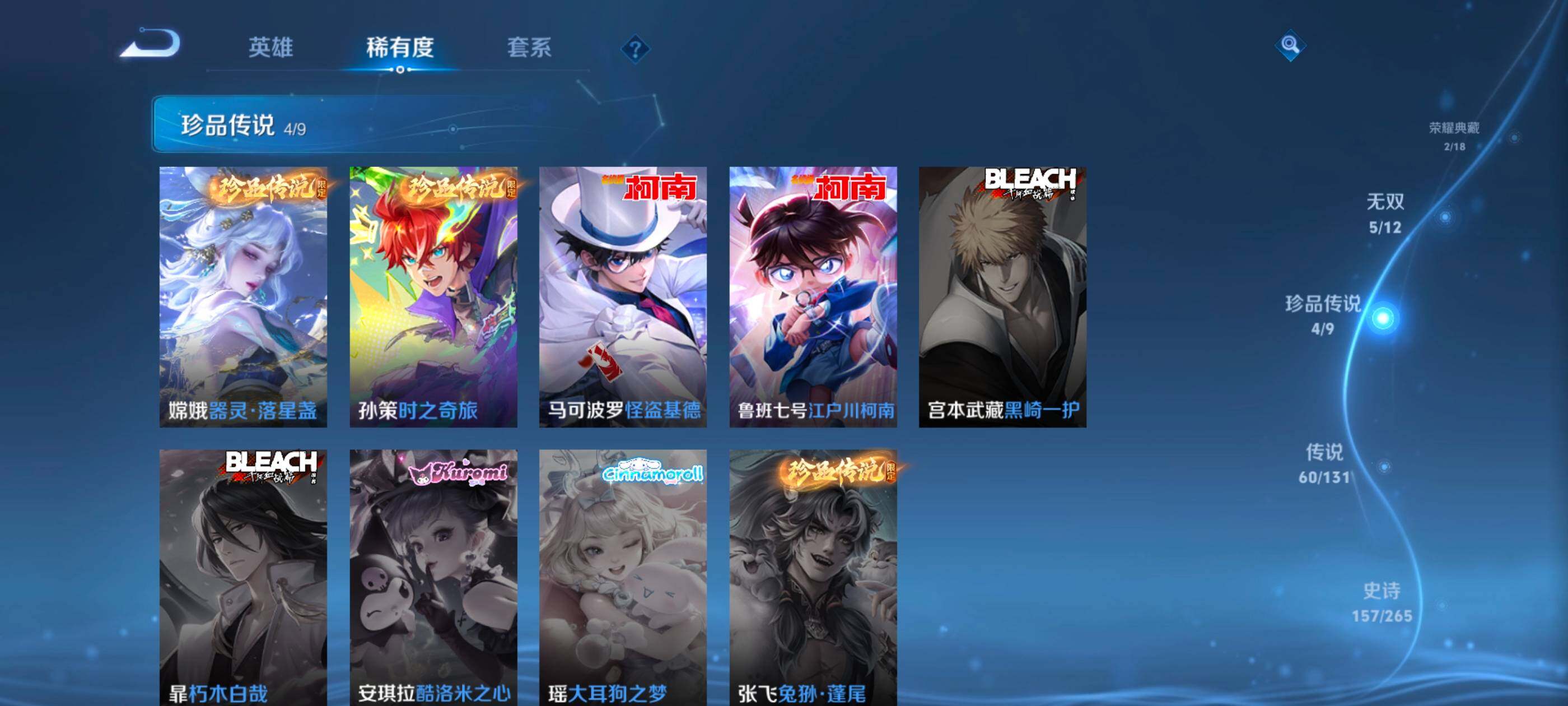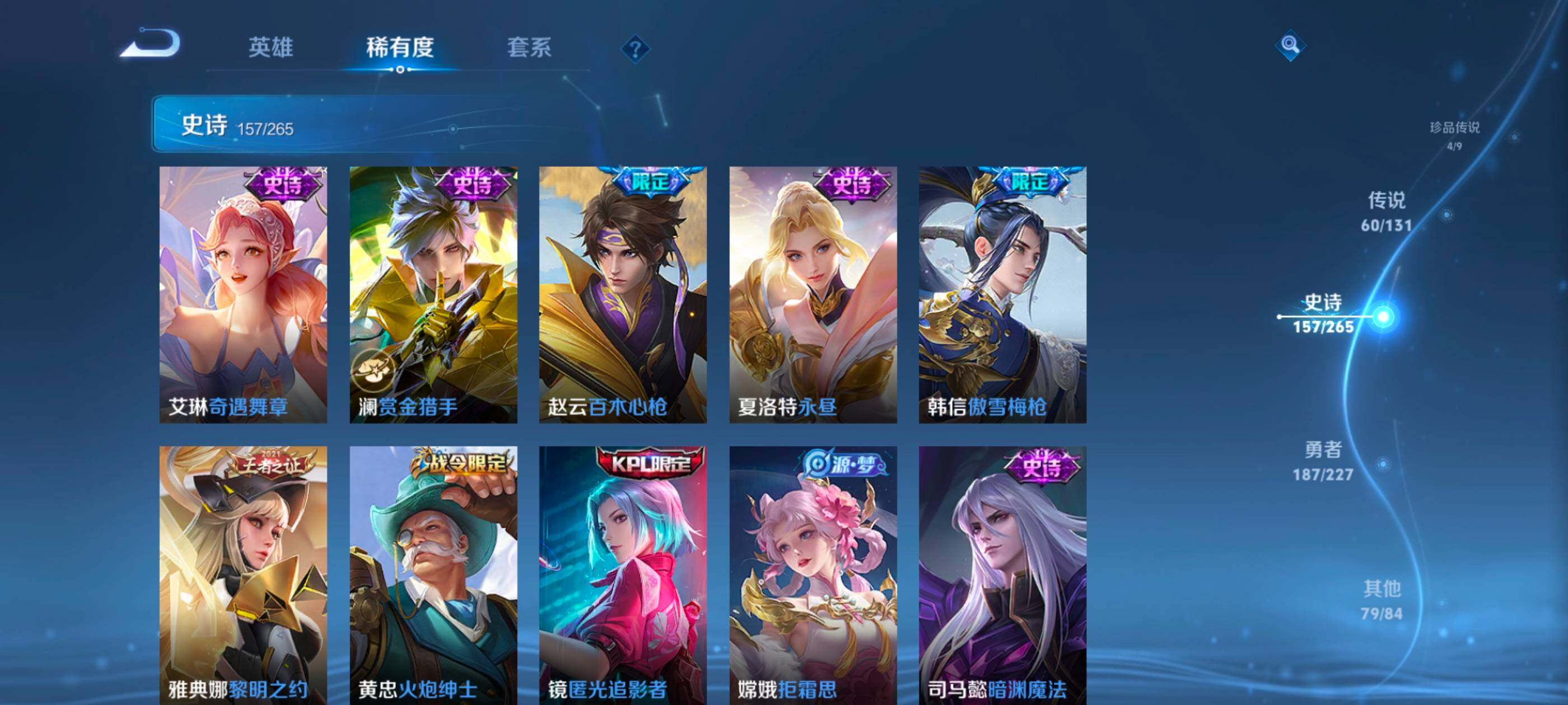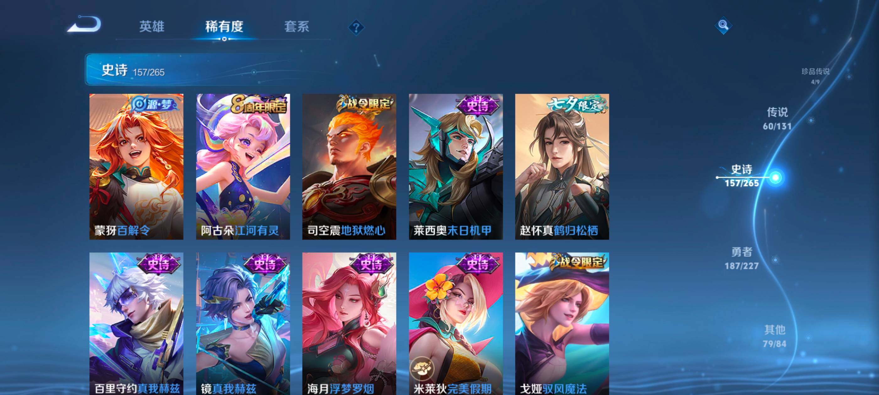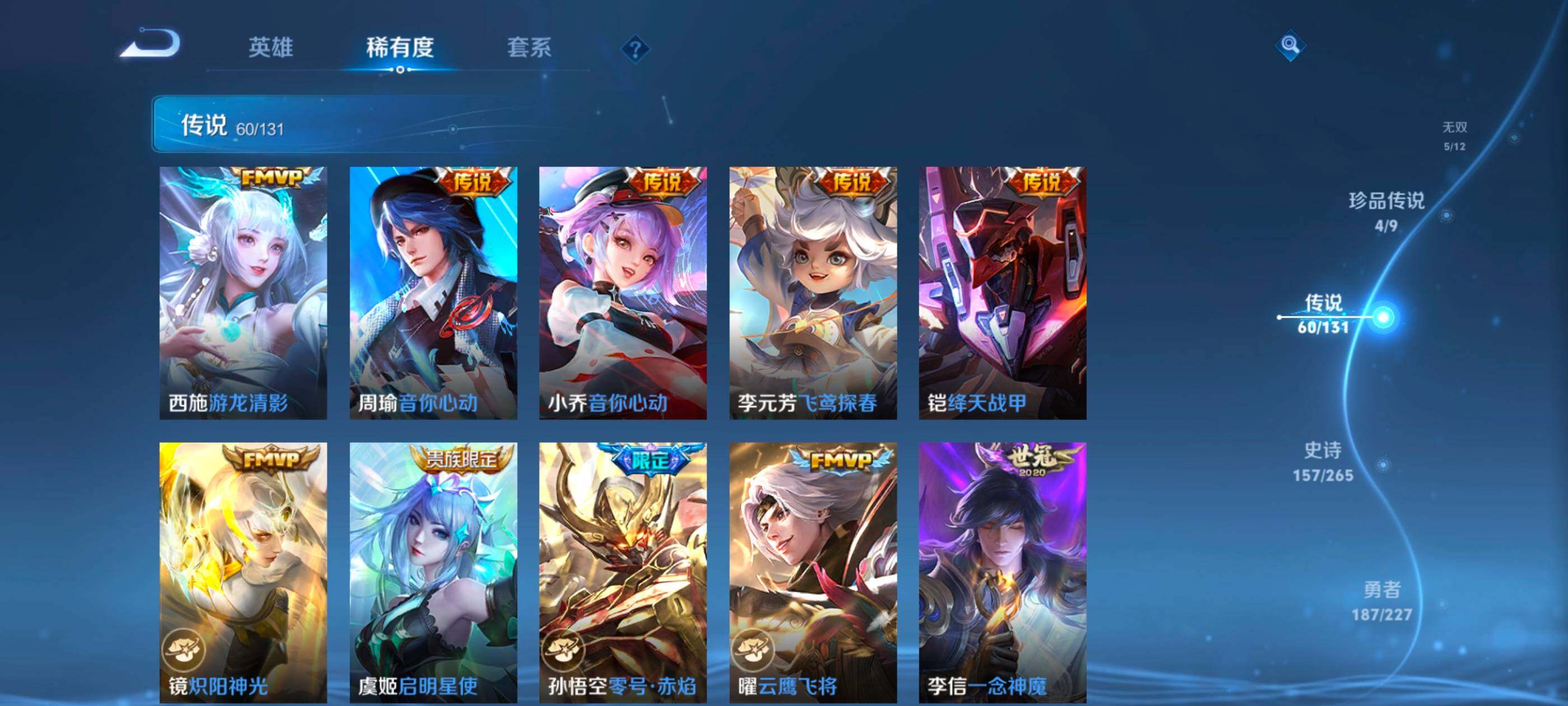 【5无双4珍品5星传说2典藏】v10-最强王者段位-127英雄-494皮肤-2典藏皮肤-5无双-4珍品传说-60传说-157史诗 【英雄全皮】:刘禅全皮,孙权全皮,艾琳全皮,刘备全皮,苍全皮,鬼谷子全皮,铠全皮,苏烈全皮,沈梦溪全皮,马超全皮,蒙恬全皮,镜全皮,夏洛特全皮,司空震全皮,云缨全皮,金蝉全皮,赵怀真全皮,莱西奥全皮,戈娅全皮,空空儿全皮,影全皮 【荣耀典藏】:铠银白咏叹调,伽罗最初的交响 【无双皮肤】:妲己青丘九尾,瑶真我赫兹,小乔时之魔女,曜器灵螭龙剑,铠神罪 【珍品传说】:马可波罗怪盗基德,鲁班七号江户川柯南,孙策时之奇旅,嫦娥器灵落星盏 【传说皮肤】:后羿神树通天,公孙离云诺千山,西施续相思,司空震愿照山河定,女娲愿照千秋盛,妲己愿照众生和,澜愿照九州拓,蔡文姬愿照福禄聚,虞姬愿照岁时盈,云缨幻光神呛,嬴政玄雷天君,桑启鸣野蒿,铠冥王哈迪斯,孙尚香乘龙问璇玑,马超琥珀纪元,铠琥珀纪元,艾琳觅芳踪,云缨鹤归松栖,东皇太一灼幽烈阳,诸葛亮鹤羽星尊,亚瑟追逃游戏,安琪拉追逃游戏,张飞百相守梦,公孙离记忆之芯,夏洛特浮生妄,虞姬无限倾心,项羽无限倾心,孙悟空齐天大圣,吕布怒海麟威,李白诗剑行,不知火舞绯月行,孙尚香音你闪耀,马可波罗深海之息,马超无双飞将,大乔挚爱花嫁,孙策挚爱之约,露娜启示之音,孙策末日机甲,赵云淬星耀世,王昭君乞巧织情,西施游龙清影,周瑜音你心动,小乔音你心动,李元芳飞鸢探春,铠绛天战甲,镜炽阳神光,虞姬启明星使,孙悟空零号赤焰,曜云鹰飞将,李信一念神魔,刘备时之恋人,伽罗太华,张良黄金白羊座,达摩黄金狮子座,后羿黄金射手座,貂蝉仲夏夜之梦,孙尚香末日机甲,宫本武藏地狱之眼,孙悟空地狱火,狄仁杰超时空战士 【限定皮肤】:铠冥王哈迪斯,暃埋骨钱,蒙犽顽岩魄,蔡文姬夏日便利店,大乔绒语心约,虞姬夏日便利店,姜子牙天穹之誓,杨戬破阵退雄兵,李白谪仙醉月,狄仁杰阴阳师,赵云皇家上将,赵云引擎之心,赵云百木心呛,墨子神迹守卫,孙尚香蔷薇恋人,鲁班七号狮舞东方,庄周云端筑梦师,钟无艳超时空战士,扁鹊奇幻香踪,白起夜都怪侠,芈月幻夜卜梦,吕布猎兽之王,吕布御风骁将,周瑜赤莲之焰,元歌云间偶戏,元歌无心,夏侯惇匿光决锋者,甄姬落雪兰心,马可波罗暗影游猎,马可波罗深海之息,马可波罗山海玄木吟,狄仁杰魔术师,狄仁杰万华元夜,达摩沙漠行僧,项羽海滩派对,项羽无限倾心,老夫子醍醐杖,老夫子航海奇遇记,关羽百相守梦,安琪拉追逃游戏,程咬金演武夺筹,露娜启示之音,韩信傲雪梅呛,王昭君午后时光,兰陵王金庭之子,不知火舞绯月行,亚瑟追逃游戏,孙悟空美猴王,孙悟空至尊宝,孙悟空零号赤焰,孙悟空齐天大圣,后羿圣弓游侠,刘备百相守梦,张飞百相守梦,李元芳云中旅人,虞姬启明星使,虞姬无限倾心,钟馗驱傩正仪,杨戬潮玩骑兵,女娲朔望之晖,干将莫邪冰霜恋舞曲,干将莫邪真爱魔法,雅典娜黎明之约,鬼谷子原初探秘者,鬼谷子五谷丰年,诸葛亮鹤羽星尊,大乔挚爱花嫁,黄忠火炮绅士,铠青龙志,苏烈玄武志,苏烈千军破阵,百里玄策原初追逐者,弈星混沌棋,梦奇顽趣,沈梦溪星空之诺,沈梦溪大漠名商,沈梦溪匿光破解者,明世隐疑决卦,明世隐吟游魔法,裴擒虎天狼狩猎者,裴擒虎李小龙,裴擒虎擒涛扼浪,狂铁电玩高手,米莱狄胡桃异想国,云中君纤云弄巧,伽罗太华,孙策挚爱之约,猪八戒猪悟能,上官婉儿梁祝,上官婉儿神器万象笔,嫦娥拒霜思,嫦娥暖冬兔眠,西施玲珑珍味,蒙犽狂想玩偶喵,鲁班大师探海日志,镜匿光追影者,桑启海盐诗旅,夏洛特浮生妄,金蝉唐三藏,暃星界游侠,戈娅驭风魔法,艾琳女武神,艾琳流音漫舞,赵怀真鹤归松栖,云缨鹤归松栖,司空震地狱燃心,阿古朵江河有灵,张良古海寻踪,蒙犽百解令,艾琳觅芳踪,蒙恬荣光圣徽,高渐离燃音魔法,妲己灵卜魔法,鬼谷子天穹祈灯,伽罗琥珀纪元,铠琥珀纪元,马超琥珀纪元,小乔时之魔女,孙尚香乘龙问璇玑,沈梦溪龙舞盛年,鲁班七号蔬乡物语,李元芳蔬乡物语,刘邦剑破天穹,程咬金群星魔术团,镜青焰无极,项羽苍威无极,刘备异域游侠,芈月浮光幕影,周瑜熔金海岸 【年限皮肤】:铠青龙志,苏烈玄武志,孙悟空美猴王,吕布御风骁将,伽罗太华,马超神威,马可波罗山海玄木吟,孙尚香乘龙问璇玑 【赛季限定】:狄仁杰万华元夜,达摩沙漠行僧,老夫子醍醐杖,程咬金演武夺筹,兰陵王金庭之子,张良古海寻踪,李元芳云中旅人,钟馗驱傩正仪,雅典娜黎明之约,鬼谷子原初探秘者,苏烈千军破阵,百里玄策原初追逐者,弈星混沌棋,梦奇顽趣,沈梦溪大漠名商,明世隐疑决卦,裴擒虎擒涛扼浪,鲁班大师探海日志,桑启海盐诗旅,鬼谷子天穹祈灯,蒙恬荣光圣徽,刘邦剑破天穹,姜子牙天穹之誓 【战令限定】:墨子神迹守卫,蔡文姬夏日便利店,虞姬夏日便利店,鲁班七号狮舞东方,钟无艳超时空战士,扁鹊奇幻香踪,白起夜都怪侠,芈月幻夜卜梦,吕布猎兽之王,周瑜赤莲之焰,元歌云间偶戏,甄姬落雪兰心,马可波罗暗影游猎,老夫子航海奇遇记,王昭君午后时光,艾琳流音漫舞,后羿圣弓游侠,杨戬潮玩骑兵,女娲朔望之晖,干将莫邪真爱魔法,黄忠火炮绅士,沈梦溪星空之诺,明世隐吟游魔法,狂铁电玩高手,米莱狄胡桃异想国,嫦娥暖冬兔眠,西施玲珑珍味,蒙犽狂想玩偶喵,司空震地狱燃心,暃星界游侠,戈娅驭风魔法,高渐离燃音魔法,妲己灵卜魔法,鲁班七号蔬乡物语,李元芳蔬乡物语,镜青焰无极,项羽