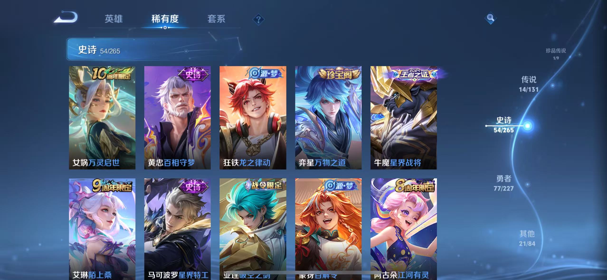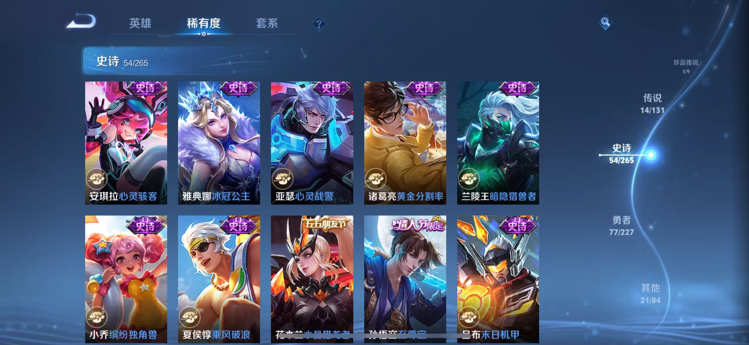 银标虞姬 曜 后羿 诸葛亮 v7-167皮 1珍品 怪盗基德 14传说 黄金射手座,祥瑞亨通,霜月吟,胖达荣荣,怒海麟威,鸣野蒿,末日机甲,云鹰飞将,时之恋人,游龙清影,时雨天司,仲夏夜之梦,地狱之眼,云霓雀翎 54史诗 千年之狐,心灵战警,万物之道,万灵启世,至尊宝,天才门将,百相守梦,鬼剑武藏,星夜王子,龙之律动,猫狗日记,星界战将,月团寄思,缤纷独角兽,紫霞仙子,梁祝,青蛇,原初追逐者,陌上桑,乘风破浪,心灵骇客,破空之剑,星界特工,魔术师,热力回旋,电玩小子,末日机甲,冰冠公主,水晶猎龙者,皇家上将,曙光守护者,暗渊魔法,黄金分割率,水果甜心,功夫厨神,蔷薇恋人,纤云弄巧,拒霜思,特工魅影,百解令,岱宗,冰雪圆舞曲,未来纪元,江河有灵,女仆咖啡,逐浪之夏,节奏热浪,五谷丰年,苍穹之光,鹰眼统帅,金属风暴,魅力维加斯,乐园奇幻夜,暗隐猎兽者