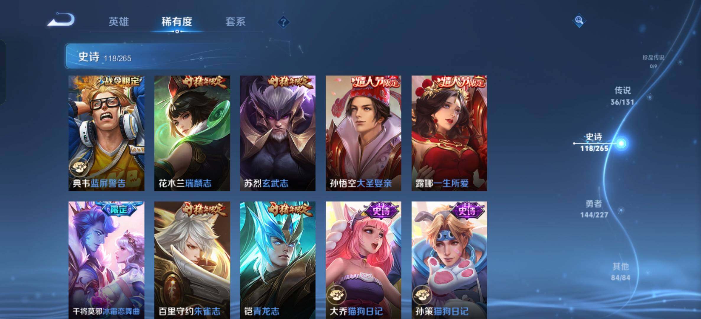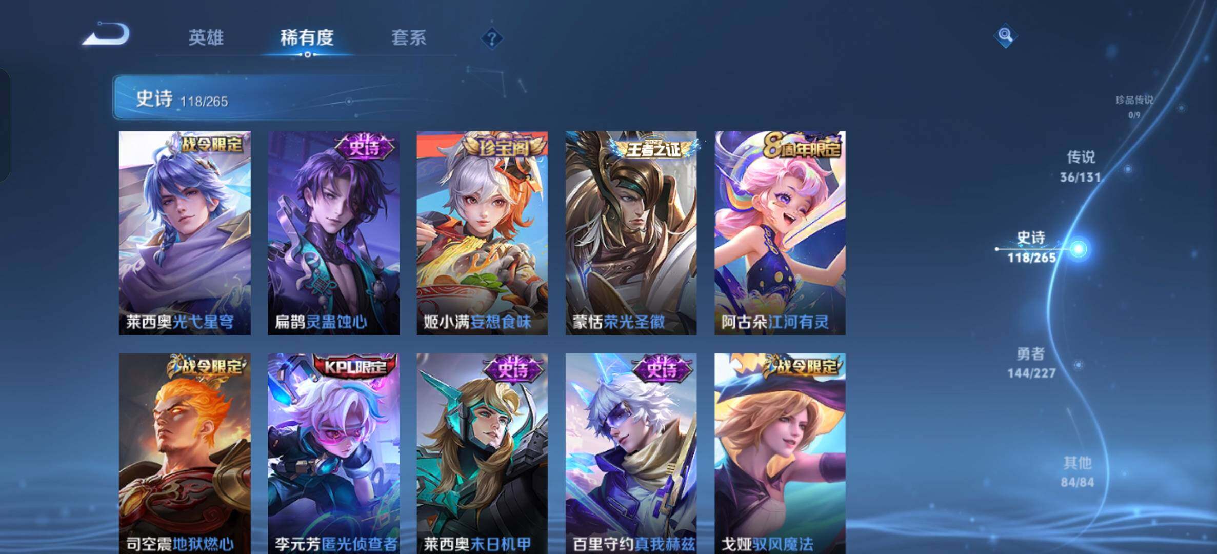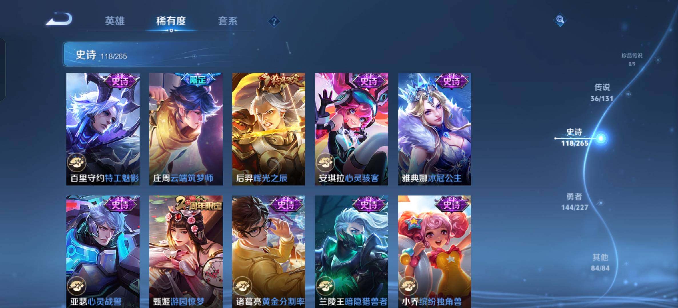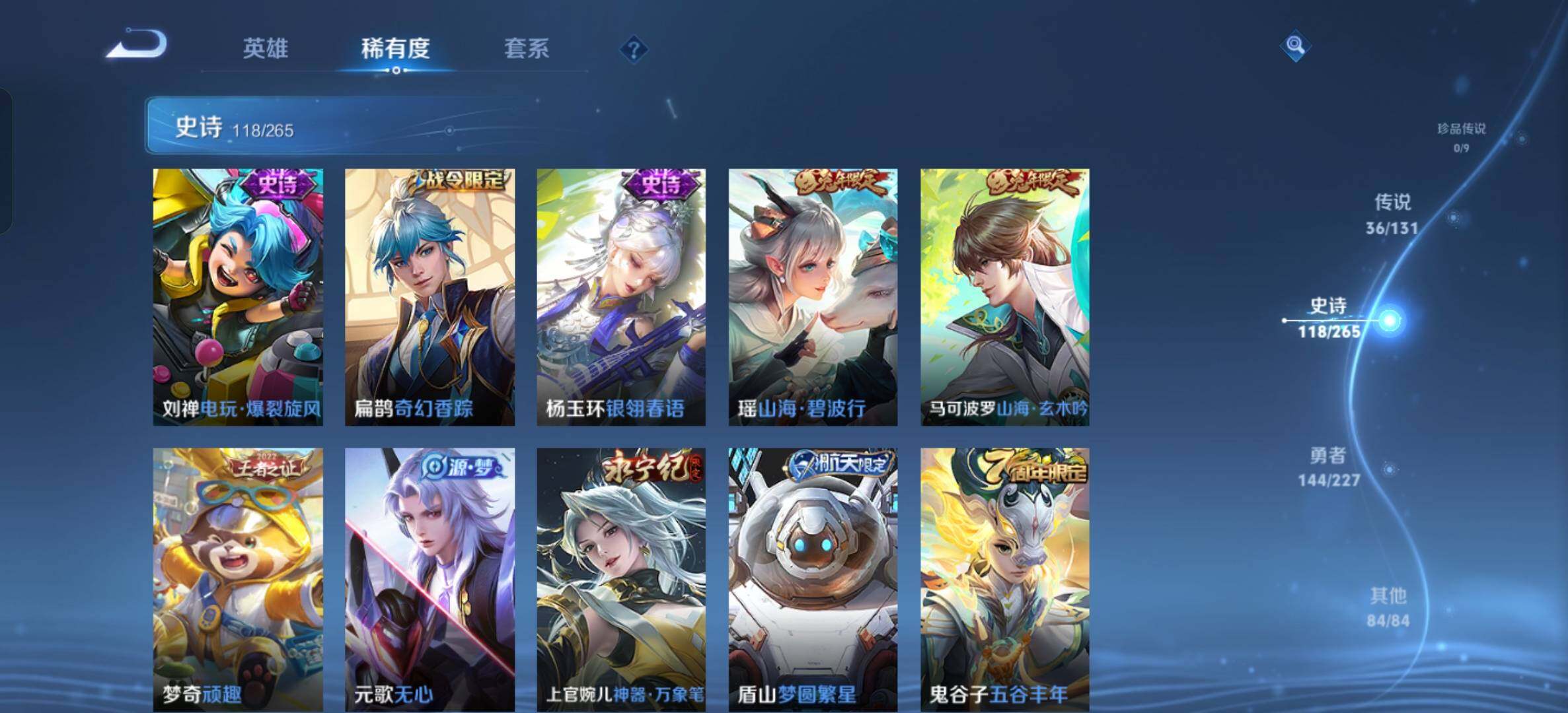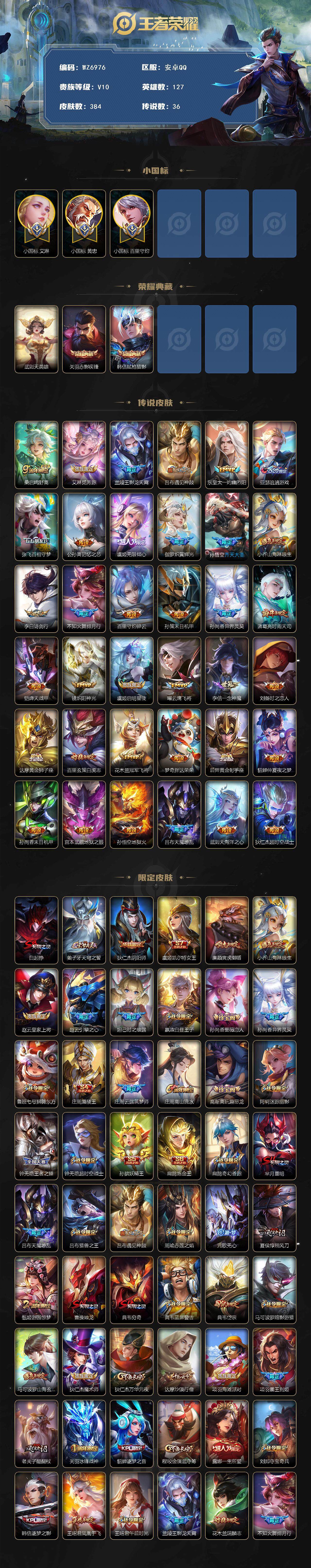 【三小国标】v10-最强王者段位-127英雄-384皮肤-2典藏皮肤-1典藏英雄-36传说-118史诗 【英雄全皮】:刘邦全皮,盾山全皮,蒙恬全皮 【荣耀典藏】:武则天英雄,关羽赤影疾锋,韩信弑呛猎影 【传说皮肤】:桑启鸣野蒿,艾琳觅芳踪,兰陵王影龙天霄,吕布遇见神鼓,东皇太一灼幽烈阳,亚瑟追逃游戏,张飞百相守梦,公孙离记忆之芯,虞姬无限倾心,伽罗炽翼辉光,孙悟空齐天大圣,小乔山海琳琅生,李白诗剑行,不知火舞绯月行,百里守约碎云,孙策末日机甲,孙尚香异界灵契,诸葛亮时雨天司,铠绛天战甲,镜炽阳神光,虞姬启明星使,曜云鹰飞将,李信一念神魔,刘备时之恋人,达摩黄金狮子座,百里玄策白虎志,花木兰冠军飞将,梦奇胖达荣荣,后羿黄金射手座,貂蝉仲夏夜之梦,孙尚香末日机甲,宫本武藏地狱之眼,孙悟空地狱火,吕布天魔缭乱,武则天海洋之心,狄仁杰超时空战士 【限定皮肤】:白起狰,姜子牙天穹之誓,狄仁杰阴阳师,虞姬凯尔特女王,廉颇寅虎御盾,小乔山海琳琅生,赵云皇家上将,赵云引擎之心,妲己时之彼端,嬴政白昼王子,孙尚香蔷薇恋人,孙尚香异界灵契,鲁班七号狮舞东方,庄周蜃楼王,庄周云端筑梦师,庄周高山流水,高渐离玩趣恶龙,阿轲迷踪丽影,钟无艳王者之锤,钟无艳超时空战士,孙膑妖精王,扁鹊炼金王,扁鹊奇幻香踪,芈月重明,吕布天魔缭乱,吕布猎兽之王,吕布遇见神鼓,周瑜赤莲之焰,元歌无心,夏侯惇朔风刀,甄姬游园惊梦,曹操烛龙,典韦穷奇,典韦蓝屏警告,典韦岱宗,马可波罗暗影游猎,马可波罗山海玄木吟,狄仁杰魔术师,狄仁杰万华元夜,达摩沙漠行僧,项羽海滩派对,项羽霸王别姬,老夫子醍醐杖,关羽冰锋战神,貂蝉逐梦之音,程咬金演武夺筹,露娜一生所爱,刘邦夺宝奇兵,韩信逐梦之影,王昭君凤凰于飞,王昭君午后时光,兰陵王影龙天霄,花木兰瑞麟志,不知火舞绯月行,亚瑟追逃游戏,孙悟空美猴王,孙悟空至尊宝,孙悟空大圣娶亲,孙悟空齐天大圣,牛魔御旌,后羿辉光之辰,张飞虎魄,张飞百相守梦,李元芳匿光侦查者,李元芳云中旅人,虞姬启明星使,虞姬无限倾心,钟馗神迹守卫,钟馗驱傩正仪,杨玉环遇见飞天,杨戬潮玩骑兵,女娲朔望之晖,干将莫邪冰霜恋舞曲,太乙真人饕餮,东皇太一逐梦之光,鬼谷子原初探秘者,鬼谷子五谷丰年,诸葛亮时雨天司,黄忠烈魂,铠青龙志,苏烈玄武志,百里玄策白虎志,百里玄策原初追逐者,百里守约朱雀志,弈星混沌棋,梦奇顽趣,沈梦溪星空之诺,沈梦溪大漠名商,明世隐疑决卦,裴擒虎天狼狩猎者,裴擒虎李小龙,裴擒虎擒涛扼浪,狂铁御狮,狂铁电玩高手,米莱狄御霄,瑶山海碧波行,伽罗炽翼辉光,盾山御銮,盾山梦圆繁星,猪八戒西部大镖客,上官婉儿梁祝,上官婉儿天狼绘梦者,上官婉儿神器万象笔,西施玲珑珍味,鲁班大师探海日志,桑启海盐诗旅,戈娅驭风魔法,艾琳流音漫舞,司空震地狱燃心,阿古朵江河有灵,张良古海寻踪,艾琳觅芳踪,蒙恬荣光圣徽,鬼谷子天穹祈灯,姬小满妄想食味,刘邦剑破天穹,程咬金群星魔术团 【年限皮肤】:百里玄策白虎志,百里守约朱雀志,花木兰瑞麟志,铠青龙志,苏烈玄武志,孙悟空美猴王,廉颇寅虎御盾,王昭君凤凰于飞,后羿辉光之辰,诸葛亮时雨天司,典韦岱宗,马超神威,黄忠烈魂,张飞虎魄,瑶山海碧波行,马可波罗山海玄木吟,小乔山海琳琅生,伽罗炽翼辉光 【赛季限定】:庄周蜃楼王,孙膑妖精王,扁鹊炼金王,白起狰,芈月重明,夏侯惇朔风刀,曹操烛龙,典韦穷奇,狄仁杰万华元夜,达摩沙漠行僧,老夫子醍醐杖,程咬金演武夺筹,张良古海寻踪,牛魔御旌,李元芳云中旅人,虞姬凯尔特女王,钟馗驱傩正仪,太乙真人饕餮,鬼谷子原初探秘者,百里玄策原初追逐者,弈星混沌棋,梦奇顽趣,沈梦溪大漠名商,明世隐疑决卦,裴擒虎擒涛扼浪,狂铁御狮,米莱狄御霄,盾山御銮,鲁班大师探海日志,桑启海盐诗旅,鬼谷子天穹祈灯,蒙恬荣光圣徽,刘邦剑破天穹,姜子牙天穹之誓 【战令限定】:嬴政白昼王子,鲁班七号狮舞东方,阿轲迷踪丽影,钟无艳超时空战士,扁鹊奇幻香踪,吕布猎兽之王,周瑜赤莲之焰,典韦蓝屏警告,马可波罗暗影游猎,刘邦夺宝奇兵,王昭君午后时光,艾琳流音漫舞,钟馗神迹守卫,杨戬潮玩骑兵,女娲朔望之晖,沈梦溪星空之诺,狂铁电玩高手,猪八戒西部大镖客,西施玲珑珍味,司空震地狱燃心,戈娅驭风魔法 【史诗皮肤】:鲁班七号电玩小子,项羽苍穹之光,露娜紫霞仙子,阿轲暗夜猫娘,钟无艳王者之锤,赵云皇家上将,赵云未来纪元,貂蝉圣诞恋歌,甄姬冰雪圆舞曲,王昭君偶像歌手,狄仁杰魔术师,廉颇地狱岩魂,宫本武藏鬼剑武藏,孙尚香蔷薇恋人,孙尚香水果甜心,嬴政暗夜贵公子,嬴政摇滚巨星,妲己魅力维加斯,妲己女仆咖啡,墨子龙骑士,墨子金属风暴,吕布圣诞狂欢,刘禅绅士熊喵,曹操幽灵船长,李白千年之狐,吕布末日机甲,张飞乱世虎臣,韩信白龙吟,项羽霸王别姬,关羽冰锋战神,貂蝉逐梦之音,王昭君凤凰于飞,孙悟空至尊宝,赵云引擎之心,花木兰水晶猎龙者,刘邦德古拉伯爵,韩信逐梦之影,夏侯惇乘风破浪,小乔缤纷独角兽,兰陵王暗隐猎兽者,诸葛亮黄金分割率,甄姬游园惊梦,亚瑟心灵战警,雅典娜冰冠公主,安琪拉心灵骇客,后羿辉光之辰,庄周云端筑梦师,百里守约特工魅影,铠曙光守护者,蔡文姬舞动绿茵,刘禅天才门将,李元芳逐浪之夏,程咬金功夫厨神,白起星夜王子,阿轲节奏热浪,杨玉环遇见飞天,东皇太一逐梦之光,嬴政白昼王子,孙策猫狗日记,大乔