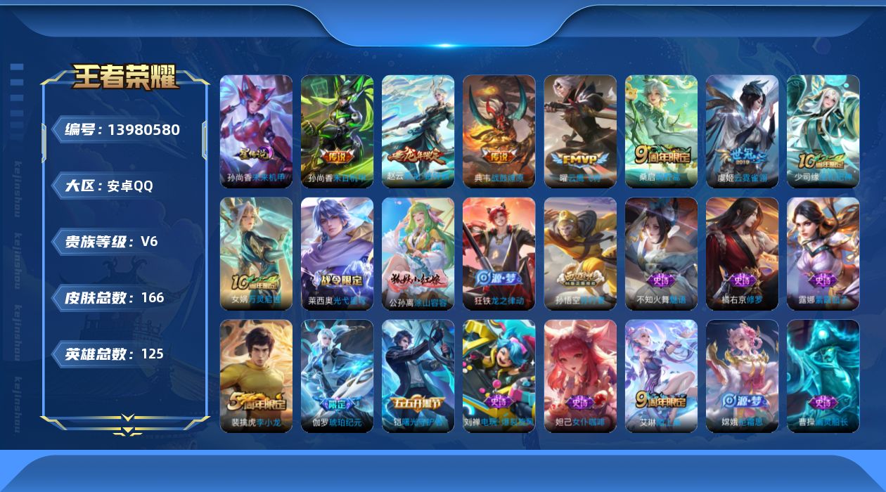 [13980580]安卓q-v6-166皮肤-7传说-41史诗 【英雄全皮】:孙权全皮 【传说皮肤】:后羿神树通天,桑启鸣野蒿,典韦战鼓燎原,赵云乘龙铭钟鼎,曜云鹰飞将,虞姬云霓雀翎,孙尚香末日机甲 【限定皮肤】:虞姬夏日便利店,姜子牙天穹之誓,狄仁杰阴阳师,赵云皇家上将,孙尚香蔷薇恋人,狄仁杰魔术师,狄仁杰万华元夜,达摩沙漠行僧,项羽海滩派对,老夫子醍醐杖,程咬金演武夺筹,兰陵王金庭之子,孙悟空孙行者,李元芳云中旅人,钟馗驱傩正仪,雅典娜单词大作战,鬼谷子原初探秘者,苏烈千军破阵,沈梦溪大漠名商,裴擒虎李小龙,裴擒虎擒涛扼浪,云中君纤云弄巧,猪八戒西部大镖客,嫦娥拒霜思,西施玲珑珍味,蒙犽狂想玩偶喵,鲁班大师探海日志,桑启海盐诗旅,戈娅驭风魔法,艾琳女武神,张良古海寻踪,鬼谷子天穹祈灯,伽罗琥珀纪元,赵云乘龙铭钟鼎,刘邦剑破天穹,周瑜熔金海岸 【年限皮肤】:赵云乘龙铭钟鼎 【赛季限定】:狄仁杰万华元夜,达摩沙漠行僧,老夫子醍醐杖,程咬金演武夺筹,兰陵王金庭之子,张良古海寻踪,李元芳云中旅人,钟馗驱傩正仪,鬼谷子原初探秘者,苏烈千军破阵,沈梦溪大漠名商,裴擒虎擒涛扼浪,鲁班大师探海日志,桑启海盐诗旅,鬼谷子天穹祈灯,刘邦剑破天穹,姜子牙天穹之誓 【战令限定】:虞姬夏日便利店,雅典娜单词大作战,猪八戒西部大镖客,西施玲珑珍味,蒙犽狂想玩偶喵,戈娅驭风魔法 【史诗皮肤】:露娜紫霞仙子,赵云皇家上将,貂蝉圣诞恋歌,狄仁杰魔术师,宫本武藏鬼剑武藏,孙尚香蔷薇恋人,孙尚香水果甜心,妲己魅力维加斯,妲己女仆咖啡,墨子金属风暴,曹操幽灵船长,吕布末日机甲,夏侯惇乘风破浪,兰陵王暗隐猎兽者,诸葛亮黄金分割率,雅典娜冰冠公主,百里守约特工魅影,铠曙光守护者,蔡文姬舞动绿茵,李元芳逐浪之夏,程咬金功夫厨神,孙策猫狗日记,伽罗箭羽风息,狄仁杰鹰眼统帅,不知火舞魅语,橘右京修罗,蒙犽狂想玩偶喵,裴擒虎李小龙,云中君纤云弄巧,杨戬天秀启明,孙悟空孙行者,嫦娥拒霜思,刘禅电玩爆裂旋风,戈娅驭风魔法,伽罗琥珀纪元,艾琳陌上桑,狂铁龙之律动,公孙离涂山容容,莱西奥光弋星穹,女娲万灵启世,少司缘巫礼祀神 【其他皮肤】:项羽海滩派对,韩信教廷特使,露娜哥特玫瑰,达摩大发明家,芈月红桃皇后,艾琳女武神,白起白色死神,牛魔西部大镖客,安琪拉玩偶对对碰,姜子牙时尚教父,妲己少女阿狸,亚瑟死亡骑士,花木兰兔女郎,甄姬花好人间,