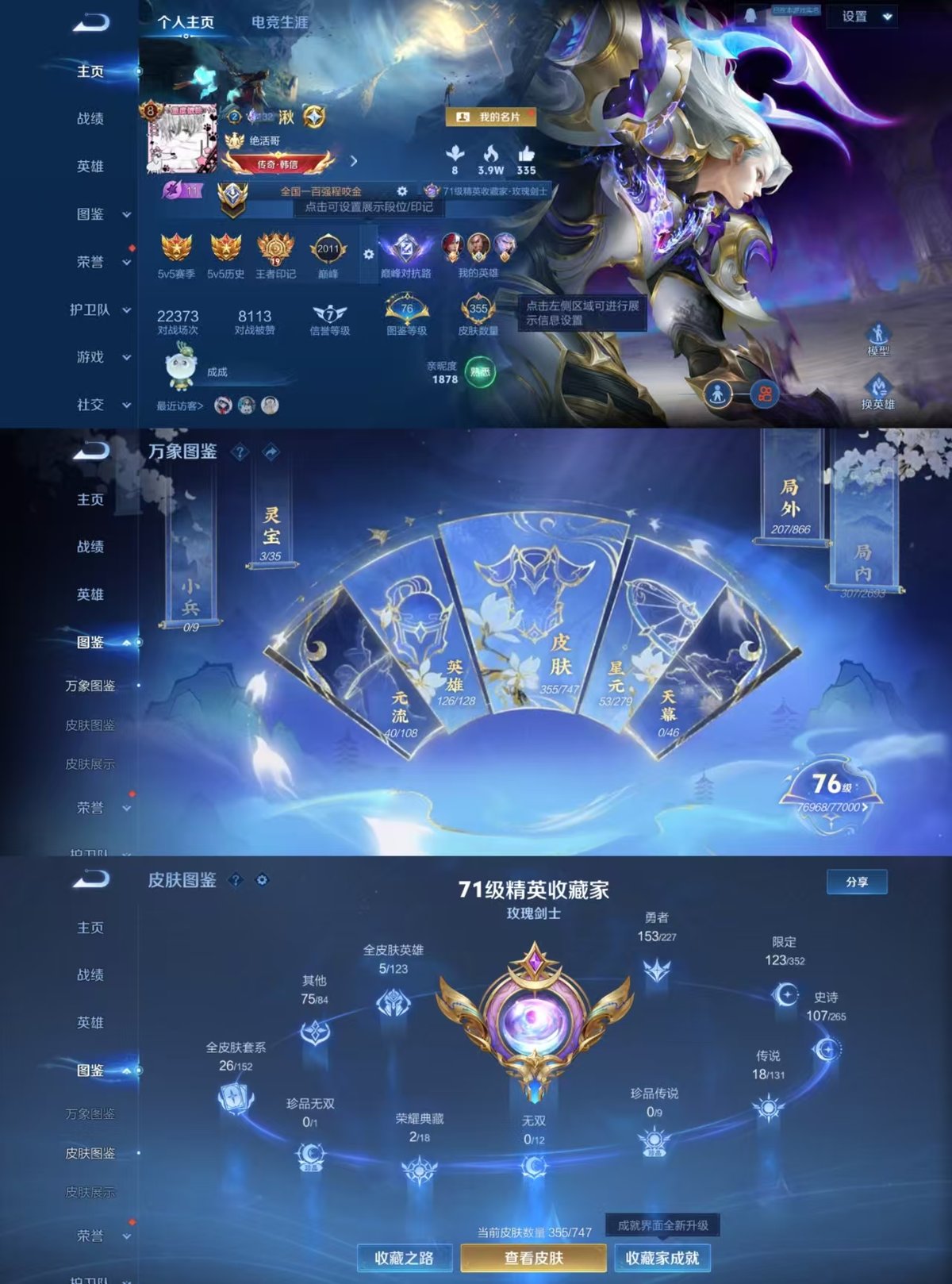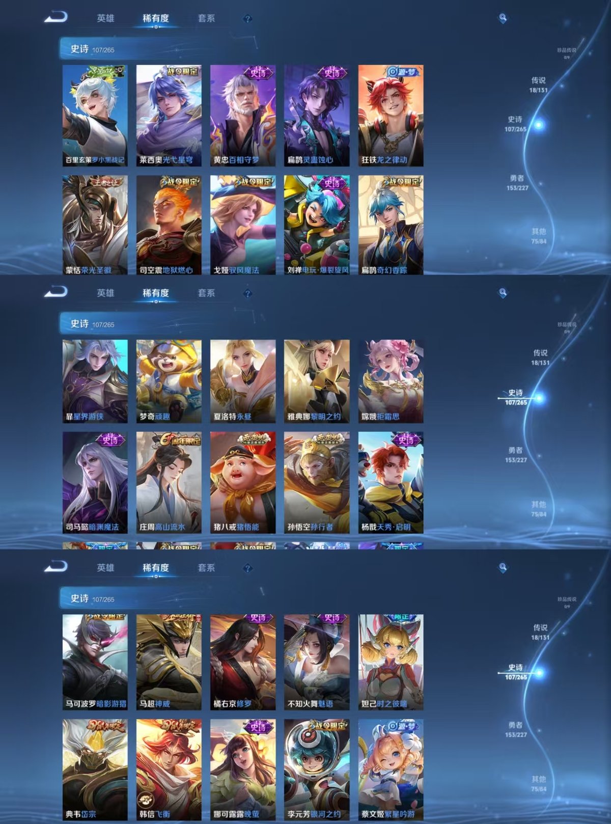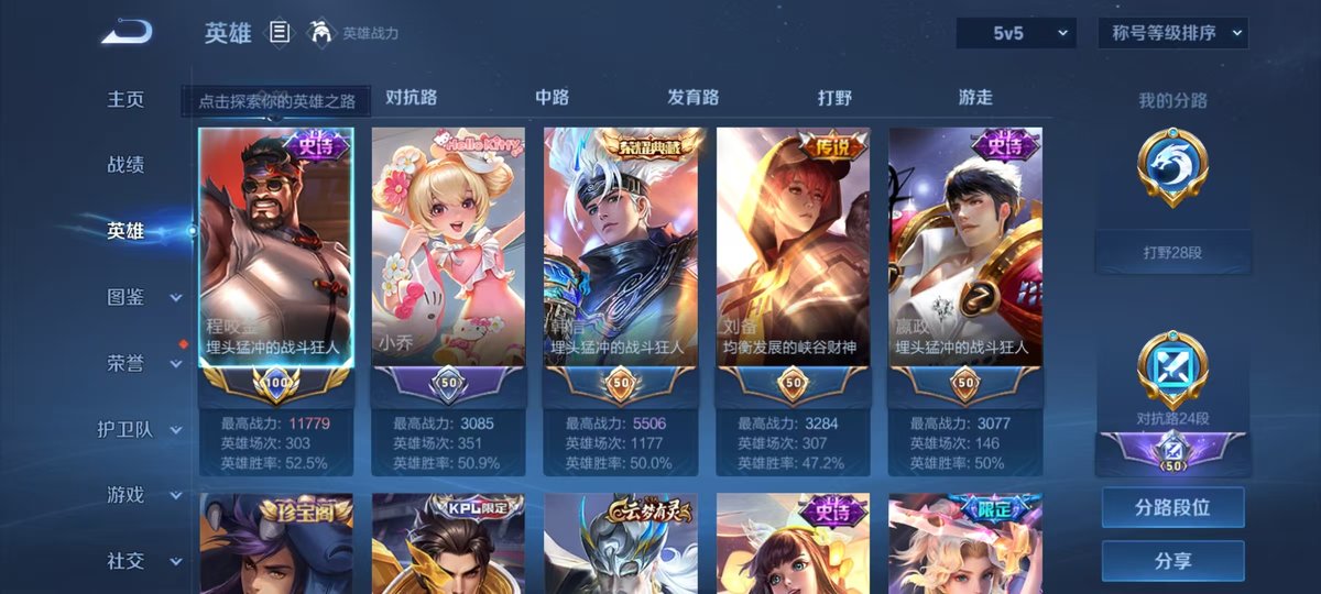 2318938-小国标程咬金实名: 可修改 贵族等级: v8 英雄数: 126 皮肤数: 355 荣耀水晶: 银白咏叹调弑呛猎影 传说皮: 云鹰飞将一念神魔末日机甲-孙尚香地狱火仲夏夜之梦零号·赤焰地狱之眼时之恋人-刘备超时空战士-狄仁杰浮生妄澜逐花归海 限定皮: 冰锋战神遇见飞天李小龙游园惊梦梁祝时雨天司白鹤梁神女白晶晶岱宗天魔缭乱神威永曜之星