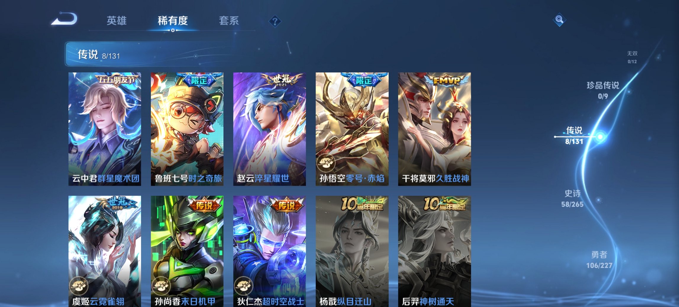 127英雄-205皮肤-【205皮肤8传说1星元1金标 秒换绑不用等】安卓q-127英雄【1星元】未来机甲【8传说】时之奇旅 超时空战士 久胜战神 末日机甲 零号·赤焰 云霓雀翎 淬星耀世 群星魔术团【60史诗】怒海争锋 顽岩魄 地狱燃心 天穹祈灯 天穹之誓 埋骨钱 群星魔术团 顽趣 完美运算 繁星吟游 功夫厨神 女仆咖啡 魅力维加斯 魔术师 鹰眼统帅 蓝屏警告 圣诞恋歌 无限星赏官 鬼剑武藏 青春决