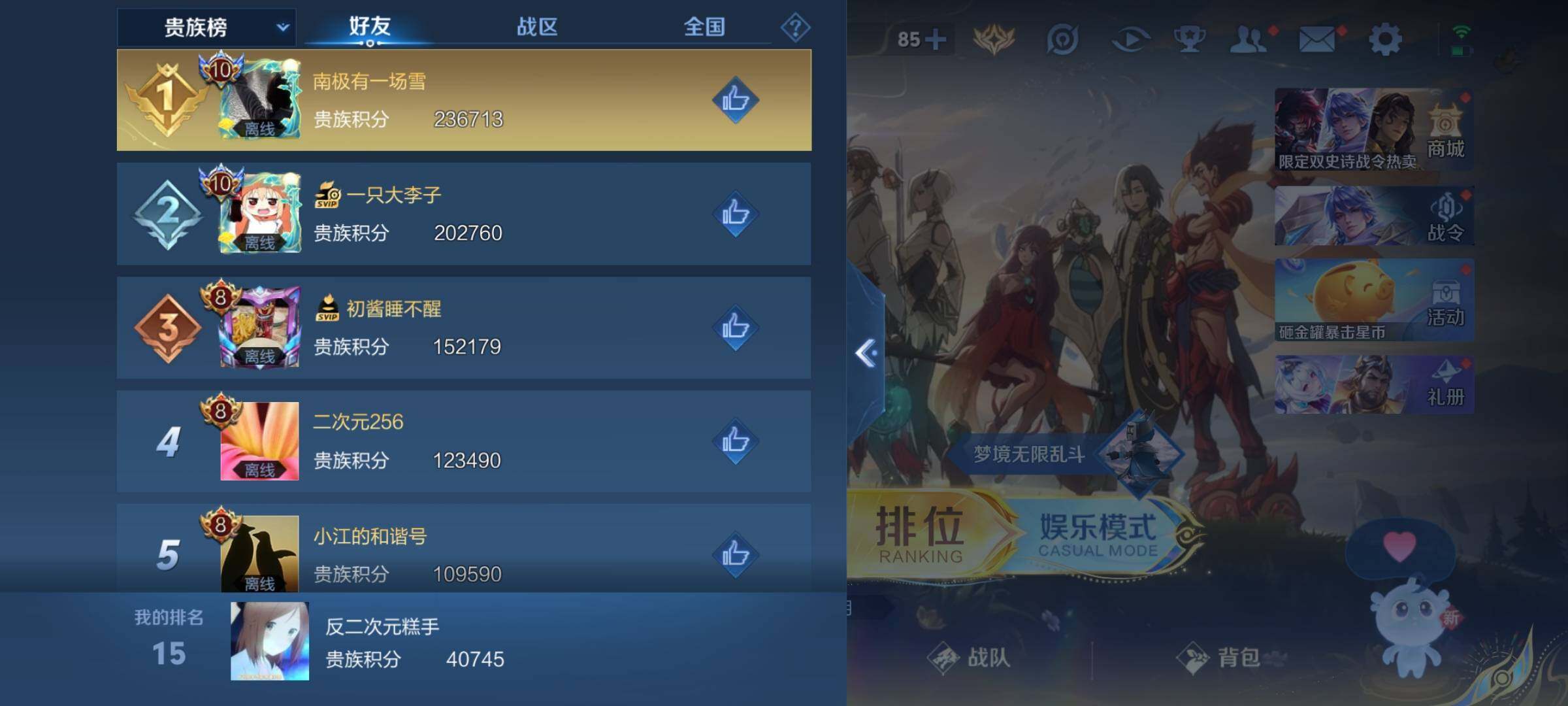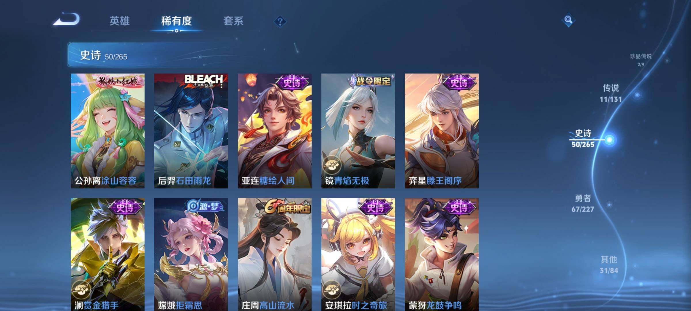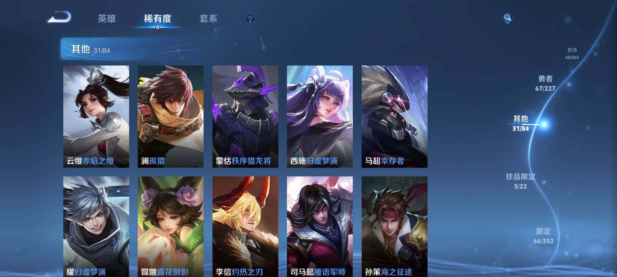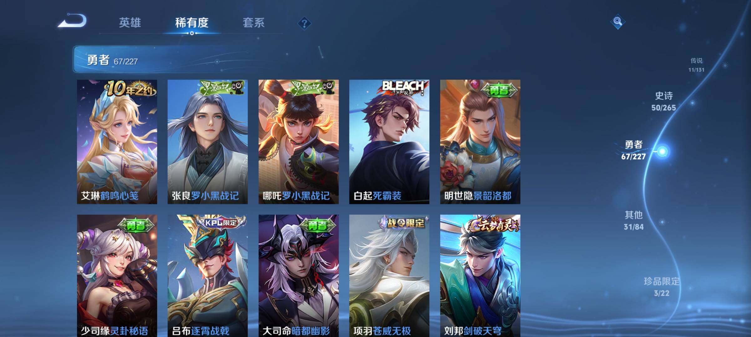 _2319281-q-v7-永恒钻石v段位-127英雄-163皮肤-1典藏皮肤-1无双-2珍品传说-11传说-50史诗 【荣耀典藏】:韩信弑呛猎影 【无双皮肤】:小乔时之魔女 【珍品传说】:马可波罗怪盗基德,鲁班七号江户川柯南 【传说皮肤】:后羿神树通天,女娲愿照千秋盛,李白诗剑行,不知火舞绯月行,西施游龙清影,貂蝉猫影幻舞,张良黄金白羊座,干将莫邪久胜战神,百里玄策白虎志,宫本武藏地狱之眼,狄仁杰超时空战士 【限定皮肤】:狄仁杰阴阳师,赵云皇家上将,赵云引擎之心,妲己时之彼端,嬴政白昼王子,孙尚香蔷薇恋人,鲁班七号狮舞东方,庄周高山流水,吕布猎兽之王,周瑜赤莲之焰,元歌云间偶戏,夏侯惇朔风刀,甄姬游园惊梦,典韦穷奇,典韦蓝屏警告,马可波罗逐梦之星,狄仁杰魔术师,狄仁杰万华元夜,项羽海滩派对,老夫子醍醐杖,程咬金演武夺筹,露娜一生所爱,兰陵王驯魔猎人,兰陵王金庭之子,不知火舞绯月行,亚瑟潮玩骑士王,牛魔御旌,后羿如梦令,李元芳云中旅人,钟馗神迹守卫,钟馗驱傩正仪,杨玉环遇见飞天,女娲朔望之晖,干将莫邪冰霜恋舞曲,蔡文姬奇迹圣诞,蔡文姬繁星吟游,鬼谷子原初探秘者,苏烈千军破阵,百里玄策白虎志,弈星混沌棋,公孙离蜜橘之夏,沈梦溪大漠名商,明世隐疑决卦,裴擒虎李小龙,狂铁御狮,米莱狄御霄,云中君纤云弄巧,盾山御銮,上官婉儿梁祝,嫦娥拒霜思,张良古海寻踪,鬼谷子天穹祈灯,小乔时之魔女,刘邦剑破天穹,镜青焰无极,项羽苍威无极 【年限皮肤】:百里玄策白虎志 【赛季限定】:夏侯惇朔风刀,典韦穷奇,狄仁杰万华元夜,老夫子醍醐杖,程咬金演武夺筹,兰陵王金庭之子,张良古海寻踪,牛魔御旌,李元芳云中旅人,钟馗驱傩正仪,鬼谷子原初探秘者,苏烈千军破阵,弈星混沌棋,沈梦溪大漠名商,明世隐疑决卦,狂铁御狮,米莱狄御霄,盾山御銮,鬼谷子天穹祈灯,刘邦剑破天穹 【战令限定】:嬴政白昼王子,鲁班七号狮舞东方,吕布猎兽之王,周瑜赤莲之焰,元歌云间偶戏,典韦蓝屏警告,兰陵王驯魔猎人,亚瑟潮玩骑士王,钟馗神迹守卫,女娲朔望之晖,镜青焰无极,项羽苍威无极 【史诗皮肤】:赵云皇家上将,貂蝉圣诞恋歌,甄姬冰雪圆舞曲,王昭君偶像歌手,狄仁杰魔术师,宫本武藏鬼剑武藏,孙尚香蔷薇恋人,孙尚香水果甜心,妲己魅力维加斯,李白千年之狐,吕布末日机甲,张飞乱世虎臣,赵云引擎之心,小乔缤纷独角兽,兰陵王暗隐猎兽者,诸葛亮黄金分割率,甄姬游