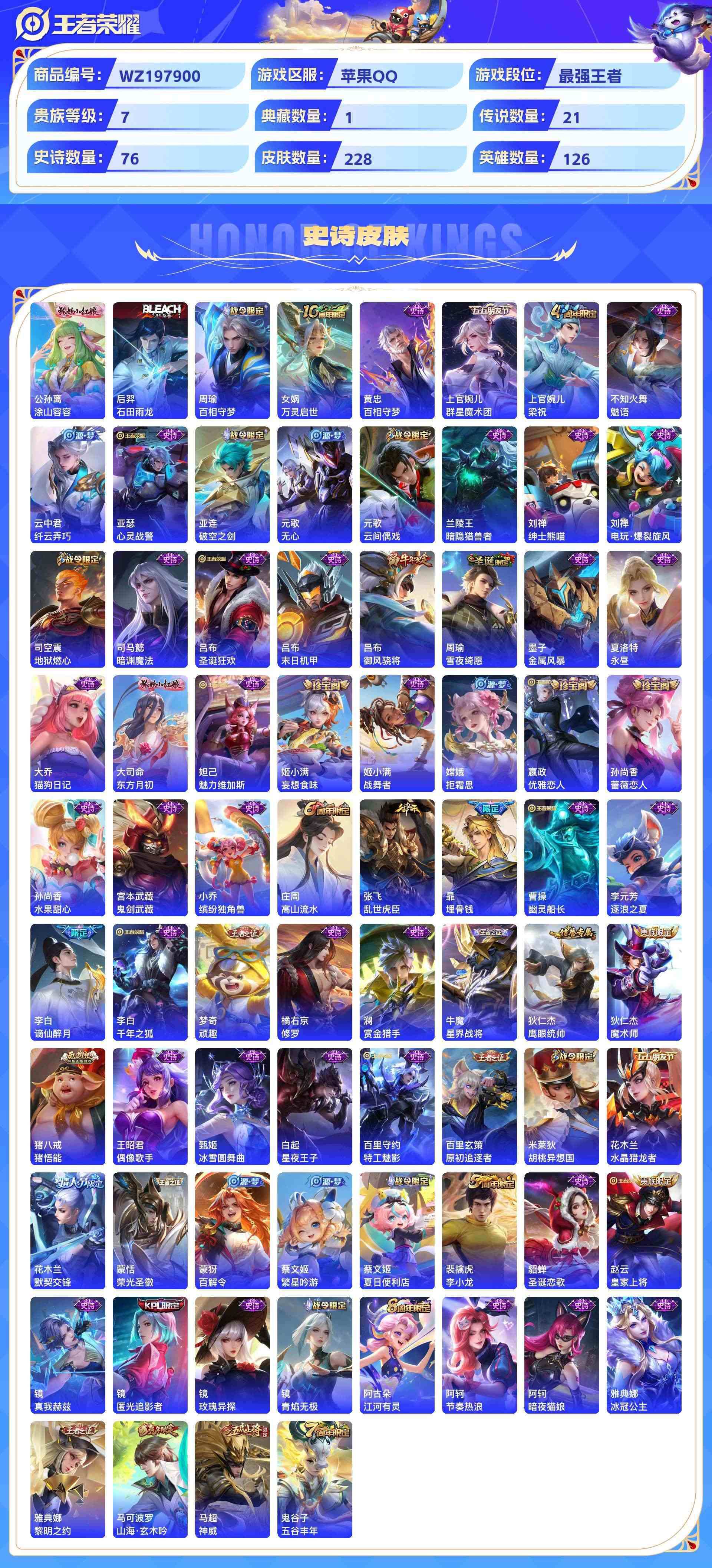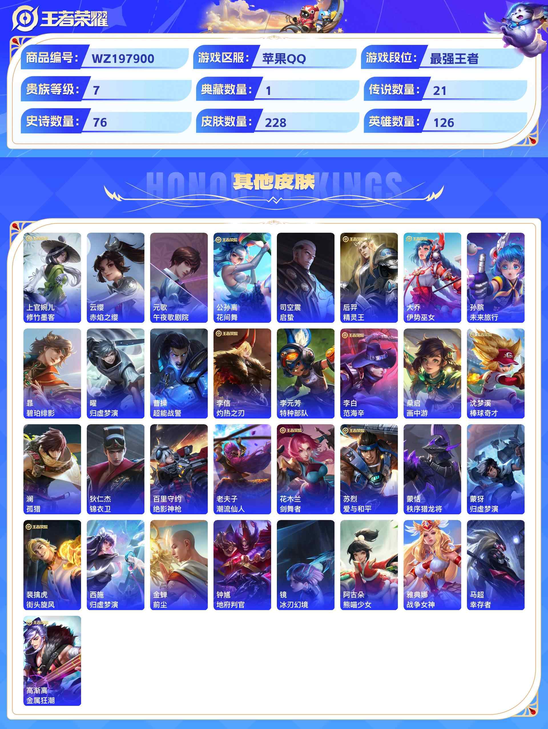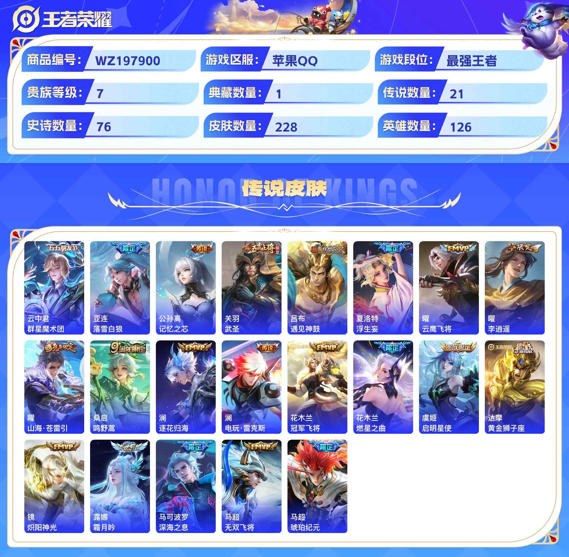 wz197900|精品金标万战号可二次苹果qq 贵族7级 6金标(曜 马超 百里守约 花木兰 姬小满 云中君)1万战(曜)打野41段228皮 1典藏(赤影疾锋) 21传说 (群星魔术团落雪白狼记忆之芯武圣遇见神鼓)76史诗7个性按键