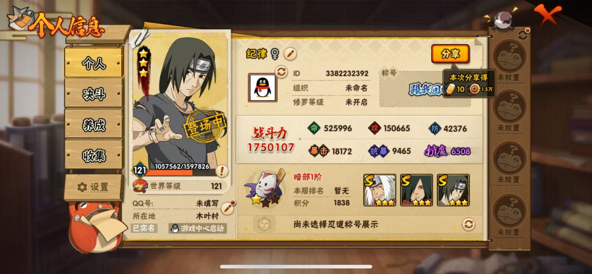 [9696752]v6 5s忍 175w战力 可二次 s级忍者:自来也 「舞之豪杰」宇智波斑宇智波鼬 「须佐能乎」佩恩「天道」自来也