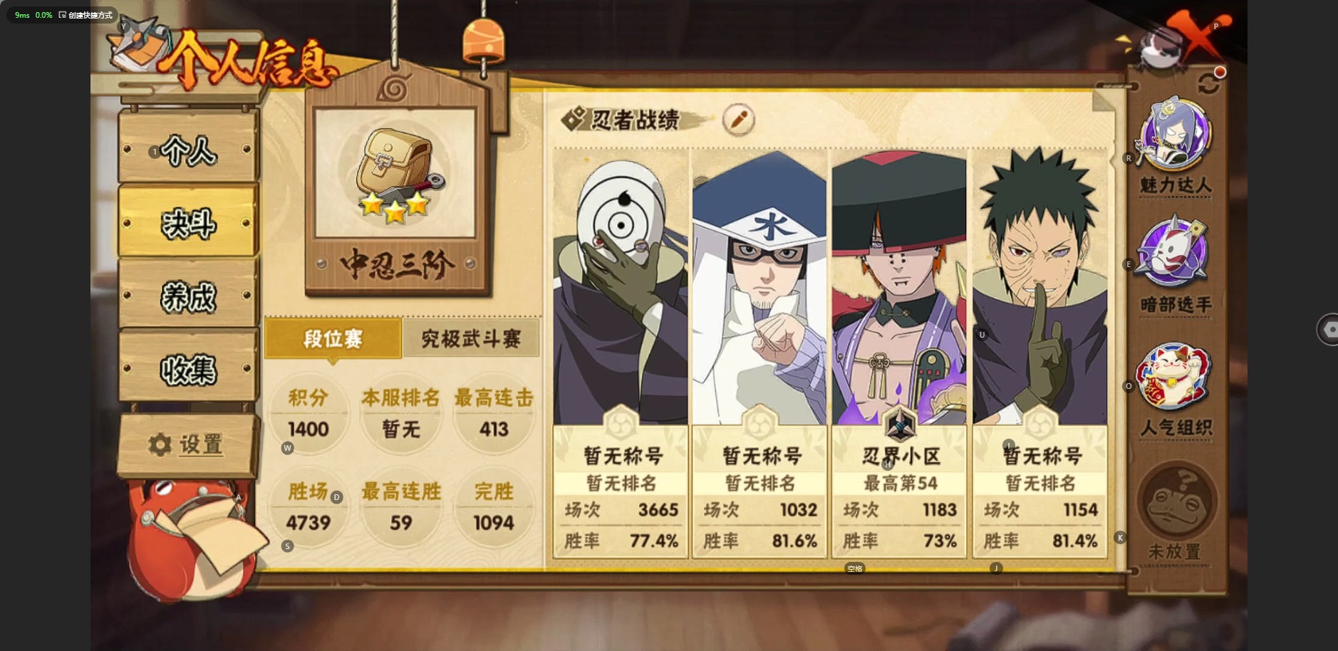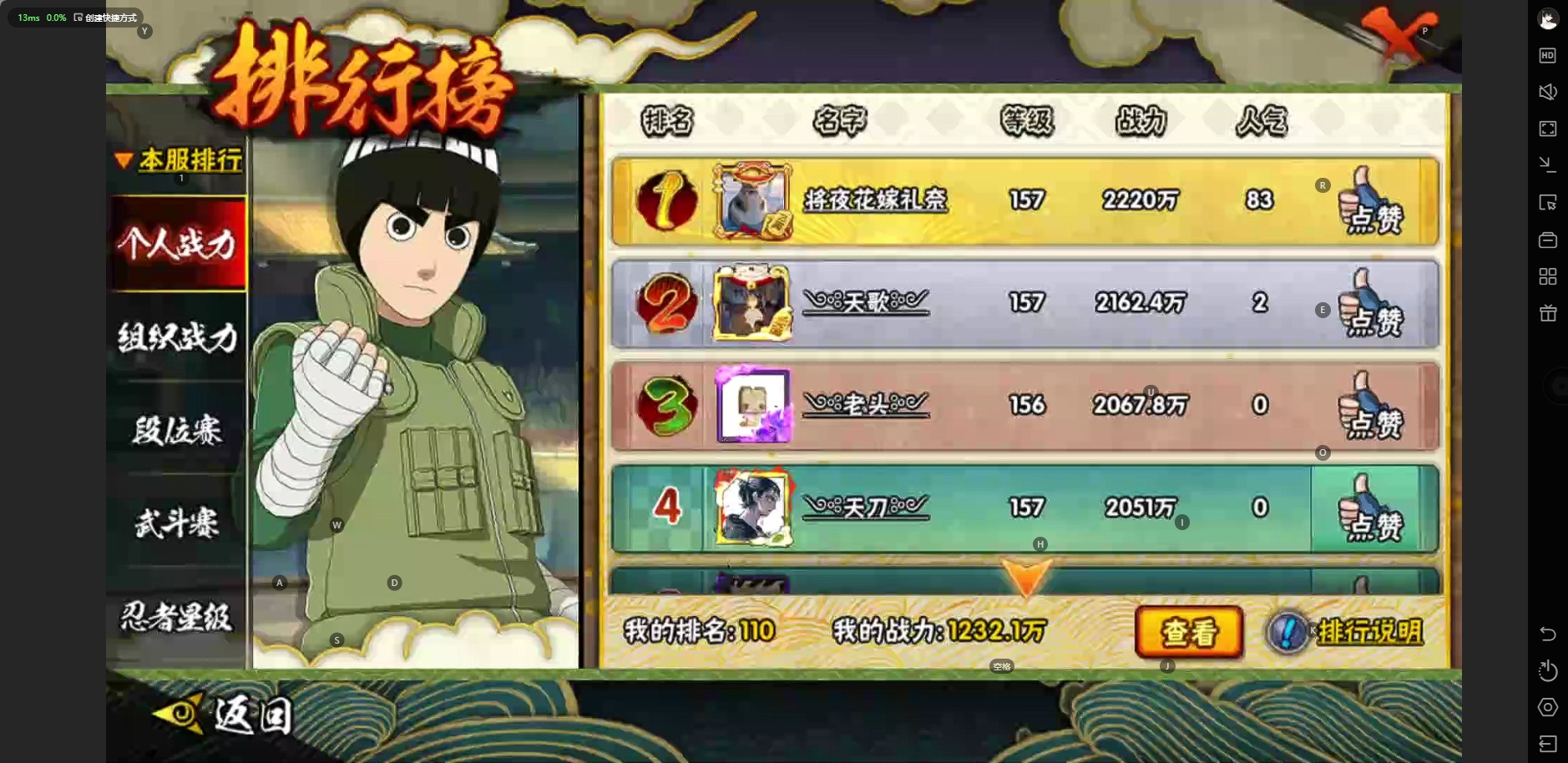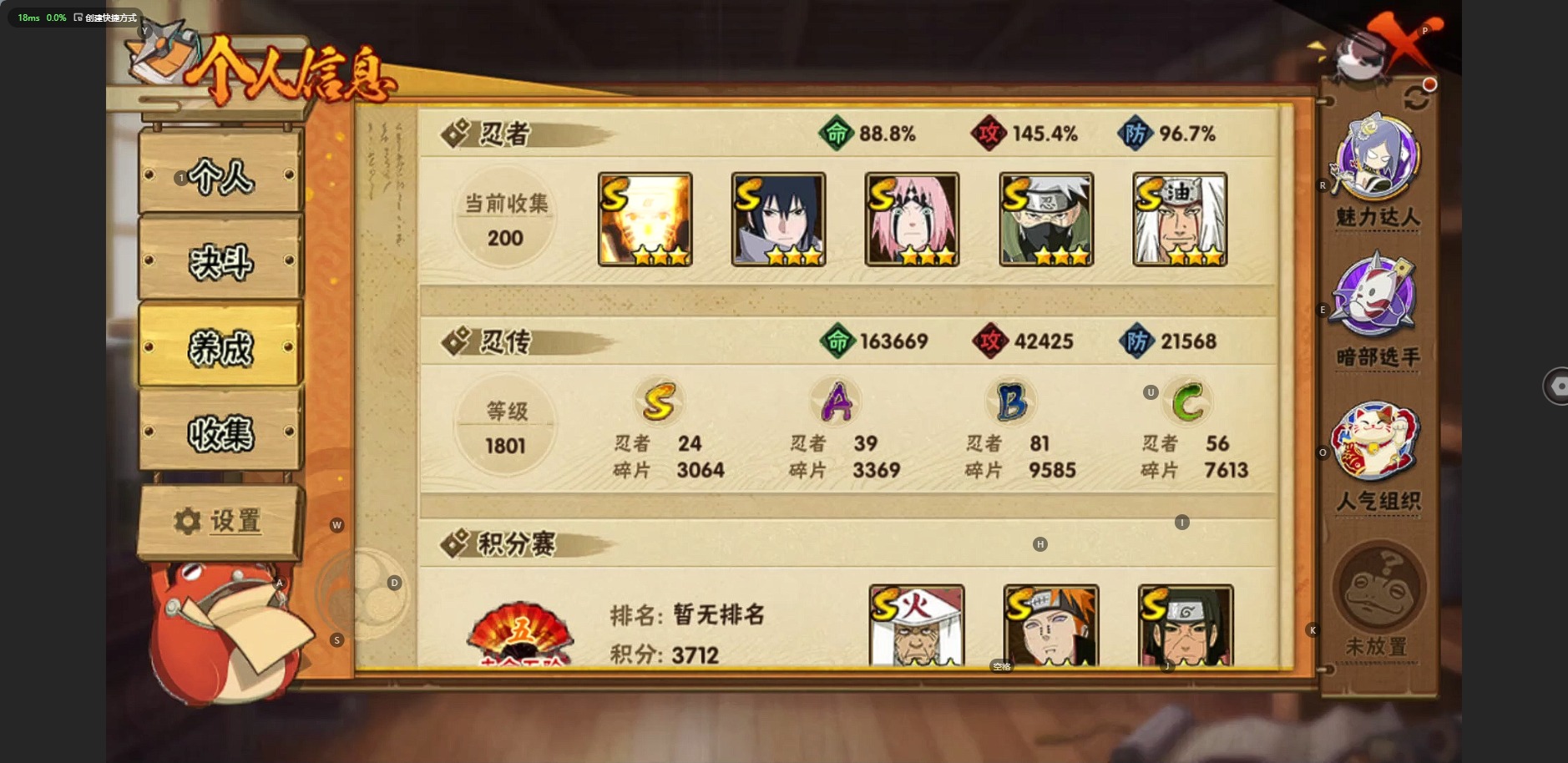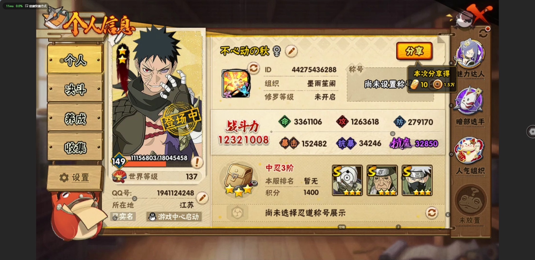 [9723154]v11 24s忍 1232.1w战力 可二次 可修改实名 s级忍者:宇智波止水「须佐能乎」艾「忍界大战」大筒木桃式宇智波斑「秽土转生·解」宇智波佐助「永恒万花筒」神秘面具男 「红夜之刃」春野樱 「忍界大战」大筒木金式「博人传」漩涡鸣人 「九喇嘛连结」迈特凯「死门」宇智波带土 「忍界大战」千手柱间「秽土转生」自来也 「舞之豪杰」旗木卡卡西「须佐能乎」“宇智波斑” 「白面具」猿飞日斩「秽土转生」神秘面具男宇智波鼬 「须佐能乎」佩恩「天道」猿飞日斩波风水门大蛇丸自来也纲手