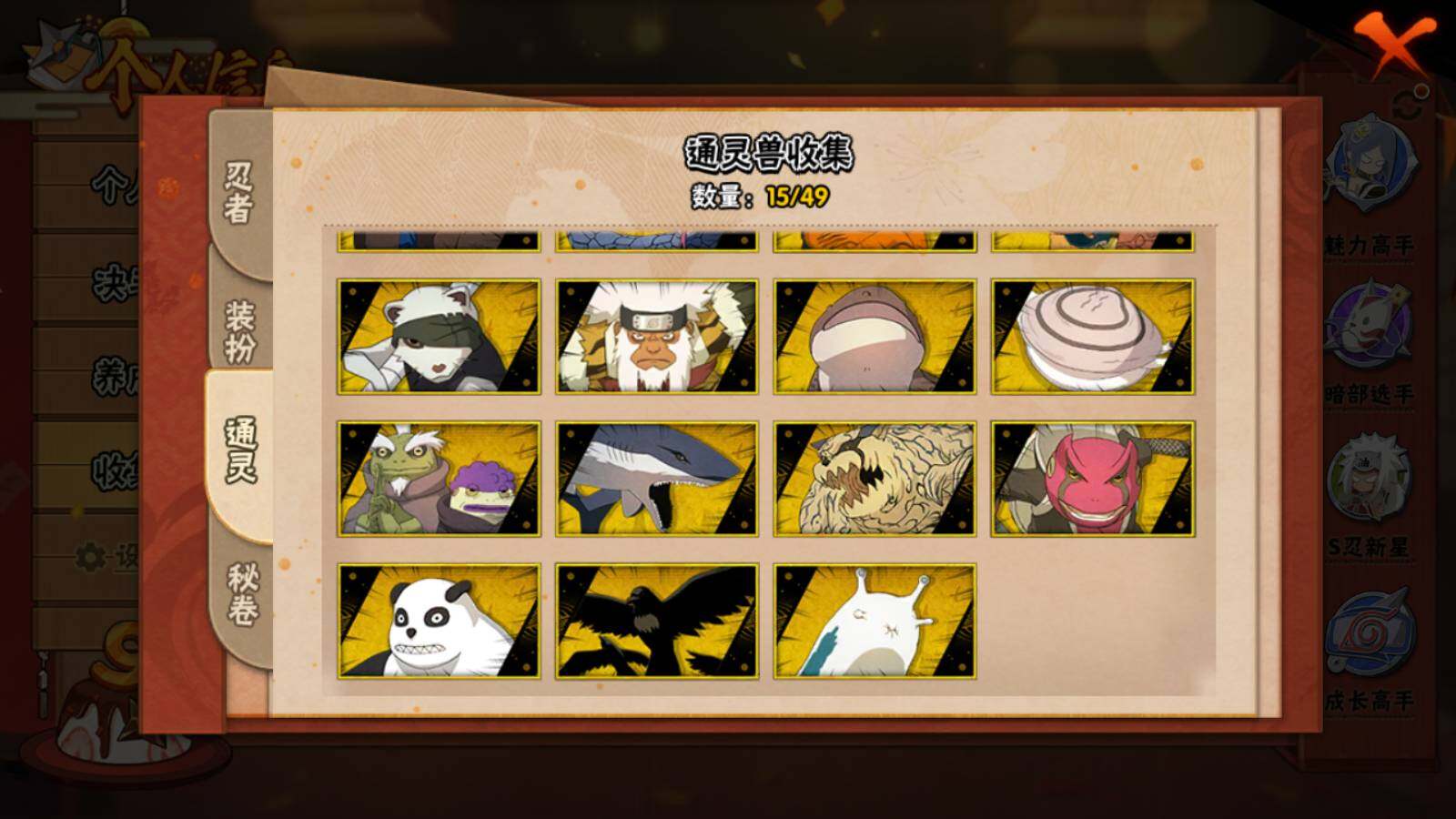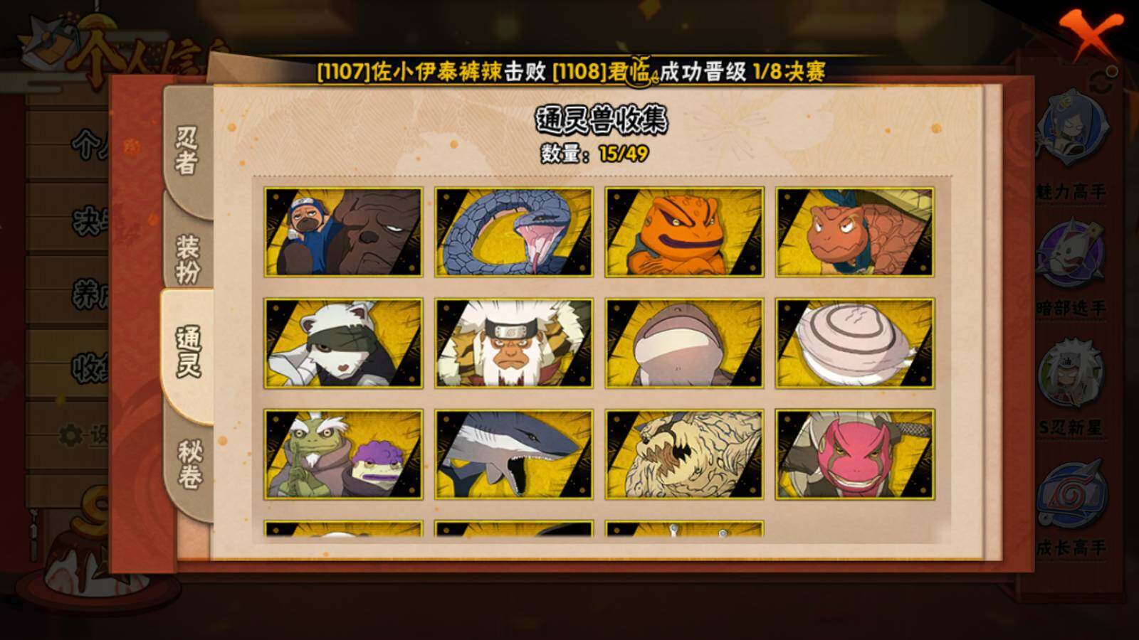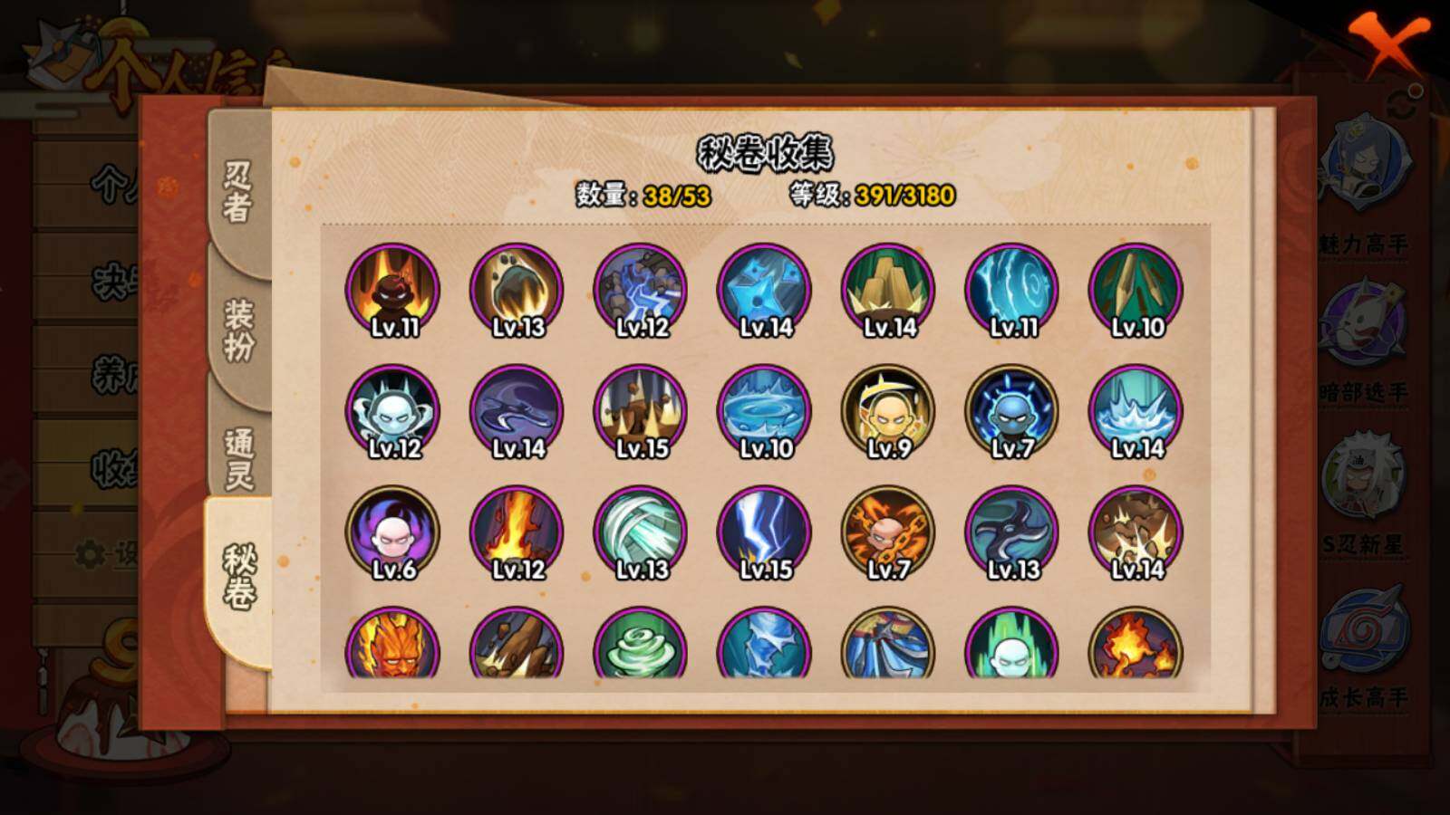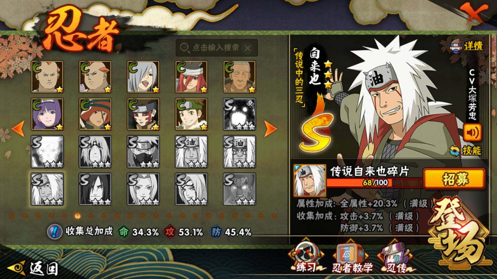 [11977018]v8 442万战力 8s级忍者数-18a级忍者数 自来也68片 卡卡西72片 九喇嘛水门59片 sr4079 【s级忍者】:宇智波带土「忍界大战」3星,艾「忍界大战」3星,宇智波鼬「须佐能乎」3星,宇智波止水「须佐能乎」3星,自来也「舞之豪杰」3星,波风水门3星,佩恩「天道」3星,宇智波佐助「永恒万花筒」3星 【a级忍者】:长门「青年」2星,波风水门「青年」2星,飞段2星,干柿鬼鲛2星,漩涡博人「桃式显现」2星,迈特凯2星,桃地再不斩「秽土转生」2星,我爱罗「疾风传」3星,蝎「绯流琥」2星,猿飞日斩「火影继承人」2星,宇智波佐助「万花筒写轮眼」2星,日向宁次「忍界大战」2星,宇智波带土「漂泊浪客」2星,李洛克「忍界大战」2星,秋道丁次「忍界大战」2星,千代「近松十人卫」2星,不缘2星,宇智波泉奈2星