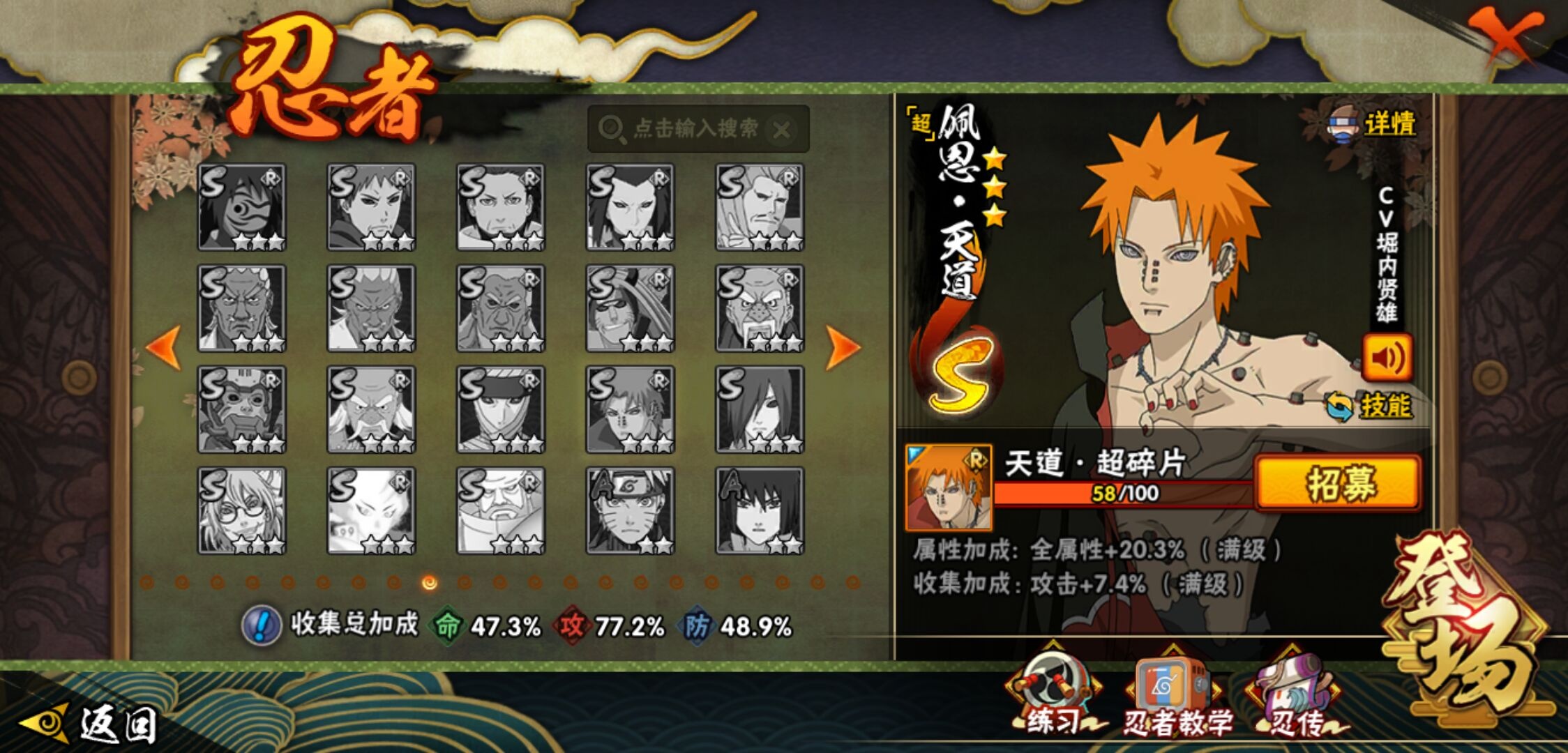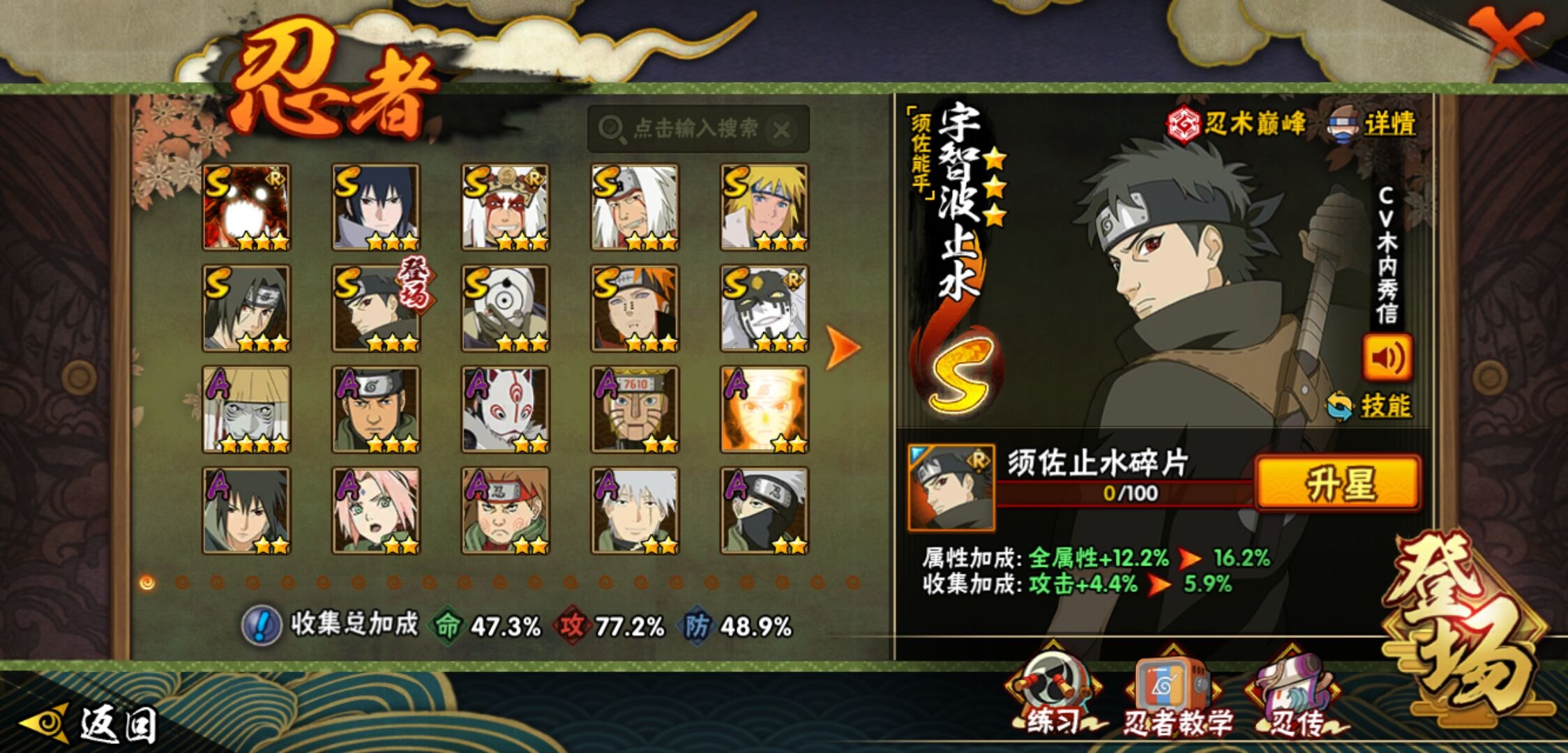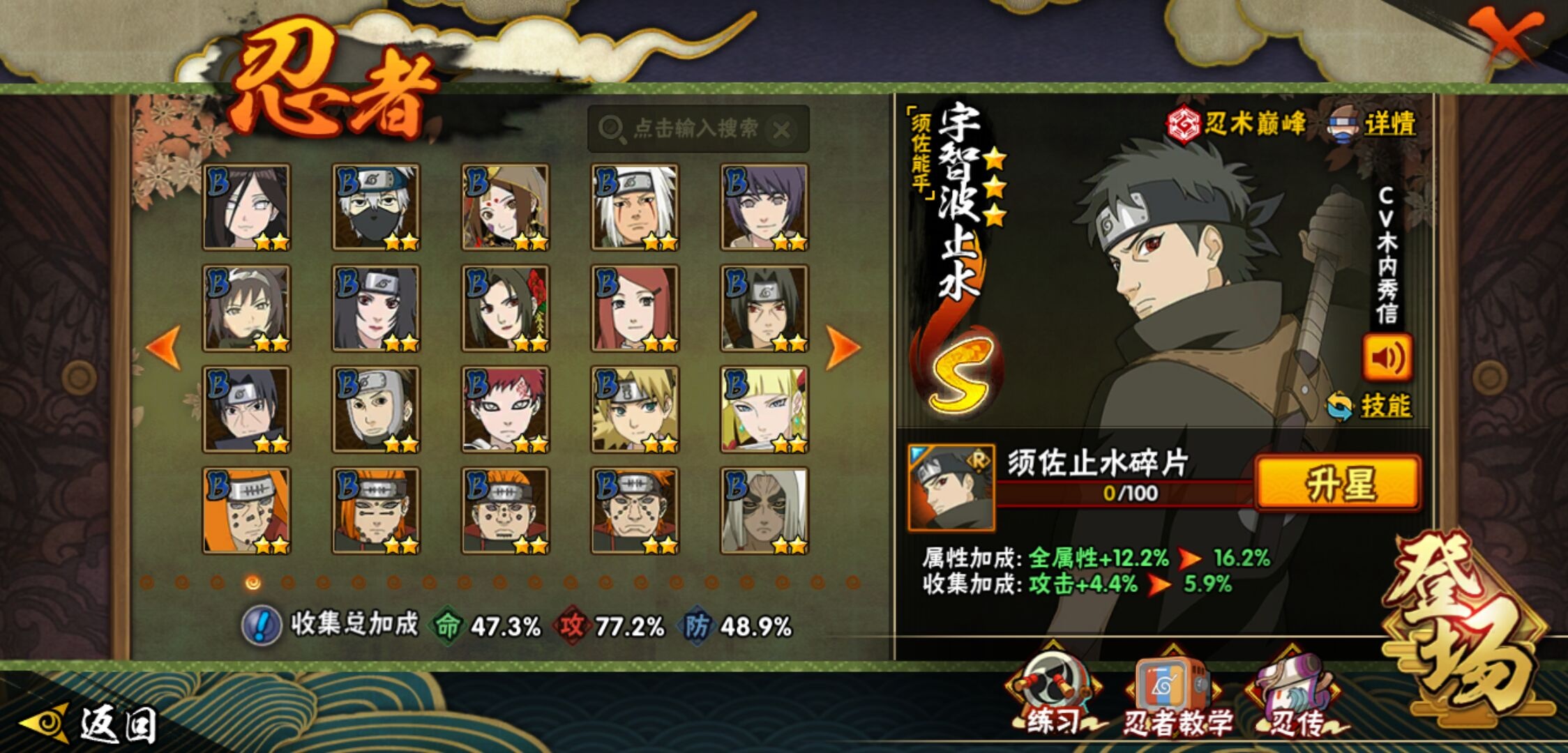 【火影忍者】【lyhy9188】战斗力:532w;段位:上忍1阶;本服排名:1825;vip:v10级;s忍:10个;a忍:28个;通灵兽:14个,s忍:暴怒第六尾漩涡鸣人|永恒万花筒宇智波佐助|舞之豪杰自来也|传说中的三忍自来也|波风水门|须佐能乎宇智波鼬|须佐能乎宇智波止水|白面具宇智波斑|天道佩恩|大筒木桃式__a忍:干柿鬼鲛(普通) 4星|猿飞阿斯玛(普通) 3星|忍者之路神秘面具男|初始形态机械鸣人|九尾查克拉漩涡鸣人 3星|宇智波泉奈|百豪春野樱|忍界大战秋道丁次|幻之真容旗木卡卡西|忍界大战旗木卡卡西|迈特凯(普通)|青春爆炸迈特凯|青年波风水门|疾风传我爱罗|忍界大战我爱罗|近松十人卫千代|秽土转生桃地再不斩|青年长门|角都(普通)|绯流琥蝎|蝎(普通)|夏日限定宇智波鼬|秽土转生迪达拉|飞段(普通)|死司凭血飞段|羁绊神农|六代目水影长十郎|桃式显现漩涡博人__通灵兽:忍犬(普通)|蓝蛇|蛤蟆吉|忍龟|镰鼬|砂之守鹤|猿魔|山椒鱼|蛞蝓(普通)|蜃|蛤蟆仙人|鲛鲨|蛤蟆健|乌鸦(普通)
