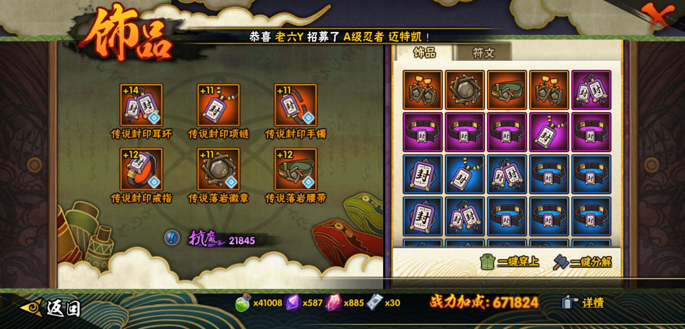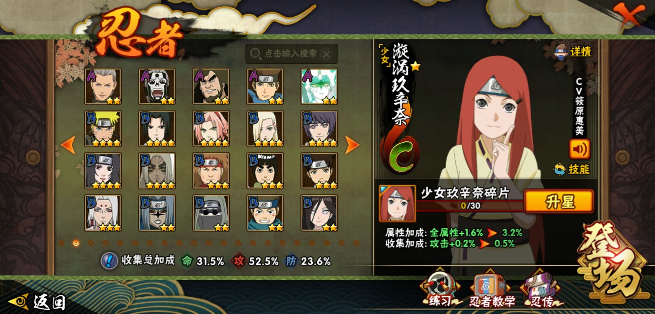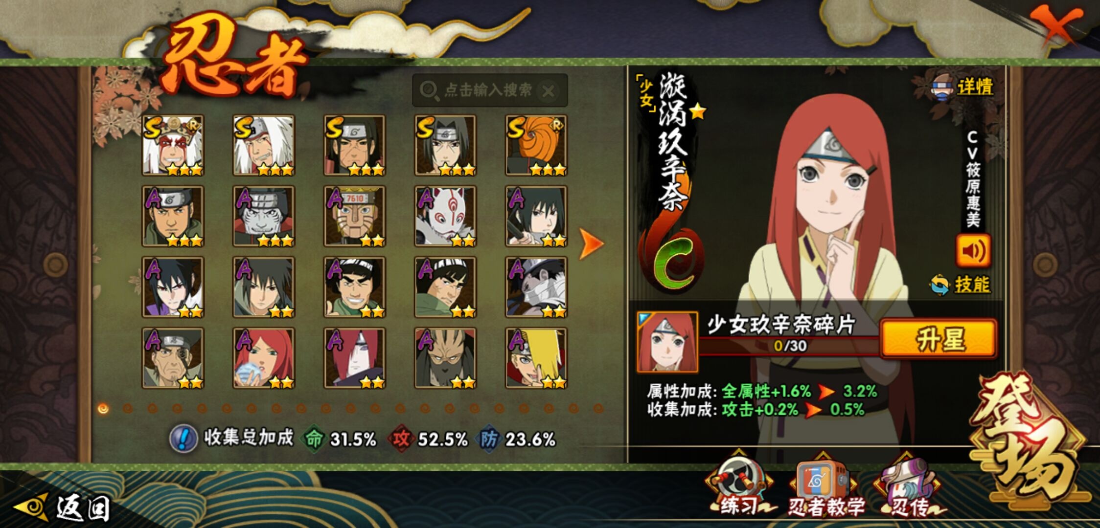 【火影忍者】【lyhy9212】战斗力:383w;段位:暗部2阶;本服排名:115;vip:v8级;s忍:5个;a忍:20个;通灵兽:13个,s忍:舞之豪杰自来也|传说中的三忍自来也|秽土转生千手柱间|须佐能乎宇智波鼬|五影会谈宇智波斑__a忍:猿飞阿斯玛(普通) 3星|干柿鬼鲛(普通) 3星|初始形态机械鸣人|忍者之路神秘面具男|须佐能乎宇智波佐助|侠隐江湖宇智波佐助|宇智波泉奈|迈特凯(普通)|青春爆炸迈特凯|秽土转生桃地再不斩|忍界大战土台|不风|青年长门|绯流琥蝎|迪达拉(普通)|飞段(普通)|死司凭血飞段|羁绊神农|木叶上忍猿飞木叶丸|仙人模式巳月__通灵兽:忍犬(普通)|蓝蛇|蛤蟆吉|忍龟|砂之守鹤|镰鼬|猿魔|山椒鱼|蜃|蛤蟆仙人|鲛鲨|蛤蟆健|乌鸦(普通)