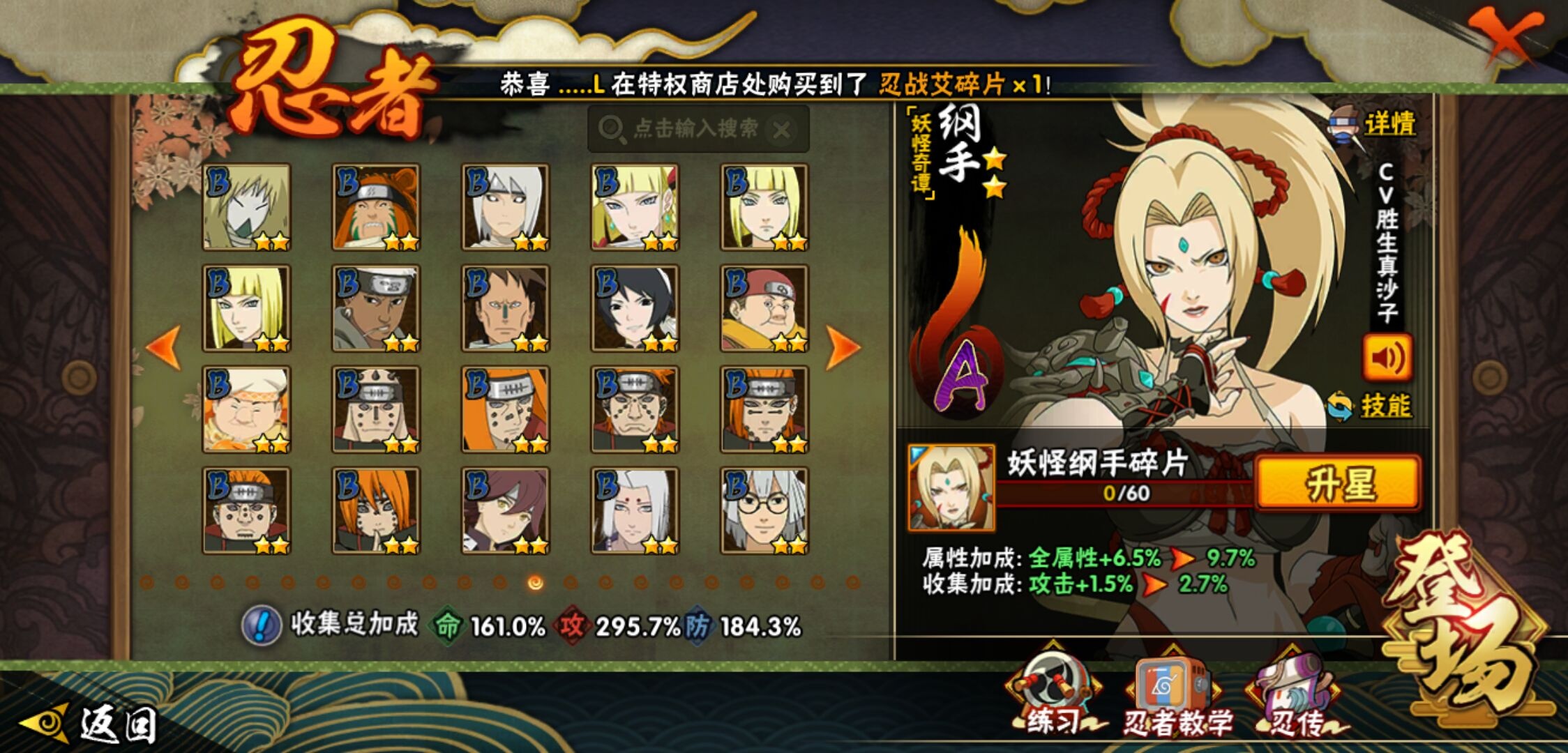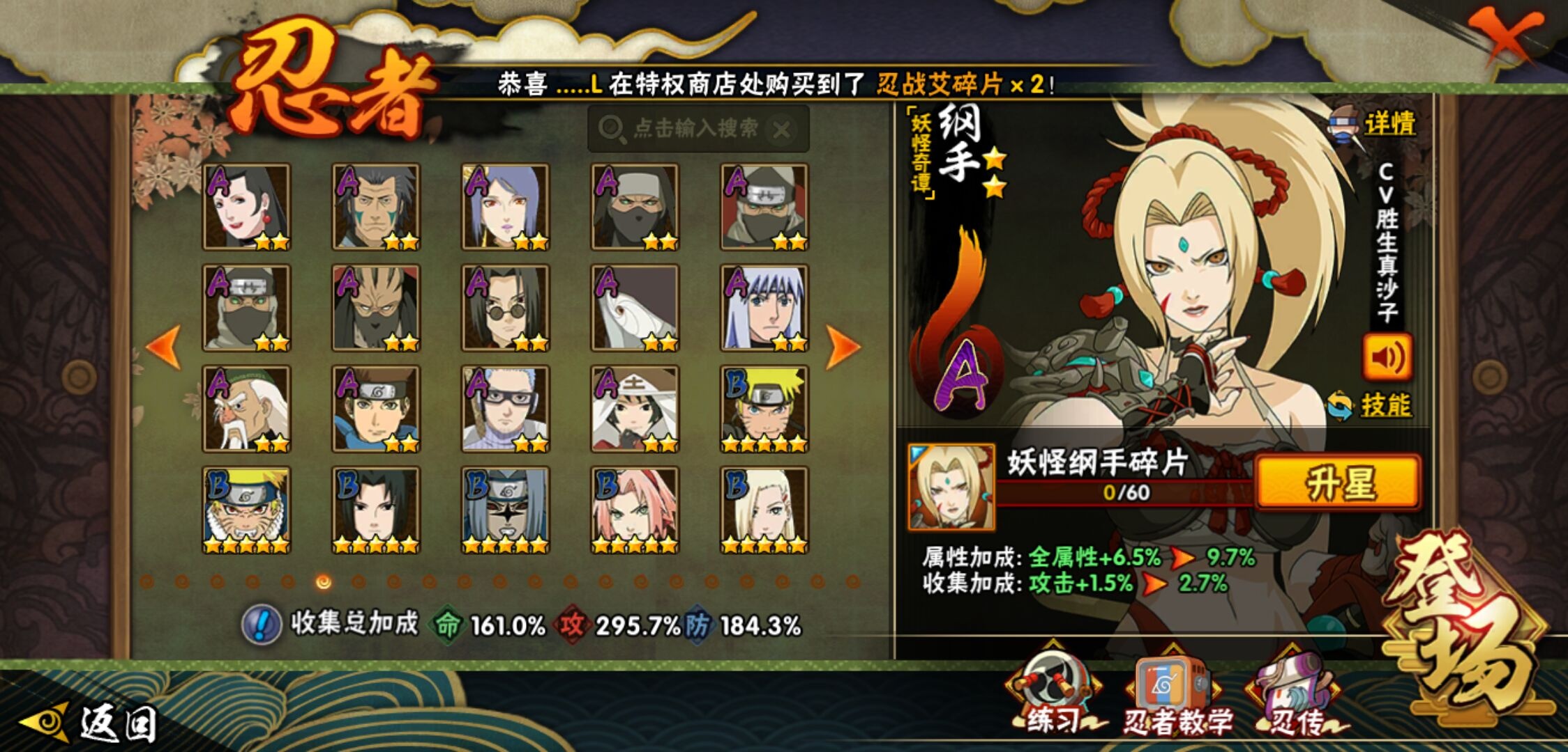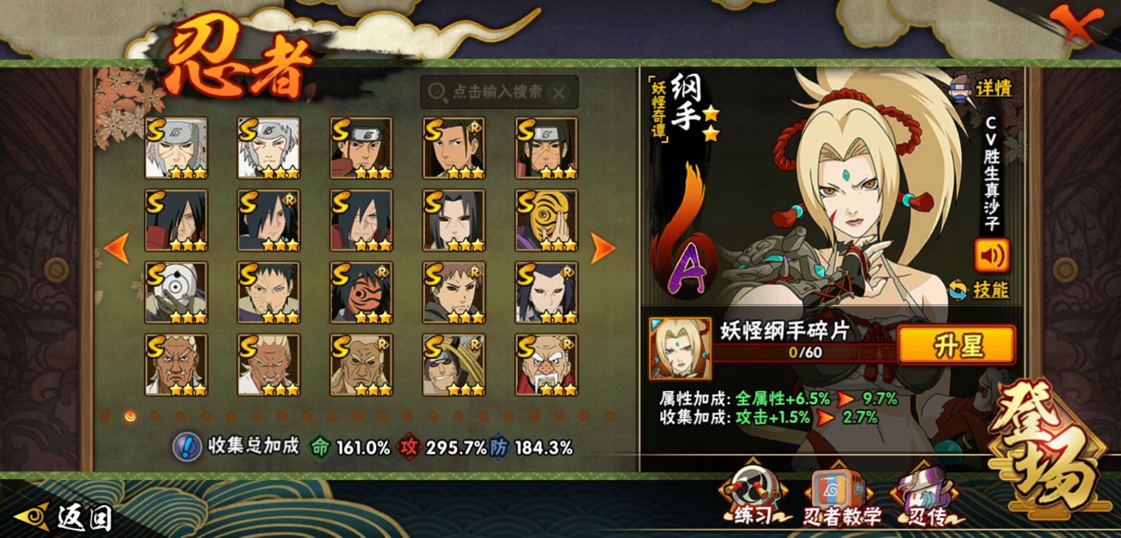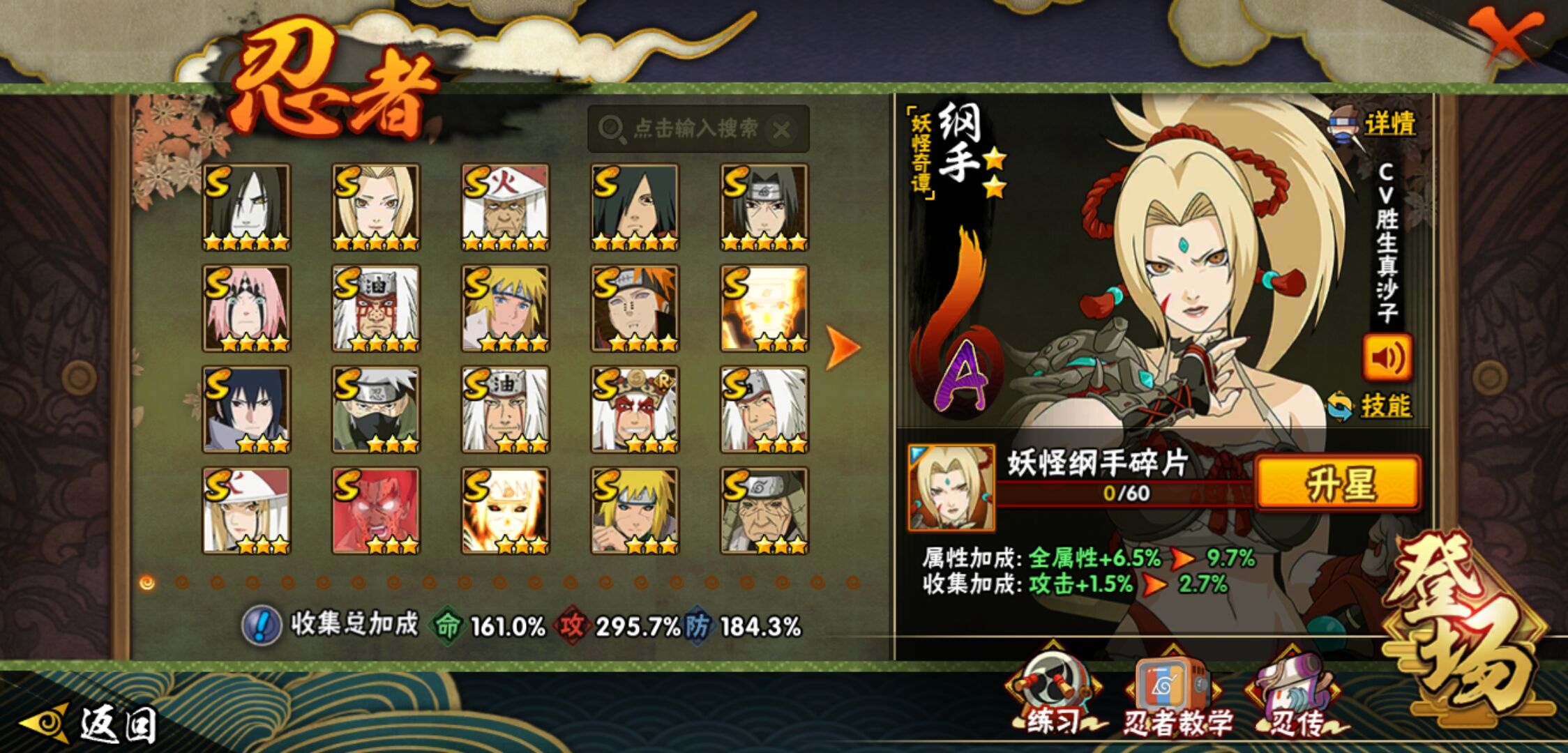 【火影忍者】【lyhy9251】战斗力:2792w;段位:上忍1阶;本服排名:38;vip:v13级;s忍:48个;a忍:66个;通灵兽:27个,s忍:大蛇丸(普通) 5星|纲手(普通) 5星|猿飞日斩(普通) 5星|宇智波斑(普通) 5星|须佐能乎宇智波鼬 5星|忍界大战春野樱 4星|仙人模式自来也 4星|波风水门 4星|天道佩恩 4星|九喇嘛连结漩涡鸣人|永恒万花筒宇智波佐助|须佐能乎旗木卡卡西|自来也(普通)|舞之豪杰自来也|传说中的三忍自来也|百豪纲手|死门迈特凯|九喇嘛连结波风水门|秽土转生波风水门|秽土转生猿飞日斩|秽土转生千手扉间|千手扉间(普通)|千手柱间(普通)|木叶创立千手柱间|秽土转生千手柱间|秽土转生宇智波斑|木叶创立宇智波斑|秽土转生解宇智波斑|秽土转生宇智波鼬|神秘面具男(普通)|白面具宇智波斑|忍界大战宇智波带土|红夜之刃神秘面具男|四代目风影罗砂|秽土转生三代目风影|四代目雷影艾|忍界大战艾|三代目雷影艾|秽土转生金角银角|三代目土影大野木|二代目土影无|秽土转生半藏|忍界大战大野木|超佩恩天道|秽土转生长门|仙人模式药师兜|大筒木桃式|博人传大筒木金式__a忍:迈特凯(普通) 5星|猿飞阿斯玛(普通) 5星|疾风传我爱罗 5星|蝎(普通) 5星|干柿鬼鲛(普通) 5星|飞段(普通) 5星|死司凭血飞段 5星|宇智波止水(普通) 4星|五代目水影照美冥 4星|仙人模式漩涡鸣人 3星|九尾查克拉漩涡鸣人 3星|须佐能乎宇智波佐助 3星|百豪春野樱 3星|忍界大战日向宁次 3星|忍界大战李洛克 3星|青年波风水门 3星|秽土转生桃地再不斩 3星|青年艾 3星|忍界大战土台 3星|青年长门 3星|小南(普通) 3星|晓大蛇丸 3星|宇智波鼬(普通) 3星|迪达拉(普通) 3星|秽土转生迪达拉 3星|桃式显现漩涡博人 3星|五代目雷影达鲁伊 3星|万花筒写轮眼宇智波佐助|疾风传咒印宇智波佐助|宇智波泉奈|忍界大战秋道丁次|最终章日向雏田|幻之真容旗木卡卡西|万花筒写轮眼旗木卡卡西|青春爆炸迈特凯|秽土转生猿飞阿斯玛|七夕限定猿飞阿斯玛|地陆|志村团藏|火影继承人猿飞日斩|新春限定波风水门|忍界大战我爱罗|近松十人卫千代|夏日泳装照美冥|侠隐江湖照美冥|漂泊武士桃地再不斩|桃地再不斩|忍界大战奇拉比|奇拉比(普通)|妖怪奇谭纲手|半蛇斗篷药师兜|不风|不缘|不动|新春限定小南|晓创生角都|角都(普通)|地怨虞角都|绯流琥蝎|新春限定宇智波鼬|暴怒宇智波带土|加藤断|侠隐江湖大野木|木叶上忍猿飞木叶丸|六代目水影长十郎|四代目土影黑土__通灵兽:忍犬(普通)|蓝蛇|蛤蟆吉|忍龟|镰鼬|猿魔|山椒鱼|蜃|蛞蝓(普通)|蛤蟆仙人|鲛鲨|蛤蟆健|乌鸦(普通)|蛤蟆龙|蛤蟆广|梦貘|鹰|蜘蛛|熊猫|二尾又旅|螃蟹|砂之守鹤|四尾孙悟空|怒鬼无臂|怒鬼(普通)|怒鬼爪|辛牙