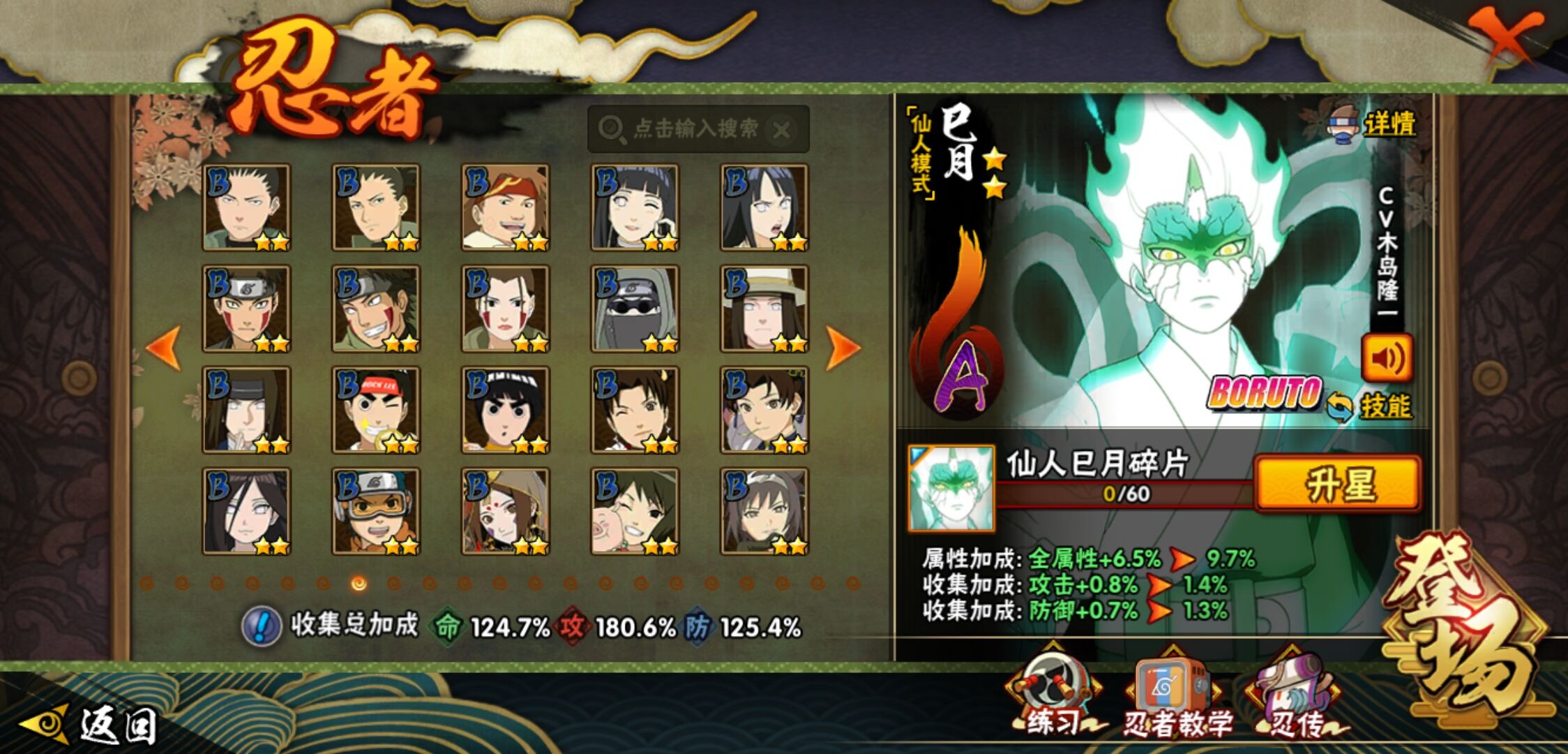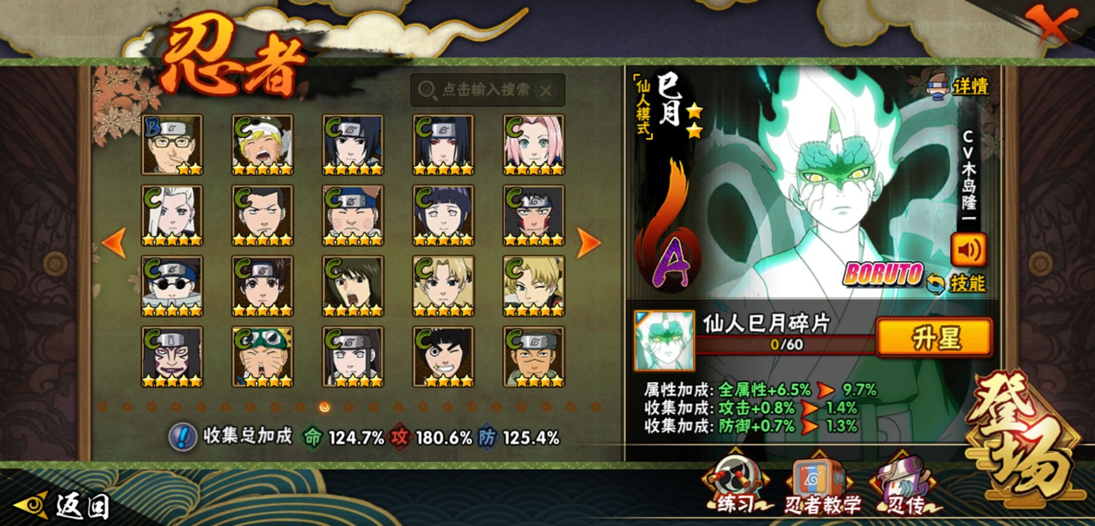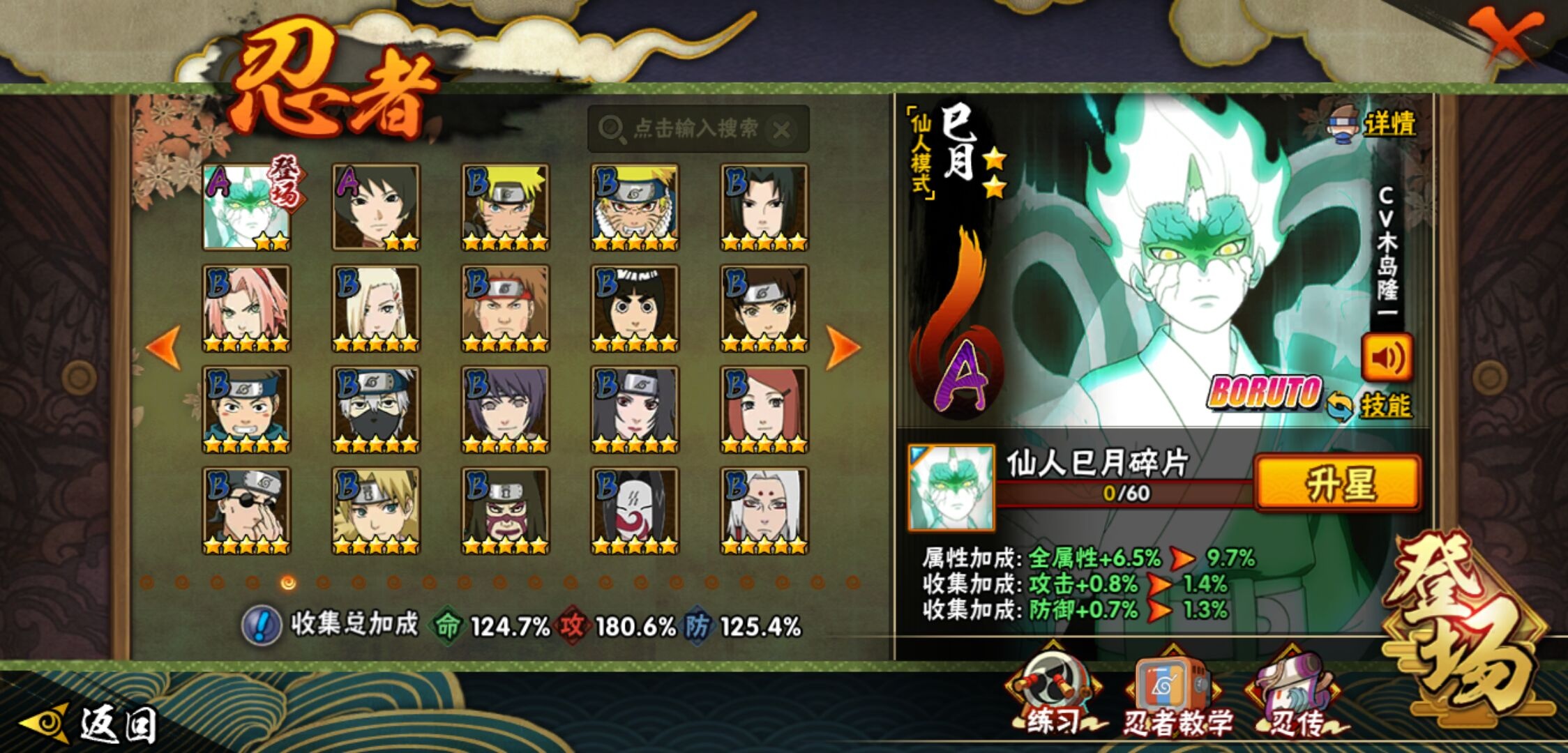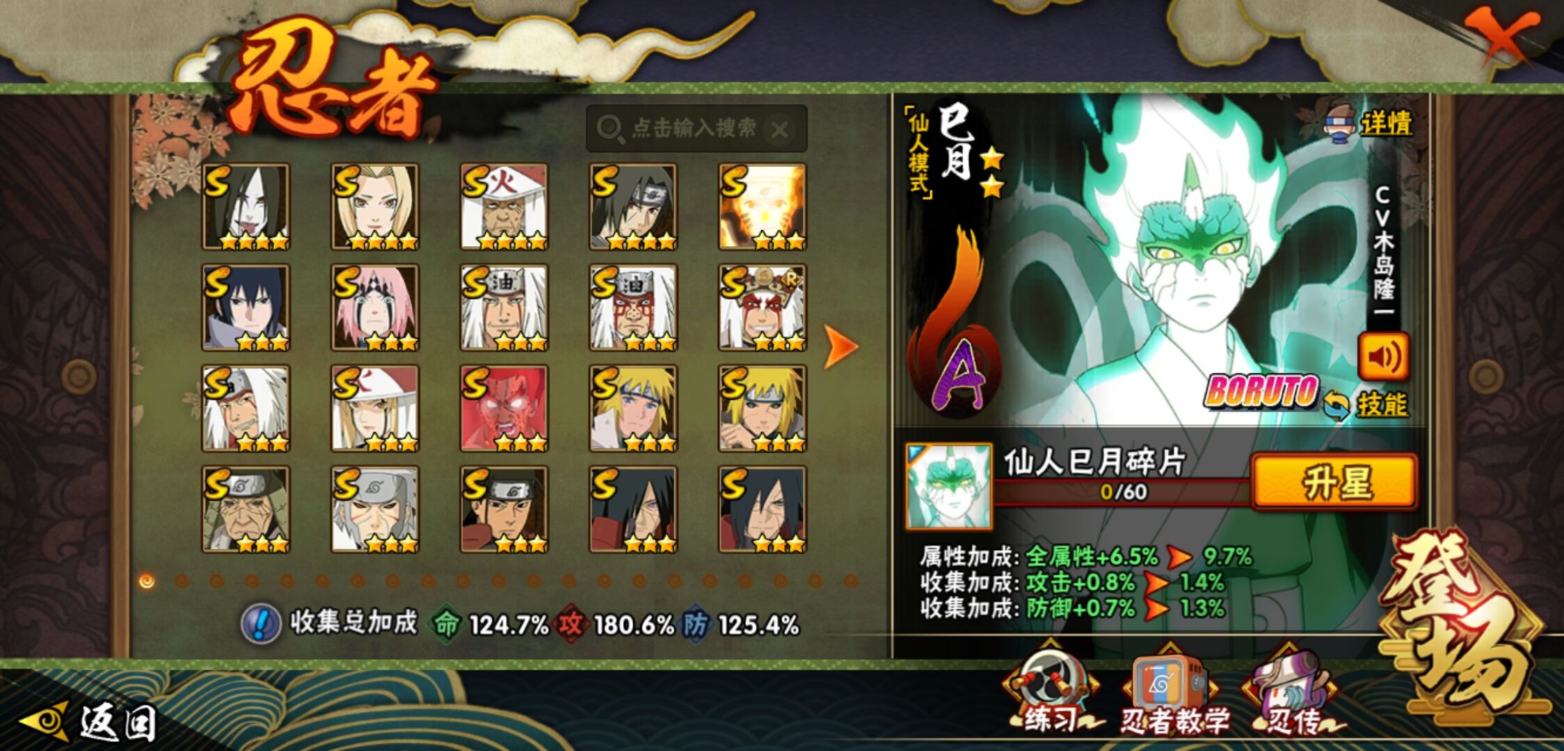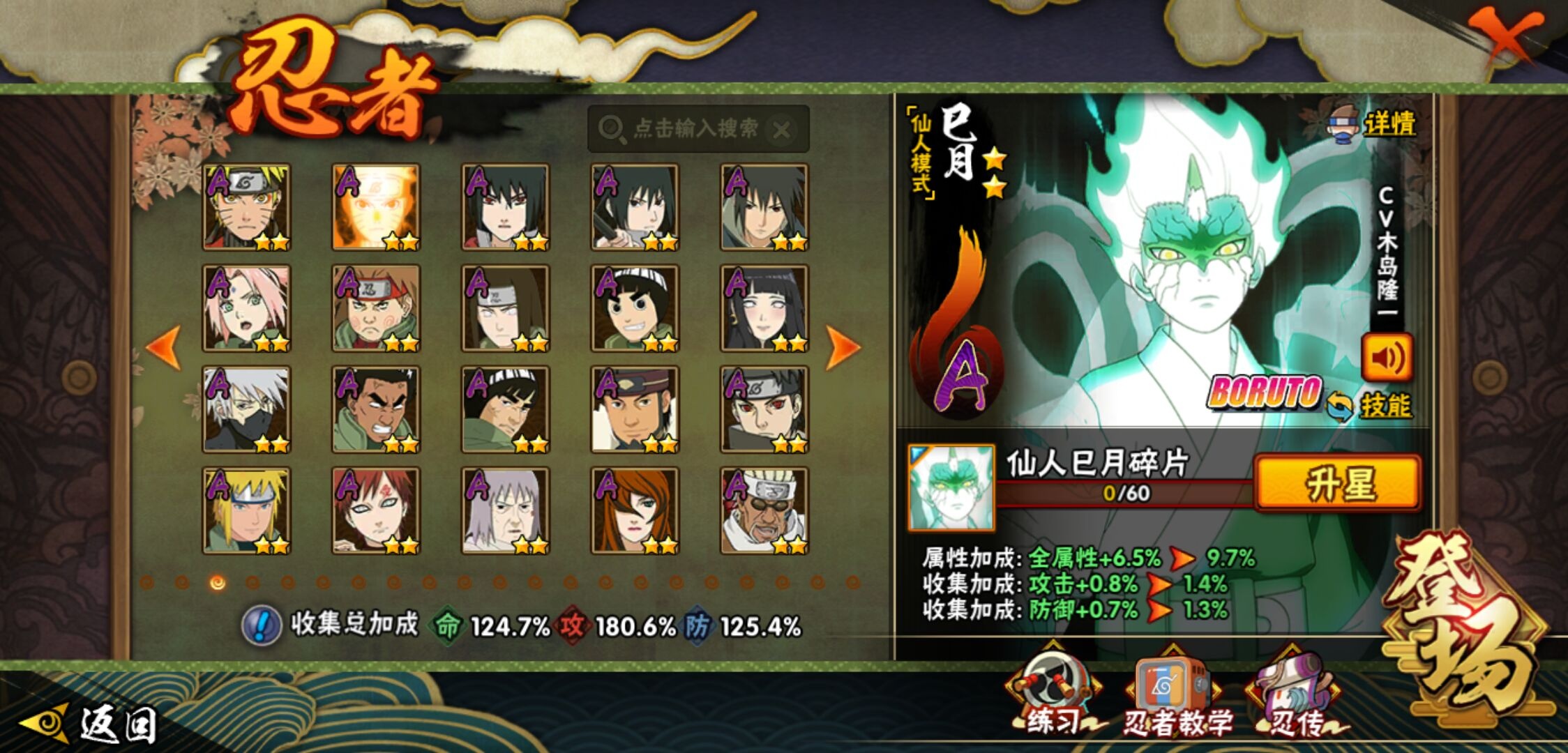 【火影忍者】【lyhy9269】战斗力:1265w;段位:暗部2阶;本服排名:217;vip:v12级;s忍:32个;a忍:50个;通灵兽:20个,s忍:大蛇丸(普通) 4星|纲手(普通) 4星|猿飞日斩(普通) 4星|须佐能乎宇智波鼬 4星|九喇嘛连结漩涡鸣人|永恒万花筒宇智波佐助|忍界大战春野樱|自来也(普通)|仙人模式自来也|舞之豪杰自来也|传说中的三忍自来也|百豪纲手|死门迈特凯|波风水门|秽土转生波风水门|秽土转生猿飞日斩|秽土转生千手扉间|千手柱间(普通)|秽土转生宇智波斑|秽土转生解宇智波斑|秽土转生宇智波鼬|神秘面具男(普通)|白面具宇智波斑|忍界大战宇智波带土|四代目雷影艾|忍界大战艾|三代目雷影艾|二代目土影无|秽土转生半藏|天道佩恩|超佩恩天道|仙人模式药师兜__a忍:迈特凯(普通) 5星|猿飞阿斯玛(普通) 5星|蝎(普通) 5星|干柿鬼鲛(普通) 5星|疾风传我爱罗 4星|飞段(普通) 4星|死司凭血飞段 4星|初始形态机械鸣人|仙人模式漩涡鸣人|九尾查克拉漩涡鸣人|万花筒写轮眼宇智波佐助|须佐能乎宇智波佐助|宇智波泉奈|百豪春野樱|忍界大战秋道丁次|忍界大战日向宁次|忍界大战李洛克|最终章日向雏田|万花筒写轮眼旗木卡卡西|惊门迈特凯|青春爆炸迈特凯|七夕限定猿飞阿斯玛|宇智波止水(普通)|青年波风水门|忍界大战我爱罗|近松十人卫千代|五代目水影照美冥|奇拉比(普通)|忍界大战奇拉比|青年艾|半蛇斗篷药师兜|不缘|青年长门|小南(普通)|夏日泳装小南|角都(普通)|地怨虞角都|晓大蛇丸|绯流琥蝎|宇智波鼬(普通)|新春限定宇智波鼬|迪达拉(普通)|秽土转生迪达拉|暴怒宇智波带土|木叶上忍猿飞木叶丸|六代目水影长十郎|五代目雷影达鲁伊|桃式显现漩涡博人|仙人模式巳月|四代目土影黑土__通灵兽:忍犬(普通)|蓝蛇|蛤蟆吉|忍龟|镰鼬|猿魔|山椒鱼|蜃|蛞蝓(普通)|蛤蟆仙人|鲛鲨|蛤蟆健|乌鸦(普通)|蛤蟆龙|砂之守鹤|蛤蟆广|怒鬼无臂|梦貘|鹰|蜘蛛