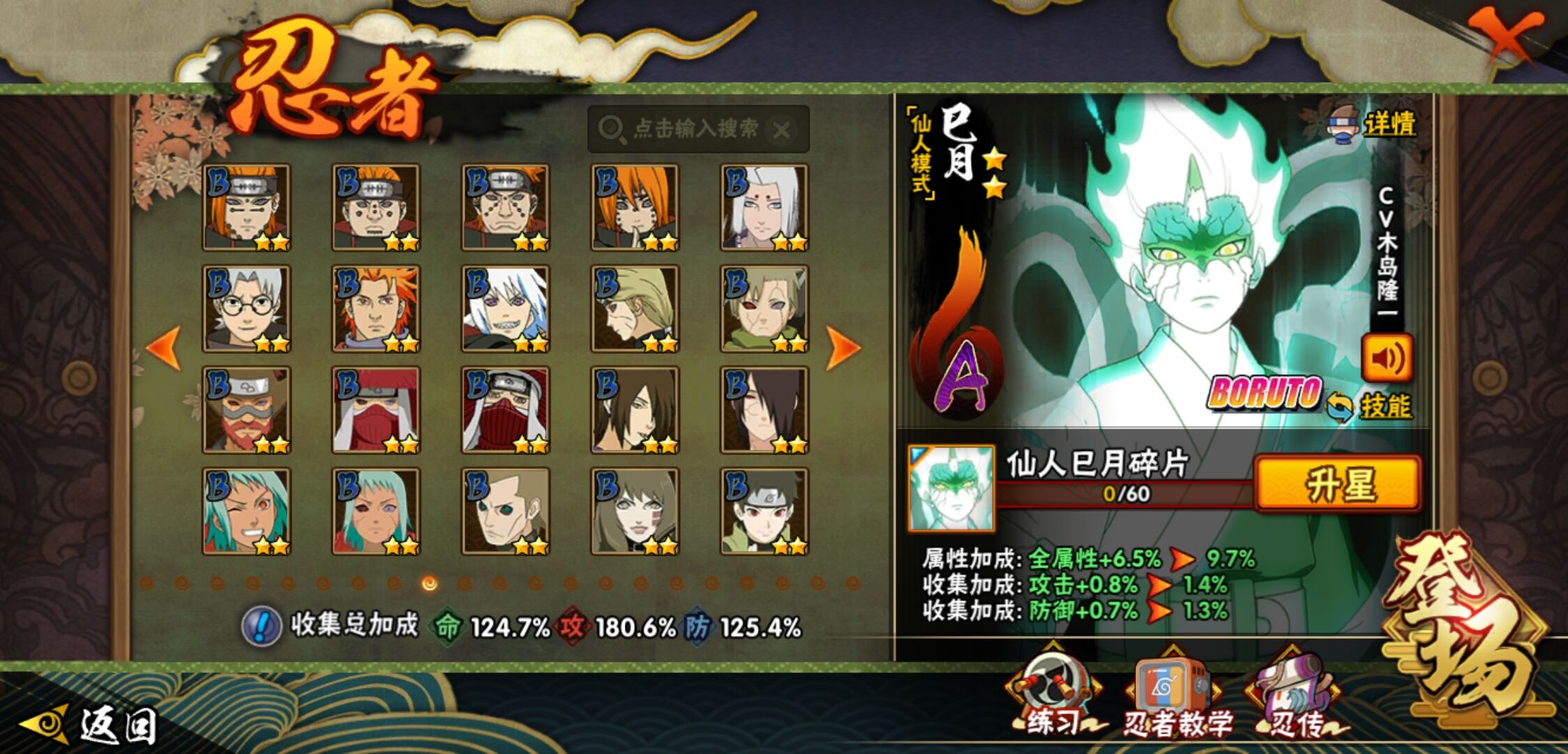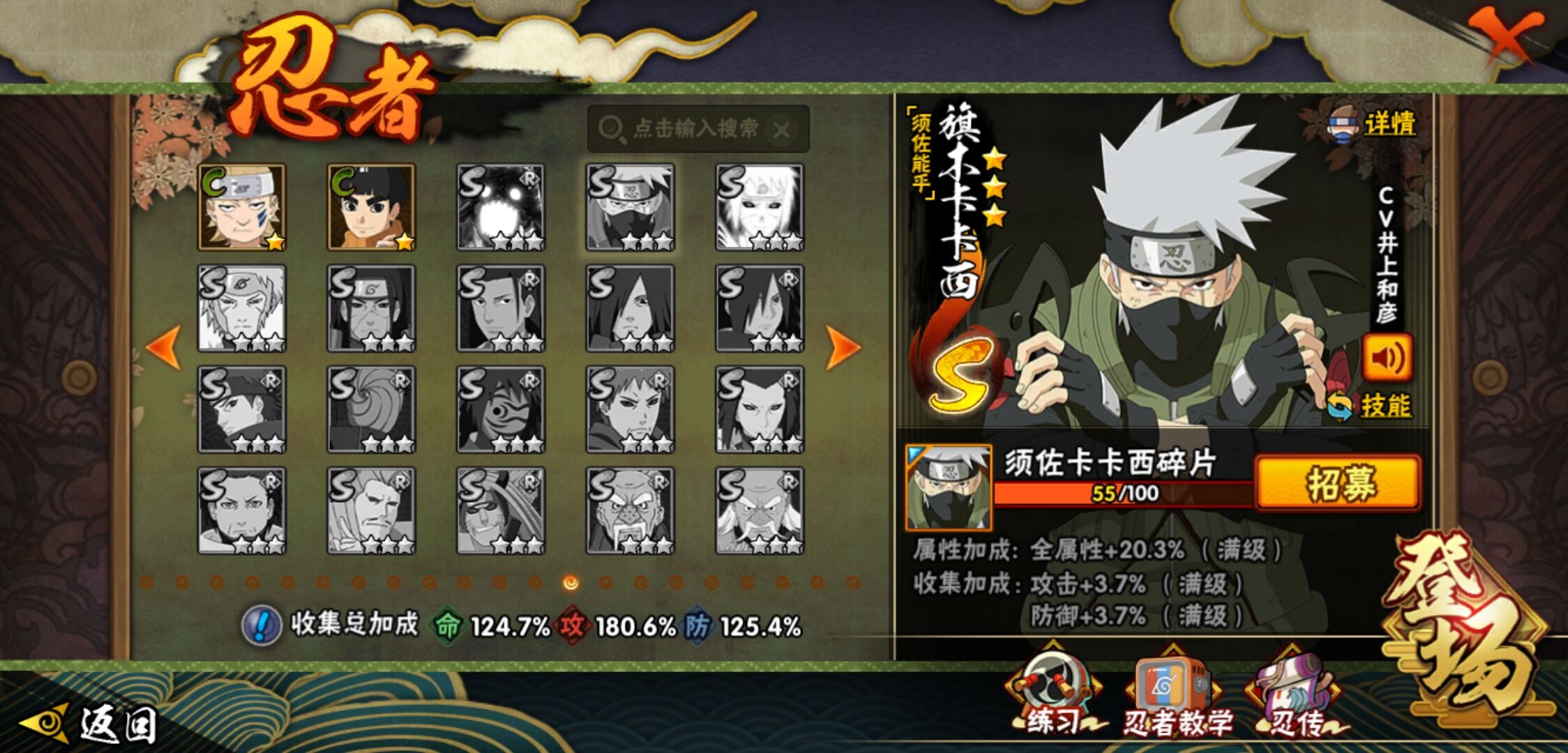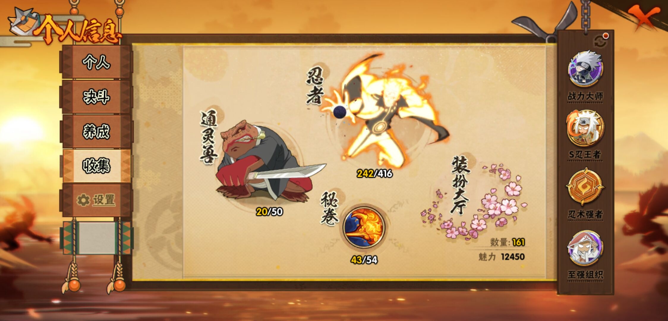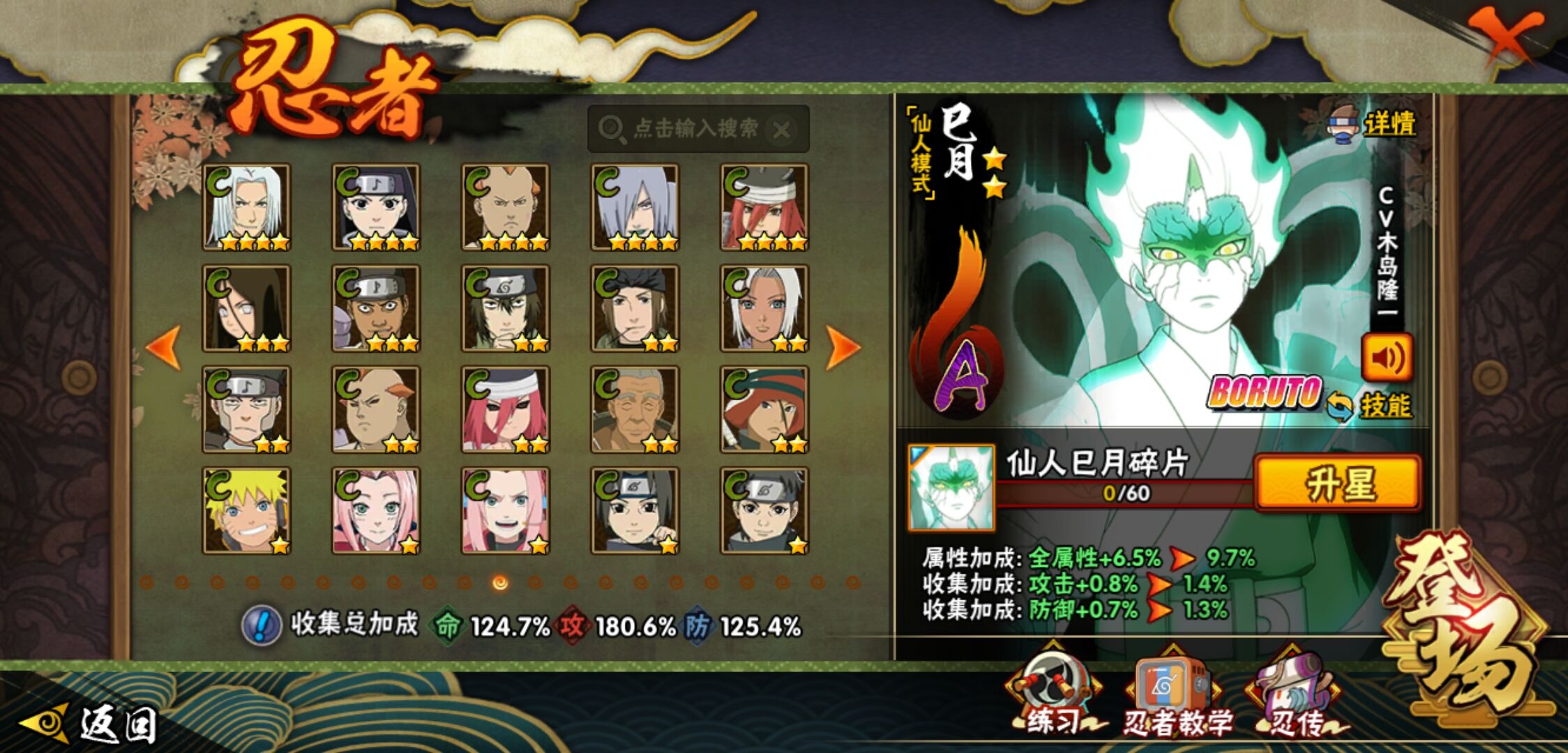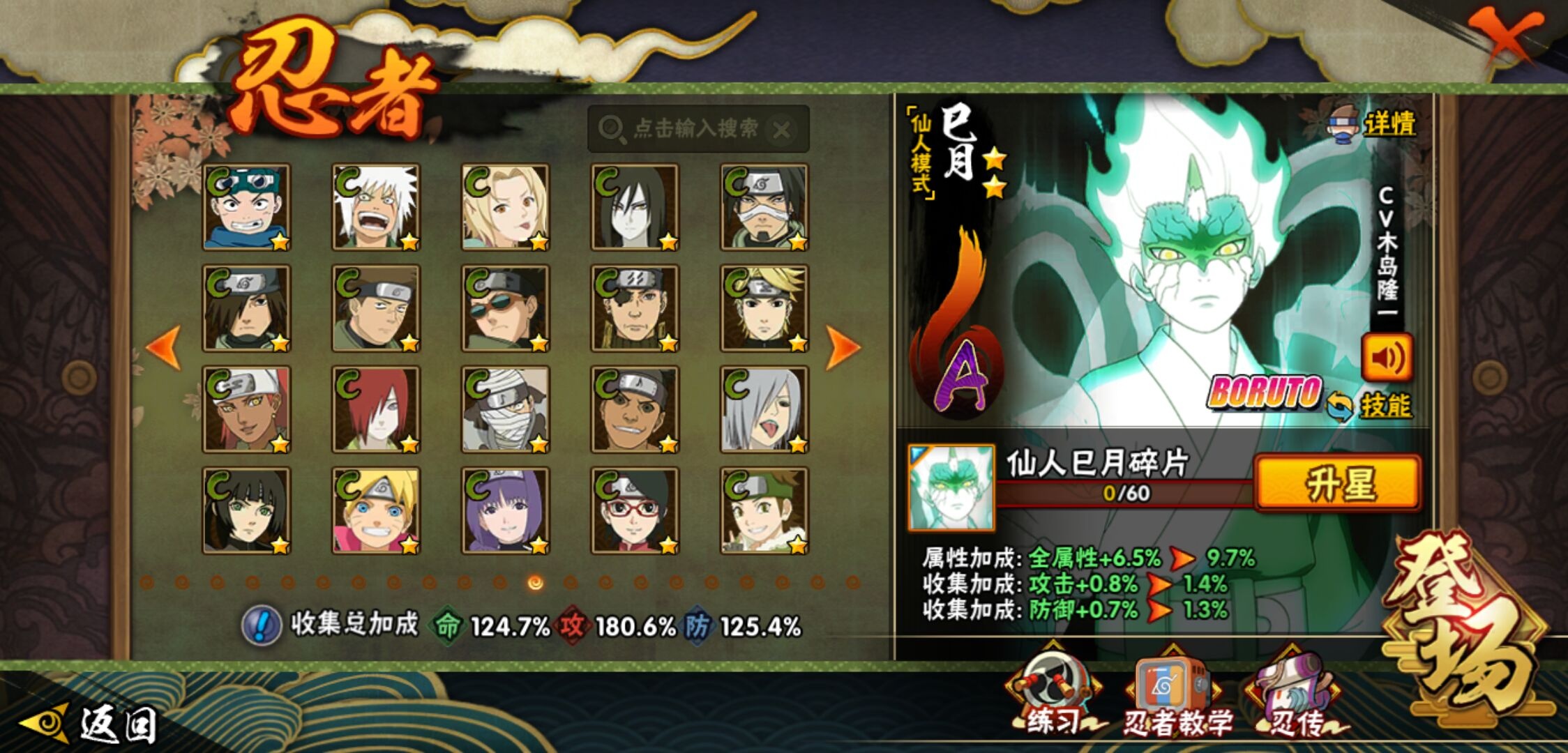 【火影忍者】【lyhy9269】战斗力:1265w;段位:暗部2阶;本服排名:217;vip:v12级;s忍:32个;a忍:50个;通灵兽:20个,s忍:大蛇丸(普通) 4星|纲手(普通) 4星|猿飞日斩(普通) 4星|须佐能乎宇智波鼬 4星|九喇嘛连结漩涡鸣人|永恒万花筒宇智波佐助|忍界大战春野樱|自来也(普通)|仙人模式自来也|舞之豪杰自来也|传说中的三忍自来也|百豪纲手|死门迈特凯|波风水门|秽土转生波风水门|秽土转生猿飞日斩|秽土转生千手扉间|千手柱间(普通)|秽土转生宇智波斑|秽土转生解宇智波斑|秽土转生宇智波鼬|神秘面具男(普通)|白面具宇智波斑|忍界大战宇智波带土|四代目雷影艾|忍界大战艾|三代目雷影艾|二代目土影无|秽土转生半藏|天道佩恩|超佩恩天道|仙人模式药师兜__a忍:迈特凯(普通) 5星|猿飞阿斯玛(普通) 5星|蝎(普通) 5星|干柿鬼鲛(普通) 5星|疾风传我爱罗 4星|飞段(普通) 4星|死司凭血飞段 4星|初始形态机械鸣人|仙人模式漩涡鸣人|九尾查克拉漩涡鸣人|万花筒写轮眼宇智波佐助|须佐能乎宇智波佐助|宇智波泉奈|百豪春野樱|忍界大战秋道丁次|忍界大战日向宁次|忍界大战李洛克|最终章日向雏田|万花筒写轮眼旗木卡卡西|惊门迈特凯|青春爆炸迈特凯|七夕限定猿飞阿斯玛|宇智波止水(普通)|青年波风水门|忍界大战我爱罗|近松十人卫千代|五代目水影照美冥|奇拉比(普通)|忍界大战奇拉比|青年艾|半蛇斗篷药师兜|不缘|青年长门|小南(普通)|夏日泳装小南|角都(普通)|地怨虞角都|晓大蛇丸|绯流琥蝎|宇智波鼬(普通)|新春限定宇智波鼬|迪达拉(普通)|秽土转生迪达拉|暴怒宇智波带土|木叶上忍猿飞木叶丸|六代目水影长十郎|五代目雷影达鲁伊|桃式显现漩涡博人|仙人模式巳月|四代目土影黑土__通灵兽:忍犬(普通)|蓝蛇|蛤蟆吉|忍龟|镰鼬|猿魔|山椒鱼|蜃|蛞蝓(普通)|蛤蟆仙人|鲛鲨|蛤蟆健|乌鸦(普通)|蛤蟆龙|砂之守鹤|蛤蟆广|怒鬼无臂|梦貘|鹰|蜘蛛