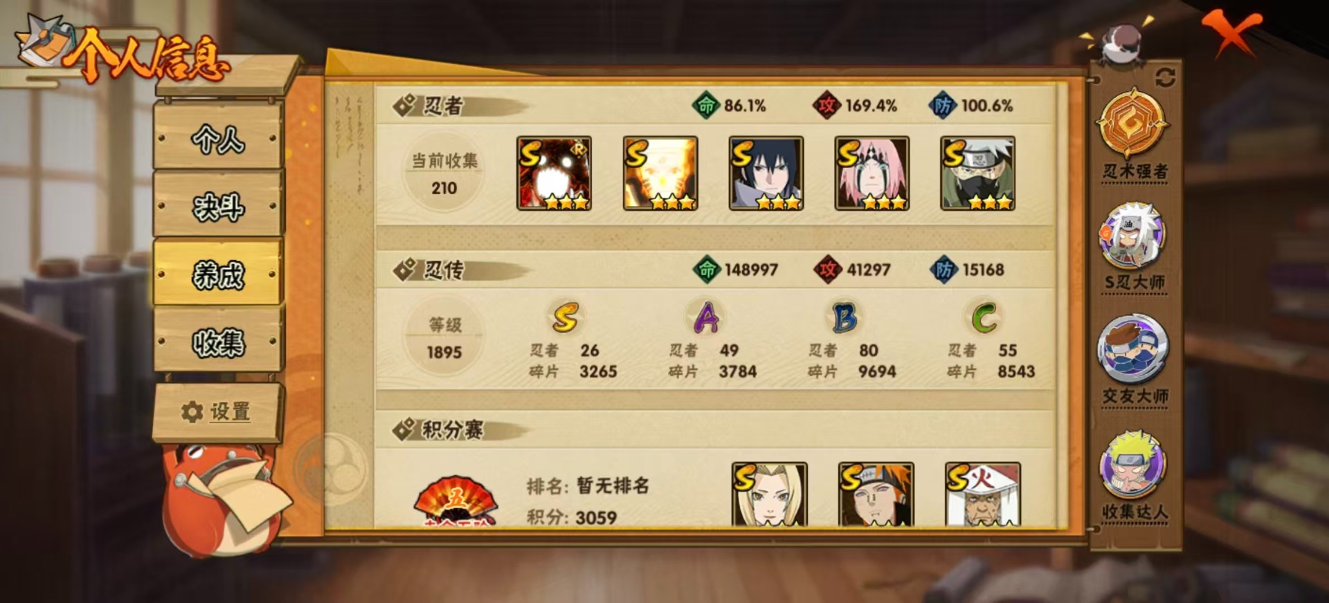 [14582229]v11 26s忍 49a忍 21通灵 1178.8w战力 可二次 可修改实名 【s级忍者】:艾「忍界大战」宇智波斑「秽土转生·解」千手柱间·木叶创立宇智波佐助「永恒万花筒」神秘面具男 「红夜之刃」春野樱 「忍界大战」漩涡鸣人 「九喇嘛连结」宇智波带土 「忍界大战」