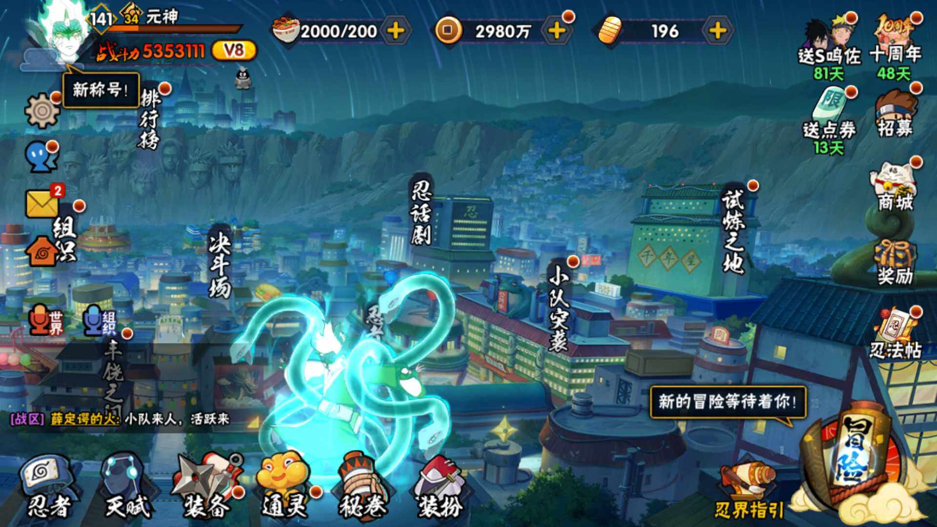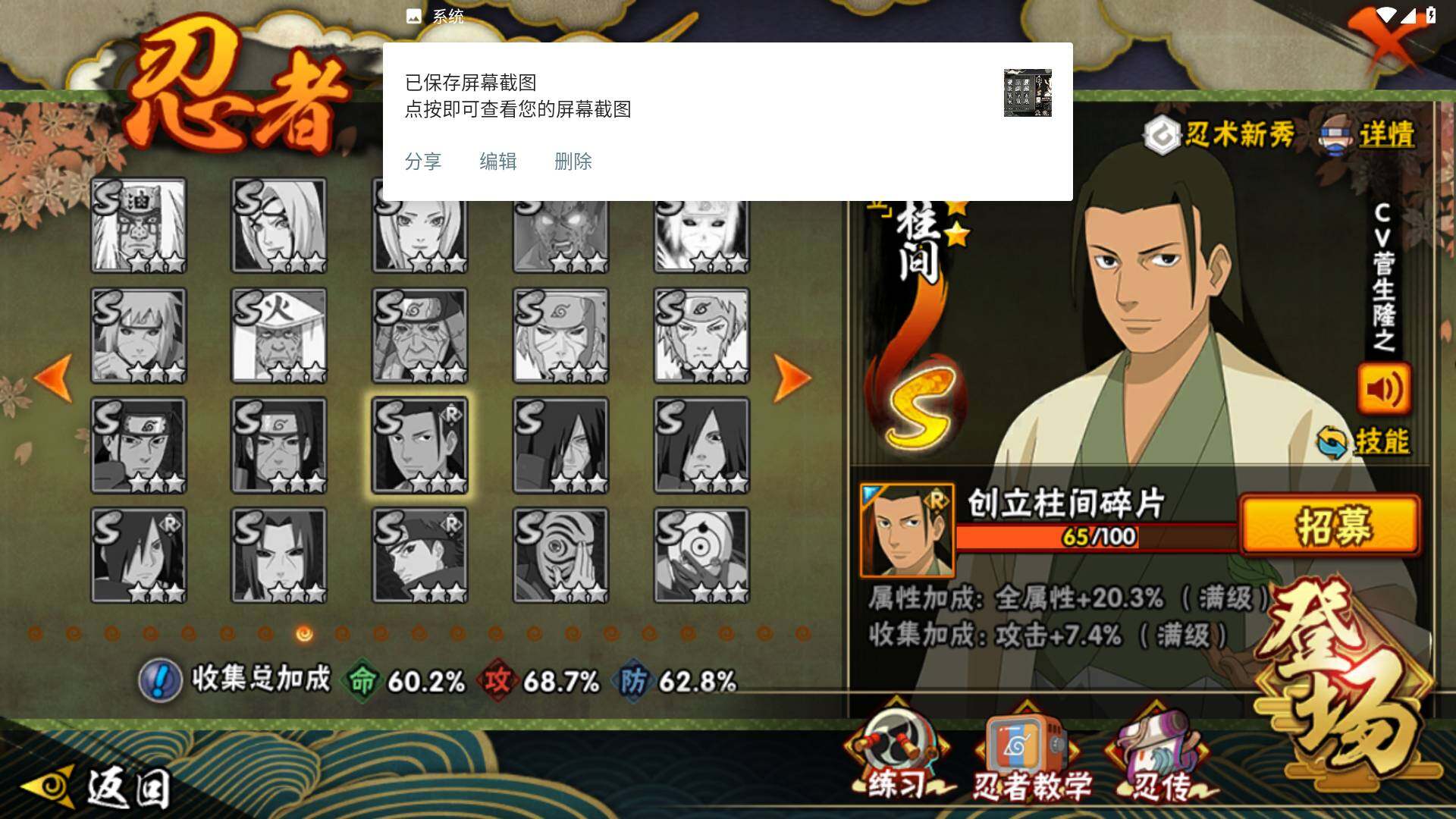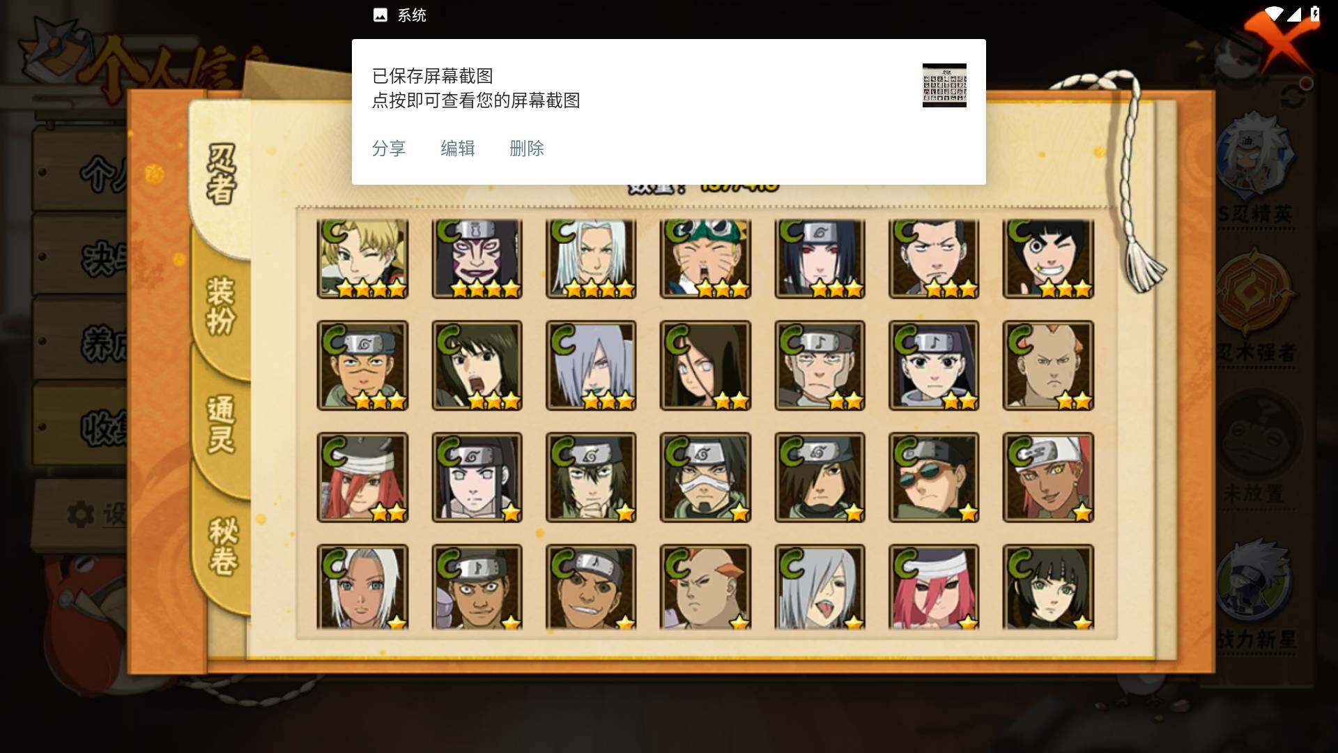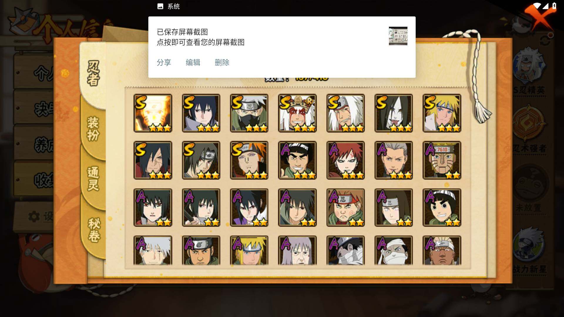 [14585353]v8 10s 28a 535万战力 限时点券2000 九水门96片 创立柱间65片 面具男75片 zp3305 【s级忍者】:宇智波斑「秽土转生·解」3星,宇智波鼬「须佐能乎」3星,旗木卡卡西「须佐能乎」3星,自来也「舞之豪杰」3星,大蛇丸3星,自来也「传说中的三忍」3星,波风水门3星,漩涡鸣人「九喇嘛连结」3星,佩恩「天道」3星,宇智波佐助「永恒万花筒」3星 【a级忍者】:艾「青年」2星,长门「青年」2星,波风水门「青年」2星,迪达拉「秽土转生」2星,飞段3星,飞段「死司凭血」2星,干柿鬼鲛2星,漩涡博人「桃式显现」2星,机械鸣人「初始形态」2星,迈特凯3星,旗木卡卡西「幻之真容」2星,桃地再不斩「漂泊武士」2星,桃地再不斩「秽土转生」2星,我爱罗「疾风传」3星,蝎2星,猿飞阿斯玛2星,宇智波佐助「须佐能乎」2星,宇智波佐助「万花筒写轮眼」2星,宇智波佐助「侠隐江湖」2星,日向宁次「忍界大战」2星,长十郎「六代目水影」2星,李洛克「忍界大战」2星,秋道丁次「忍界大战」2星,千代「近松十人卫」2星,神农「羁绊」2星,宇智波泉奈2星,大野木「侠隐江湖」2星,巳月「仙人模式」2星