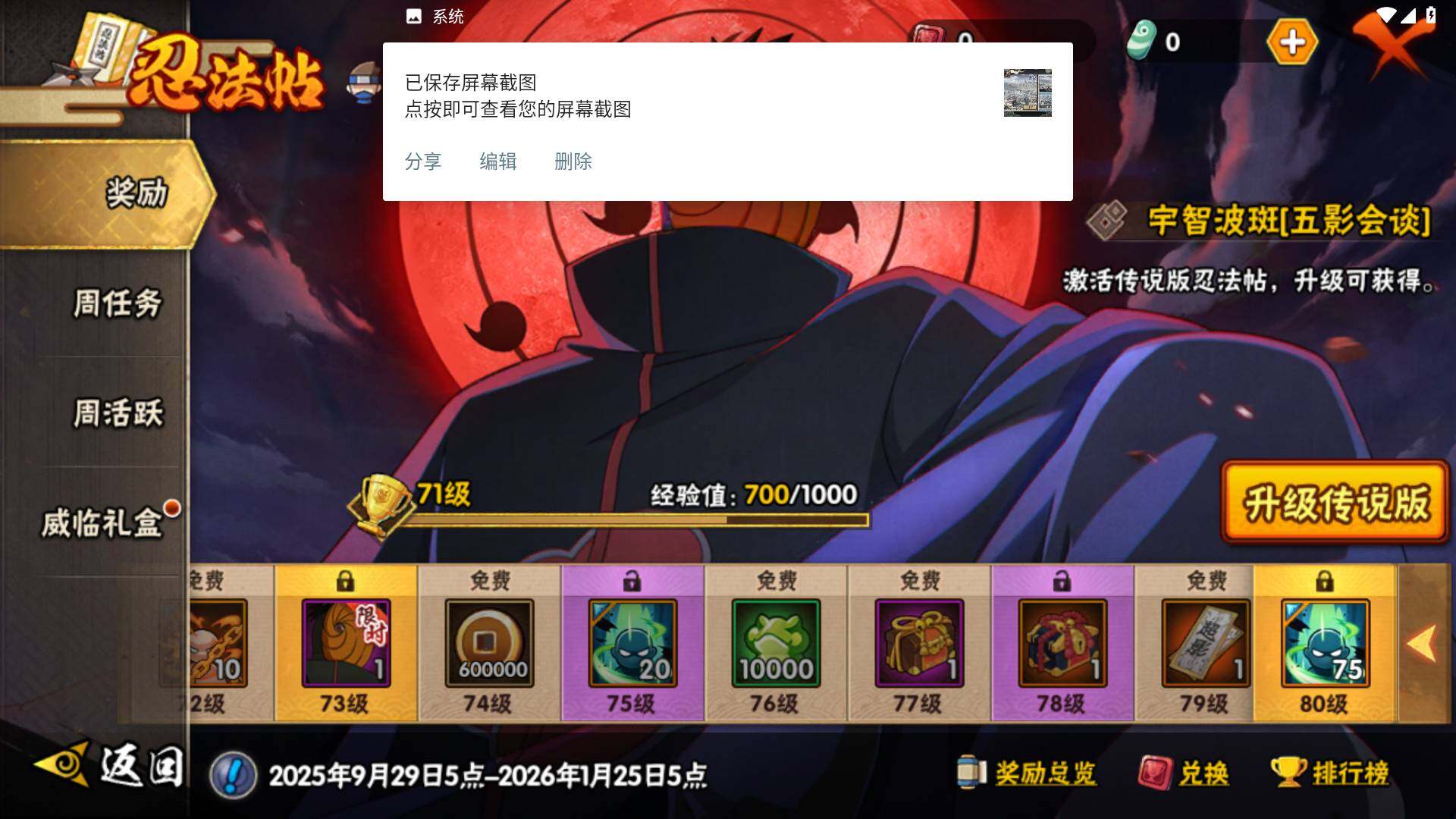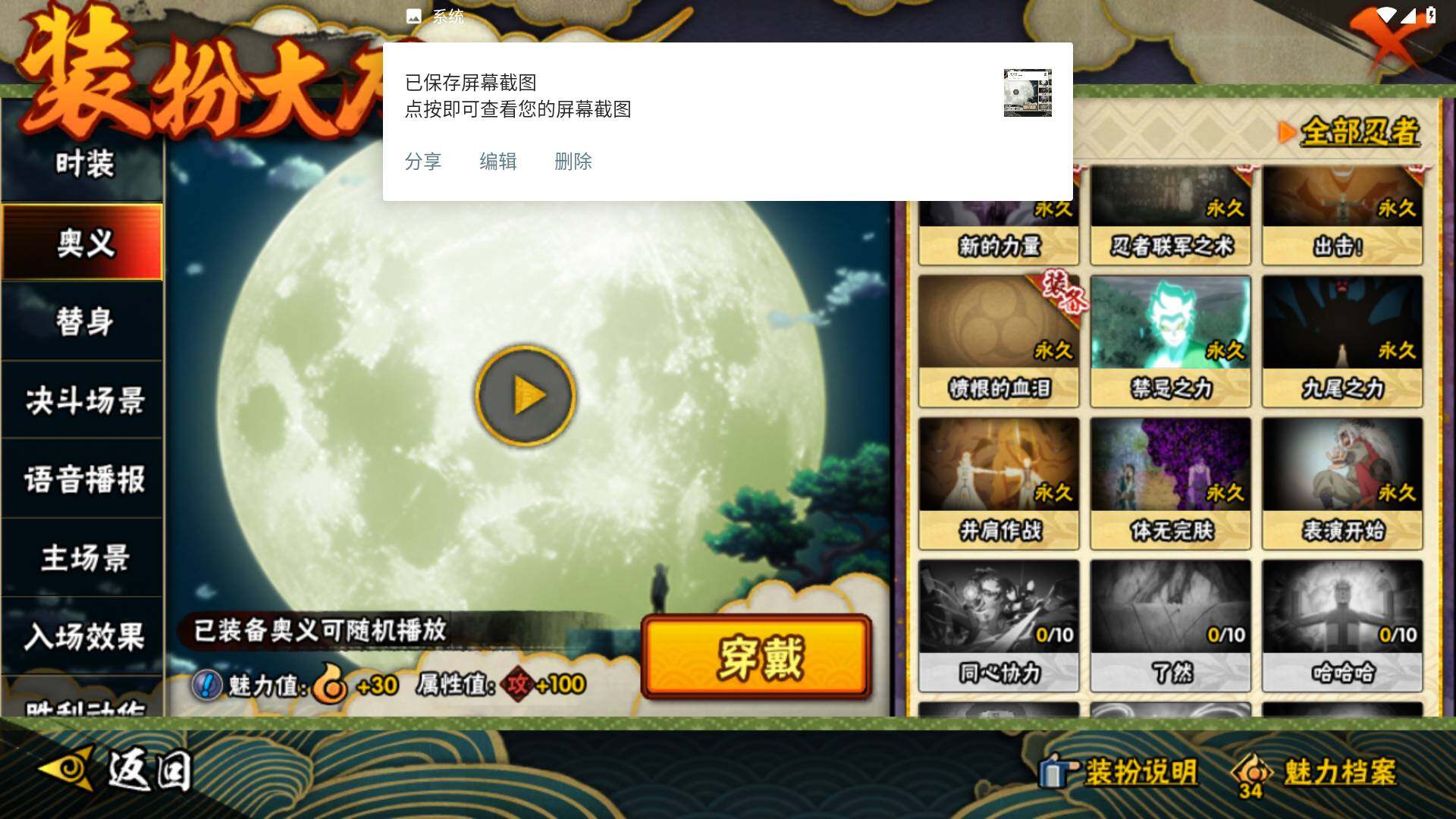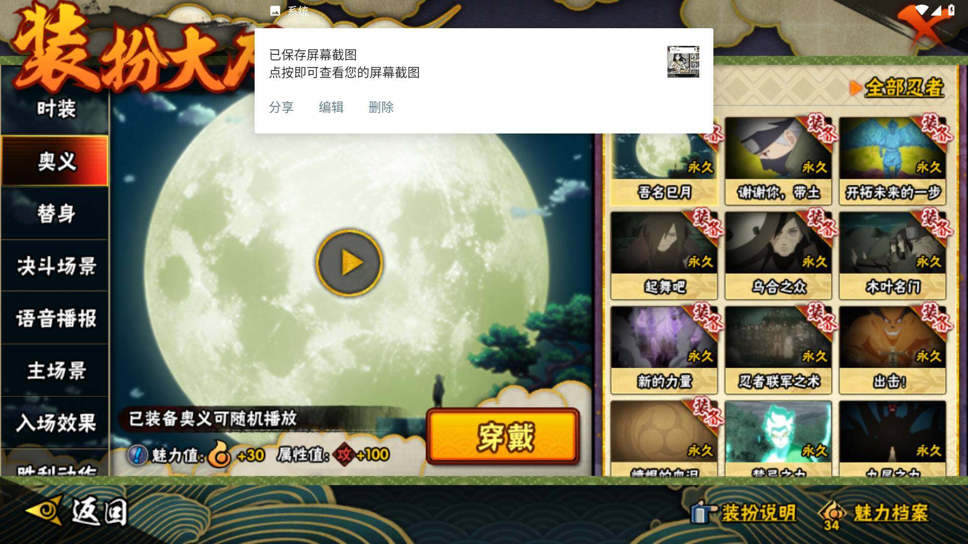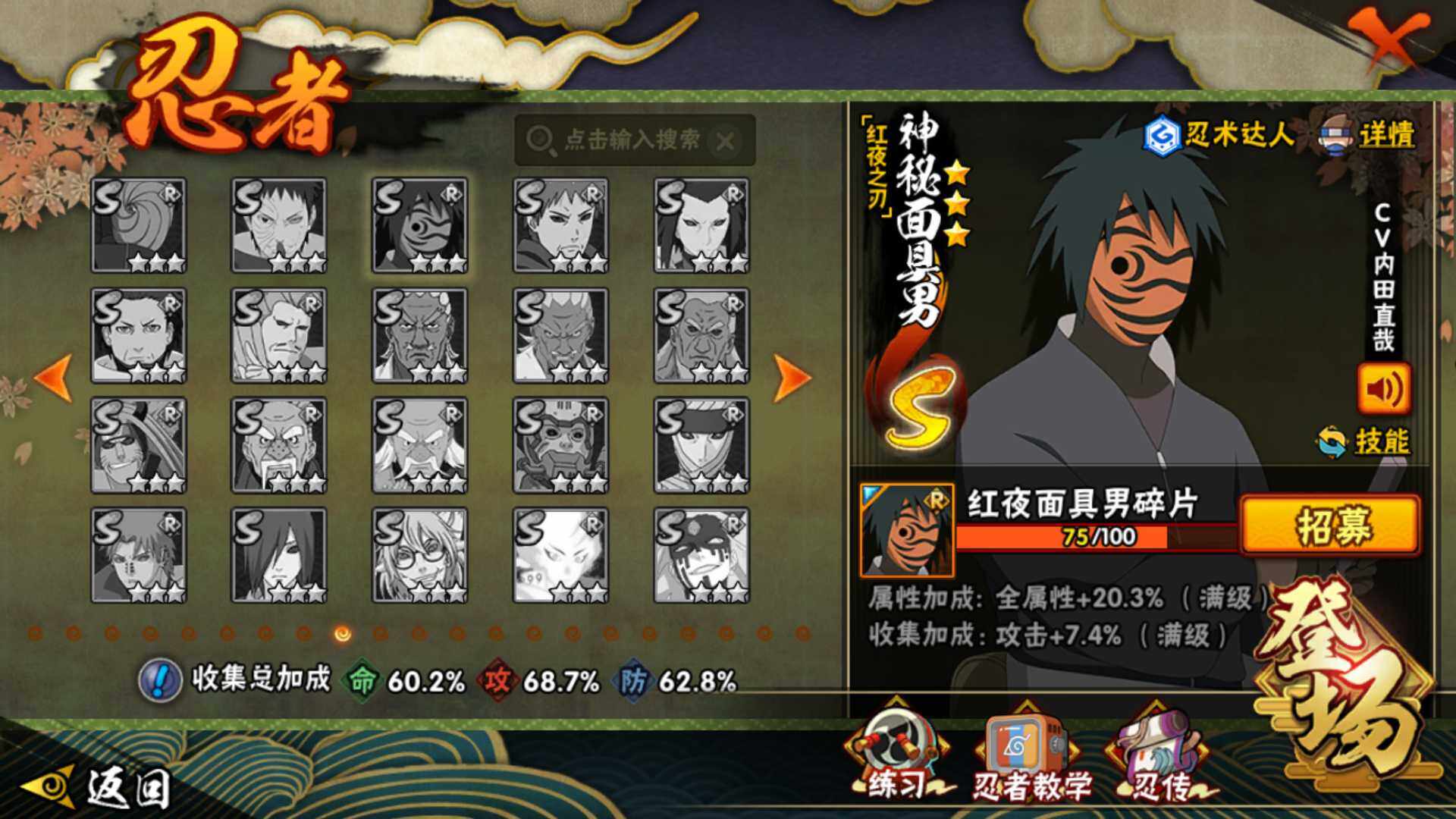 [14585353]v8 10s 28a 535万战力 限时点券2000 九水门96片 创立柱间65片 面具男75片 zp3305 【s级忍者】:宇智波斑「秽土转生·解」3星,宇智波鼬「须佐能乎」3星,旗木卡卡西「须佐能乎」3星,自来也「舞之豪杰」3星,大蛇丸3星,自来也「传说中的三忍」3星,波风水门3星,漩涡鸣人「九喇嘛连结」3星,佩恩「天道」3星,宇智波佐助「永恒万花筒」3星 【a级忍者】:艾「青年」2星,长门「青年」2星,波风水门「青年」2星,迪达拉「秽土转生」2星,飞段3星,飞段「死司凭血」2星,干柿鬼鲛2星,漩涡博人「桃式显现」2星,机械鸣人「初始形态」2星,迈特凯3星,旗木卡卡西「幻之真容」2星,桃地再不斩「漂泊武士」2星,桃地再不斩「秽土转生」2星,我爱罗「疾风传」3星,蝎2星,猿飞阿斯玛2星,宇智波佐助「须佐能乎」2星,宇智波佐助「万花筒写轮眼」2星,宇智波佐助「侠隐江湖」2星,日向宁次「忍界大战」2星,长十郎「六代目水影」2星,李洛克「忍界大战」2星,秋道丁次「忍界大战」2星,千代「近松十人卫」2星,神农「羁绊」2星,宇智波泉奈2星,大野木「侠隐江湖」2星,巳月「仙人模式」2星