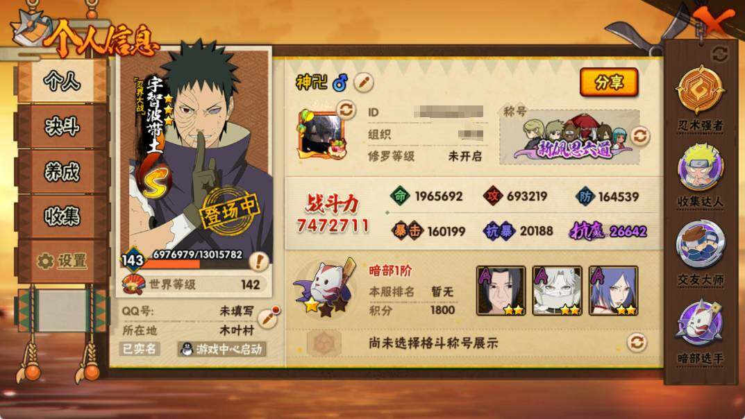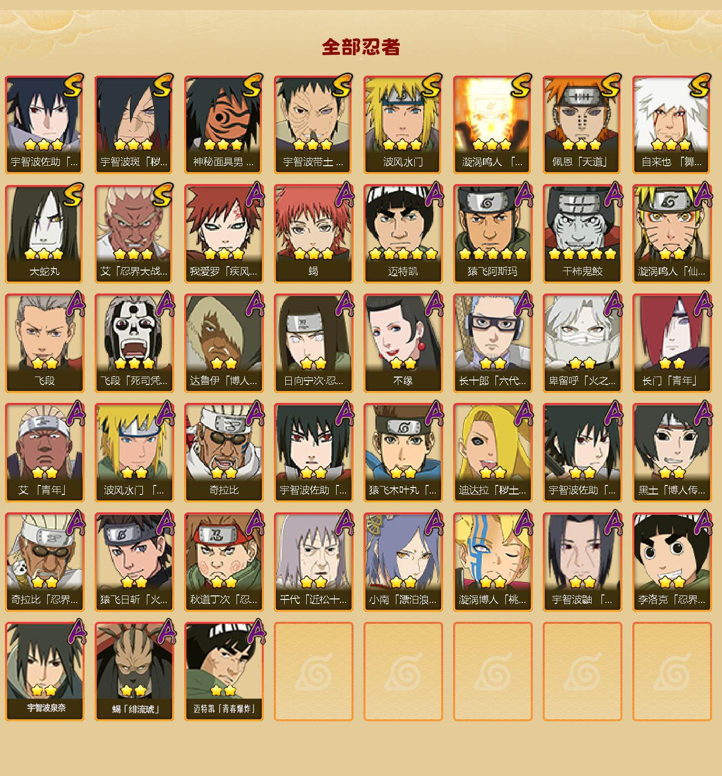 【hyyh796】v10/s忍10/a忍33/2星日向宁次「忍界大战」/2星达鲁伊「博人传」/3星宇智波佐助「永恒万花筒」/5星猿飞阿斯玛/2星长门「青年」/2星猿飞日斩「火影继承人」/3星宇智波带土「忍界大战」/3星佩恩「天道」/3星波风水门/3星蝎/3星漩涡鸣人「九喇嘛连结」/2星秋道丁次「忍界大战」/5星迈特凯/2星漩涡博人「桃式显现」/2星奇拉比「忍界大战」/3星我爱罗「疾风传」/2星李洛克「忍界大战」/2星卑留呼「火之意志继承者」/2星长十郎「六代目水影」/2星波风水门「青年」/2星蝎「绯流琥」/3星自来也「舞之豪杰」/3星神秘面具男「红夜之刃」/2星黑土「博人传」/2星迪达拉「秽土转生」/2星奇拉比/2星飞段/3星飞段「死司凭血」/2星漩涡鸣人「仙人模式」/2星宇智波鼬「夏日限定」/2星宇智波佐助「万花筒写轮眼」/2星宇智波泉奈/3星大蛇丸/3星艾「忍界大战」/2星小南「漂泊浪客」/3星宇智波斑「秽土转生·解」/2星艾「青年」/2星不缘/2星迈特凯「青春爆炸」/2星宇智波佐助「须佐能乎」/2星猿飞木叶丸「博人传」/5星干柿鬼鲛/2星千代「近松十人卫」