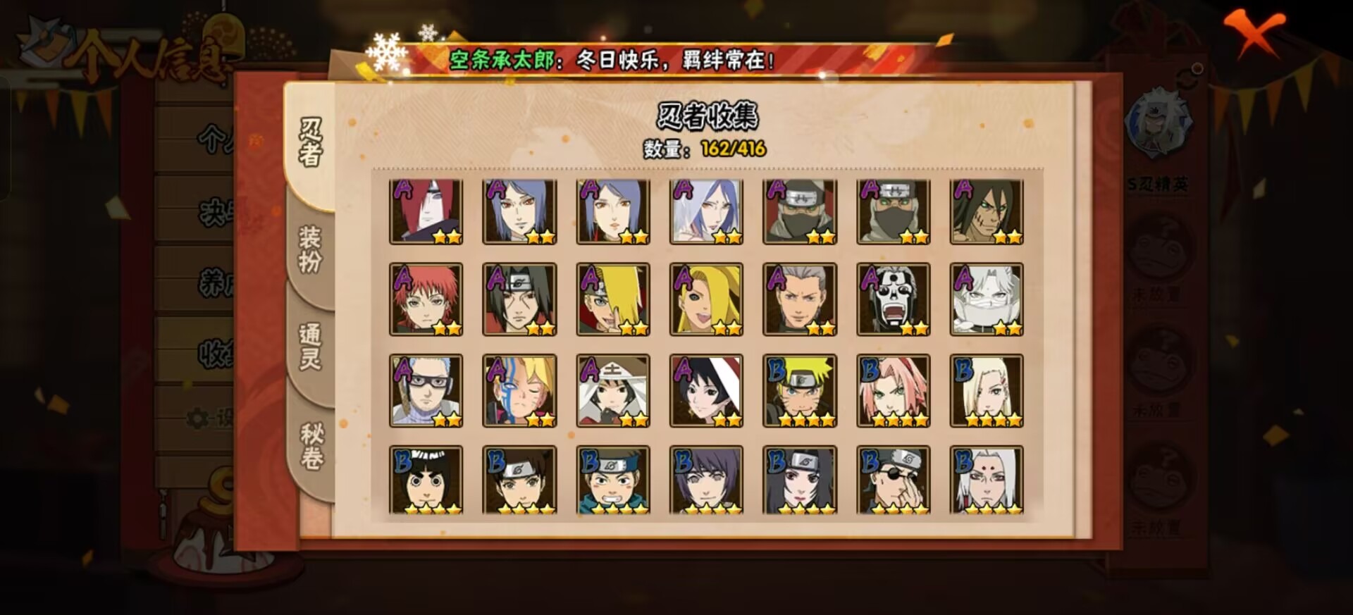 [14624372]v11 10s忍 36a忍 17通灵 718.4w战力 可二次 可修改实名 【s级忍者】:宇智波斑「秽土转生·解」宇智波佐助「永恒万花筒」春野樱 「忍界大战」漩涡鸣人 「九喇嘛连结」自来也 「舞之豪杰」旗木卡卡西「须佐能乎」大筒木舍人 「最终章」宇智波鼬 「须佐能乎」佩恩「天道」波风水门