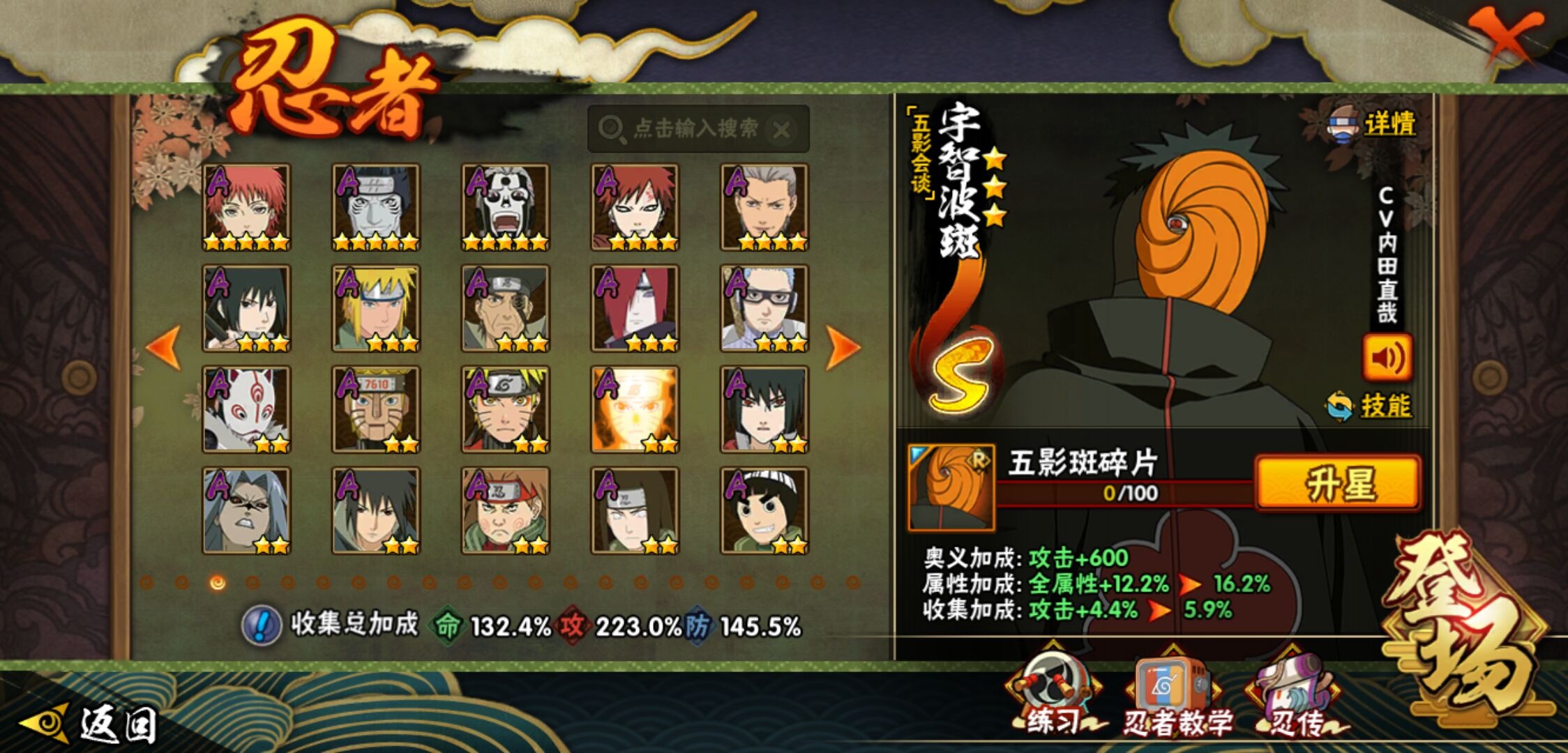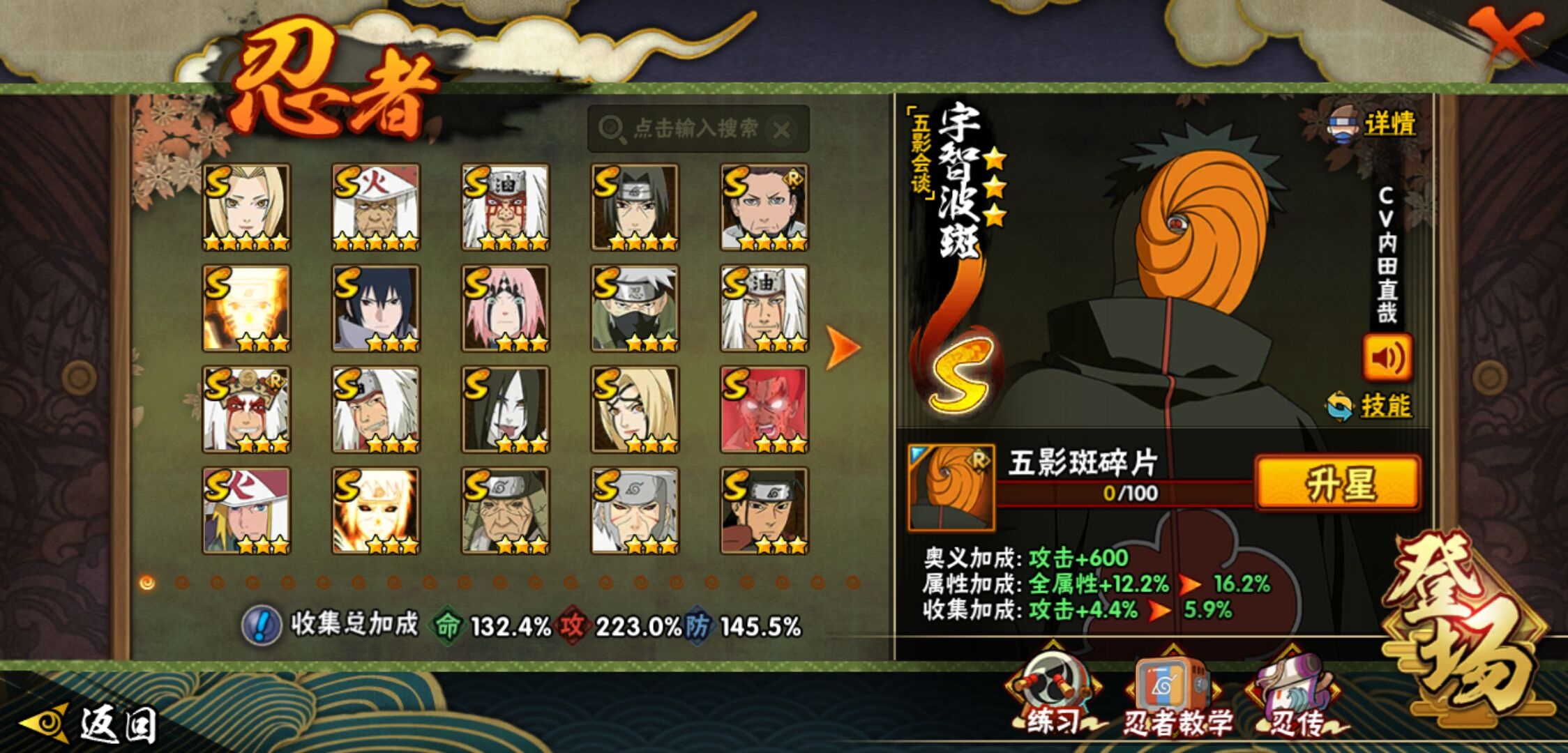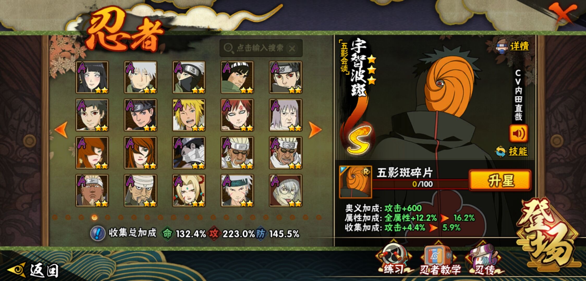 【火影忍者】【lyhy9343】战斗力:2197w;段位:影级2阶;本服排名:25;vip:v12级;s忍:38个;a忍:64个;通灵兽:23个,s忍:纲手(普通) 5星|猿飞日斩(普通) 5星|仙人模式自来也 4星|须佐能乎宇智波鼬 4星|初代目风影烈斗 4星|九喇嘛连结漩涡鸣人|永恒万花筒宇智波佐助|忍界大战春野樱|须佐能乎旗木卡卡西|自来也(普通)|舞之豪杰自来也|传说中的三忍自来也|大蛇丸(普通)|百豪纲手|死门迈特凯|波风水门|九喇嘛连结波风水门|秽土转生猿飞日斩|秽土转生千手扉间|千手柱间(普通)|秽土转生千手柱间|秽土转生宇智波斑|木叶创立宇智波斑|秽土转生解宇智波斑|秽土转生宇智波鼬|神秘面具男(普通)|五影会谈宇智波斑|白面具宇智波斑|忍界大战宇智波带土|红夜之刃神秘面具男|四代目风影罗砂|忍界大战艾|三代目雷影艾|秽土转生半藏|天道佩恩|超佩恩天道|仙人模式药师兜|博人传大筒木金式__a忍:迈特凯(普通) 5星|猿飞阿斯玛(普通) 5星|蝎(普通) 5星|干柿鬼鲛(普通) 5星|死司凭血飞段 5星|疾风传我爱罗 4星|飞段(普通) 4星|须佐能乎宇智波佐助 3星|青年波风水门 3星|忍界大战土台 3星|青年长门 3星|六代目水影长十郎 3星|忍者之路神秘面具男|初始形态机械鸣人|仙人模式漩涡鸣人|九尾查克拉漩涡鸣人|万花筒写轮眼宇智波佐助|疾风传咒印宇智波佐助|宇智波泉奈|忍界大战秋道丁次|忍界大战日向宁次|忍界大战李洛克|最终章日向雏田|幻之真容旗木卡卡西|忍界大战旗木卡卡西|青春爆炸迈特凯|宇智波止水(普通)|新春限定宇智波止水|火影继承人猿飞日斩|新春限定波风水门|忍界大战我爱罗|近松十人卫千代|夏日泳装照美冥|五代目水影照美冥|秽土转生桃地再不斩|忍界大战奇拉比|奇拉比(普通)|青年艾|三船(普通)|妖怪奇谭纲手|漂泊武士千手扉间|半蛇斗篷药师兜|不风|不缘|小南(普通)|夏日泳装小南|漂泊浪客小南|地怨虞角都|秽土转生角都|晓大蛇丸|绯流琥蝎|宇智波鼬(普通)|新春限定宇智波鼬|迪达拉(普通)|秽土转生迪达拉|恶灵之影飞段|暴怒宇智波带土|侠隐江湖大野木|火之意志继承者卑留呼|木叶上忍猿飞木叶丸|桃式显现漩涡博人|五代目雷影达鲁伊|仙人模式巳月|四代目土影黑土__通灵兽:忍犬(普通)|蓝蛇|蛤蟆吉|忍龟|熊猫|镰鼬|猿魔|蛞蝓(普通)|山椒鱼|蜃|蛤蟆仙人|鲛鲨|蛤蟆健|乌鸦(普通)|砂之守鹤|蛤蟆龙|怒鬼(普通)|怒鬼爪|蛤蟆广|梦貘|鹰|辛牙|蜘蛛