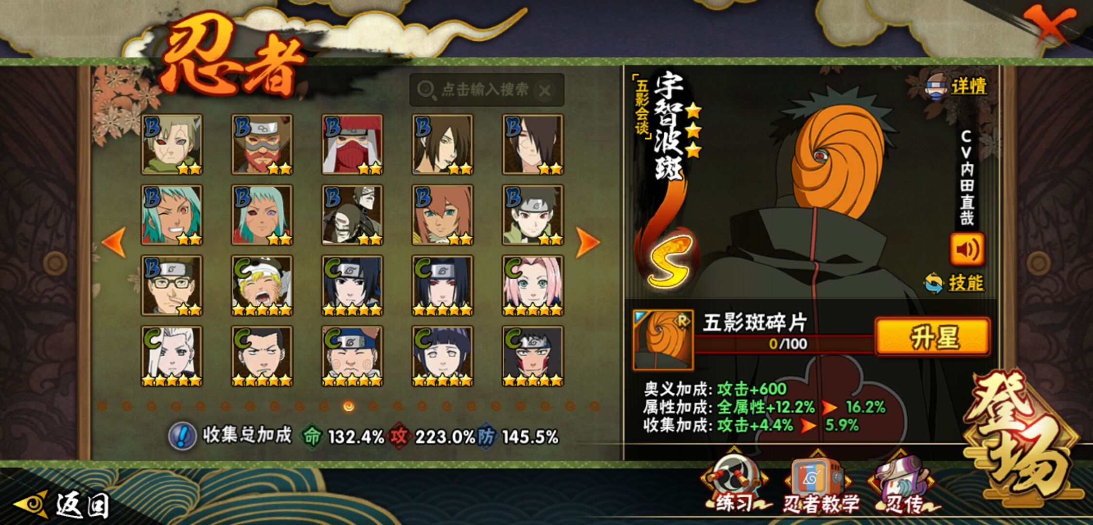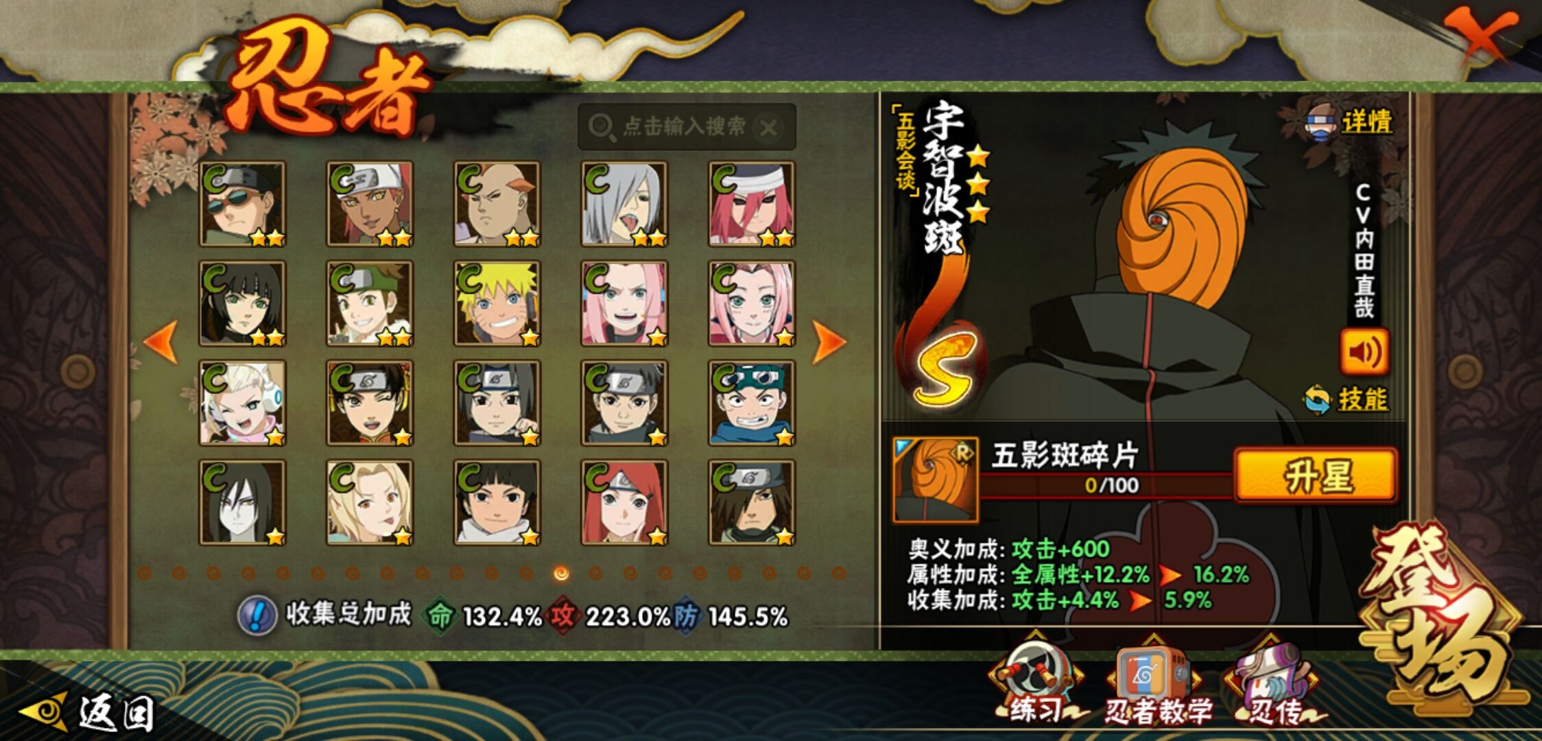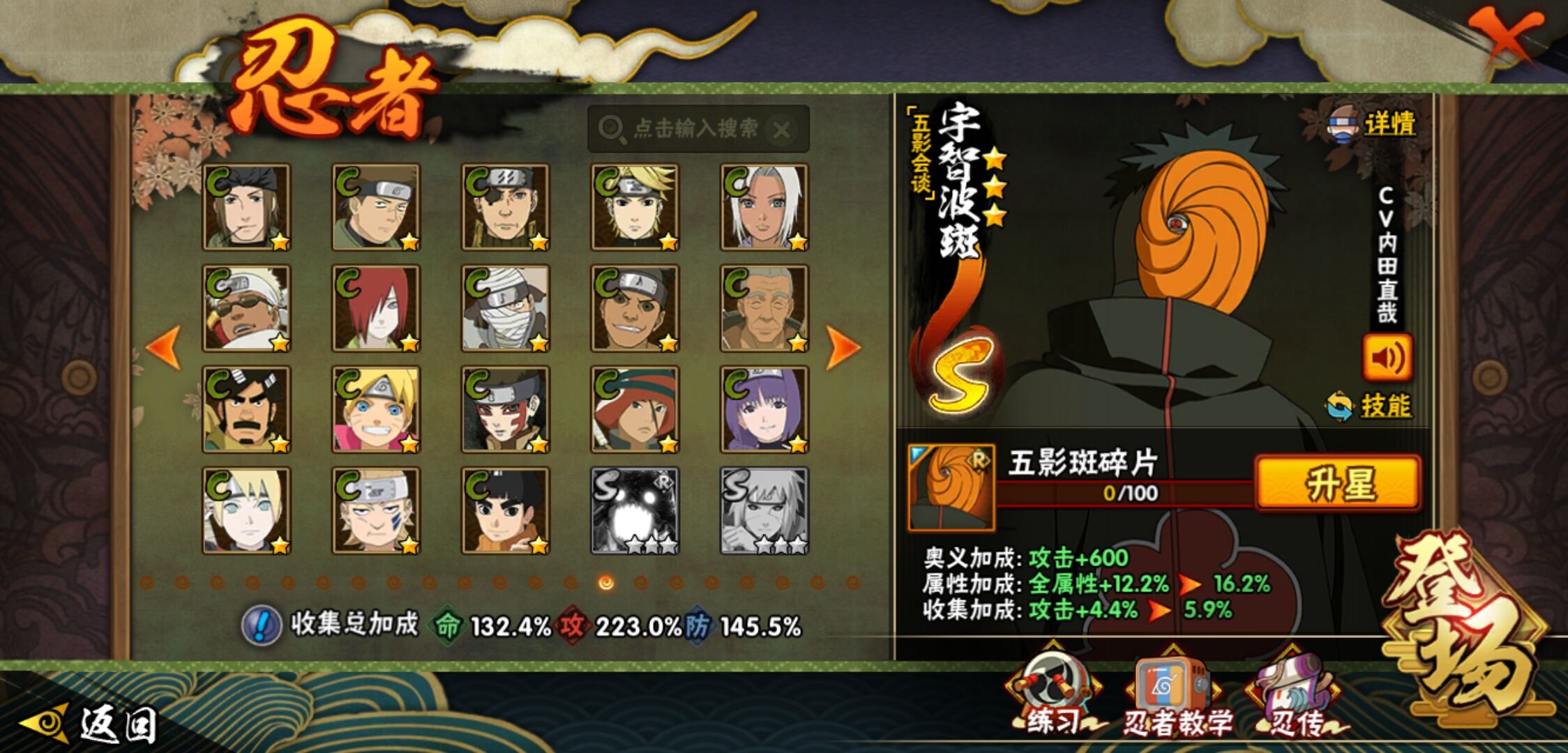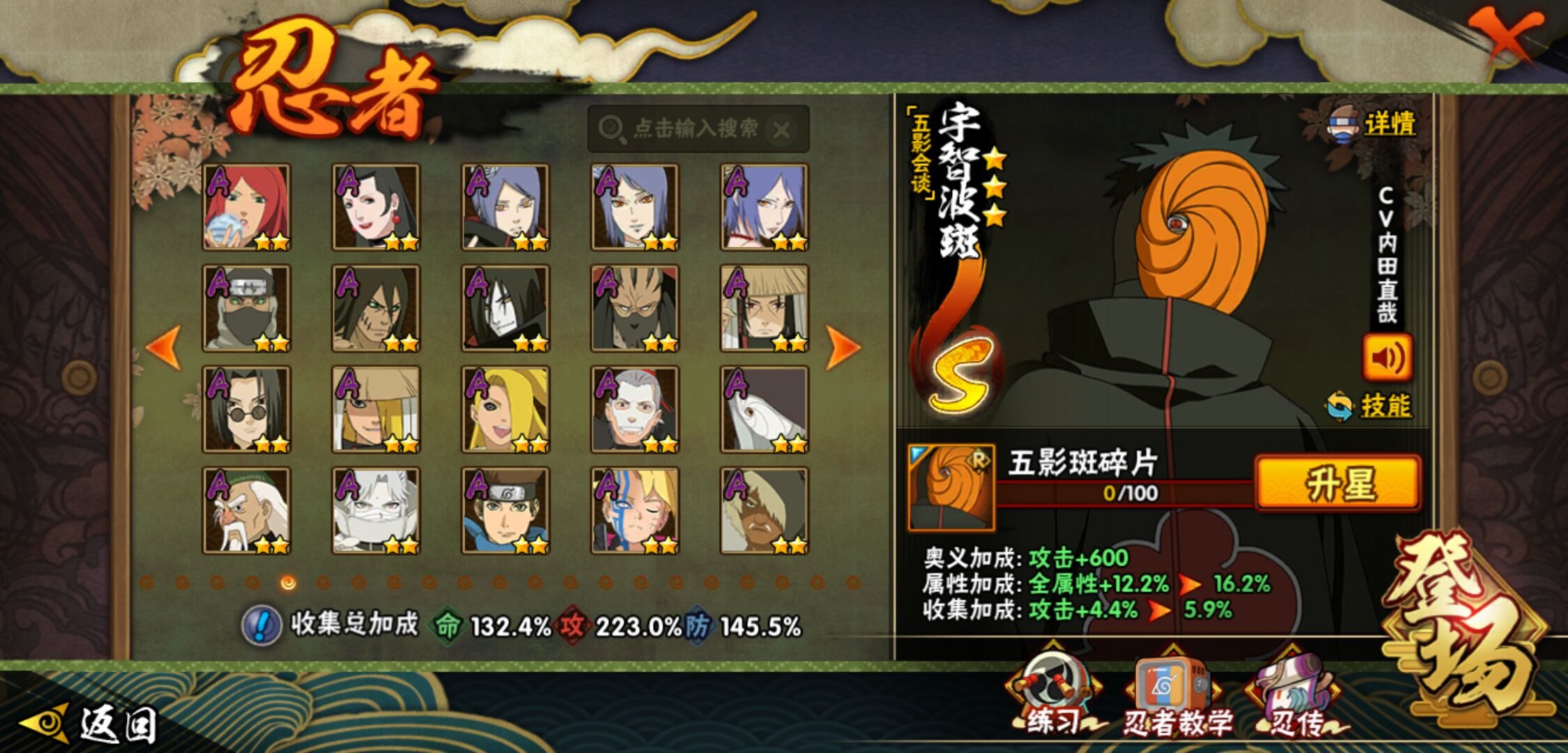 【火影忍者】【lyhy9343】战斗力:2197w;段位:影级2阶;本服排名:25;vip:v12级;s忍:38个;a忍:64个;通灵兽:23个,s忍:纲手(普通) 5星|猿飞日斩(普通) 5星|仙人模式自来也 4星|须佐能乎宇智波鼬 4星|初代目风影烈斗 4星|九喇嘛连结漩涡鸣人|永恒万花筒宇智波佐助|忍界大战春野樱|须佐能乎旗木卡卡西|自来也(普通)|舞之豪杰自来也|传说中的三忍自来也|大蛇丸(普通)|百豪纲手|死门迈特凯|波风水门|九喇嘛连结波风水门|秽土转生猿飞日斩|秽土转生千手扉间|千手柱间(普通)|秽土转生千手柱间|秽土转生宇智波斑|木叶创立宇智波斑|秽土转生解宇智波斑|秽土转生宇智波鼬|神秘面具男(普通)|五影会谈宇智波斑|白面具宇智波斑|忍界大战宇智波带土|红夜之刃神秘面具男|四代目风影罗砂|忍界大战艾|三代目雷影艾|秽土转生半藏|天道佩恩|超佩恩天道|仙人模式药师兜|博人传大筒木金式__a忍:迈特凯(普通) 5星|猿飞阿斯玛(普通) 5星|蝎(普通) 5星|干柿鬼鲛(普通) 5星|死司凭血飞段 5星|疾风传我爱罗 4星|飞段(普通) 4星|须佐能乎宇智波佐助 3星|青年波风水门 3星|忍界大战土台 3星|青年长门 3星|六代目水影长十郎 3星|忍者之路神秘面具男|初始形态机械鸣人|仙人模式漩涡鸣人|九尾查克拉漩涡鸣人|万花筒写轮眼宇智波佐助|疾风传咒印宇智波佐助|宇智波泉奈|忍界大战秋道丁次|忍界大战日向宁次|忍界大战李洛克|最终章日向雏田|幻之真容旗木卡卡西|忍界大战旗木卡卡西|青春爆炸迈特凯|宇智波止水(普通)|新春限定宇智波止水|火影继承人猿飞日斩|新春限定波风水门|忍界大战我爱罗|近松十人卫千代|夏日泳装照美冥|五代目水影照美冥|秽土转生桃地再不斩|忍界大战奇拉比|奇拉比(普通)|青年艾|三船(普通)|妖怪奇谭纲手|漂泊武士千手扉间|半蛇斗篷药师兜|不风|不缘|小南(普通)|夏日泳装小南|漂泊浪客小南|地怨虞角都|秽土转生角都|晓大蛇丸|绯流琥蝎|宇智波鼬(普通)|新春限定宇智波鼬|迪达拉(普通)|秽土转生迪达拉|恶灵之影飞段|暴怒宇智波带土|侠隐江湖大野木|火之意志继承者卑留呼|木叶上忍猿飞木叶丸|桃式显现漩涡博人|五代目雷影达鲁伊|仙人模式巳月|四代目土影黑土__通灵兽:忍犬(普通)|蓝蛇|蛤蟆吉|忍龟|熊猫|镰鼬|猿魔|蛞蝓(普通)|山椒鱼|蜃|蛤蟆仙人|鲛鲨|蛤蟆健|乌鸦(普通)|砂之守鹤|蛤蟆龙|怒鬼(普通)|怒鬼爪|蛤蟆广|梦貘|鹰|辛牙|蜘蛛