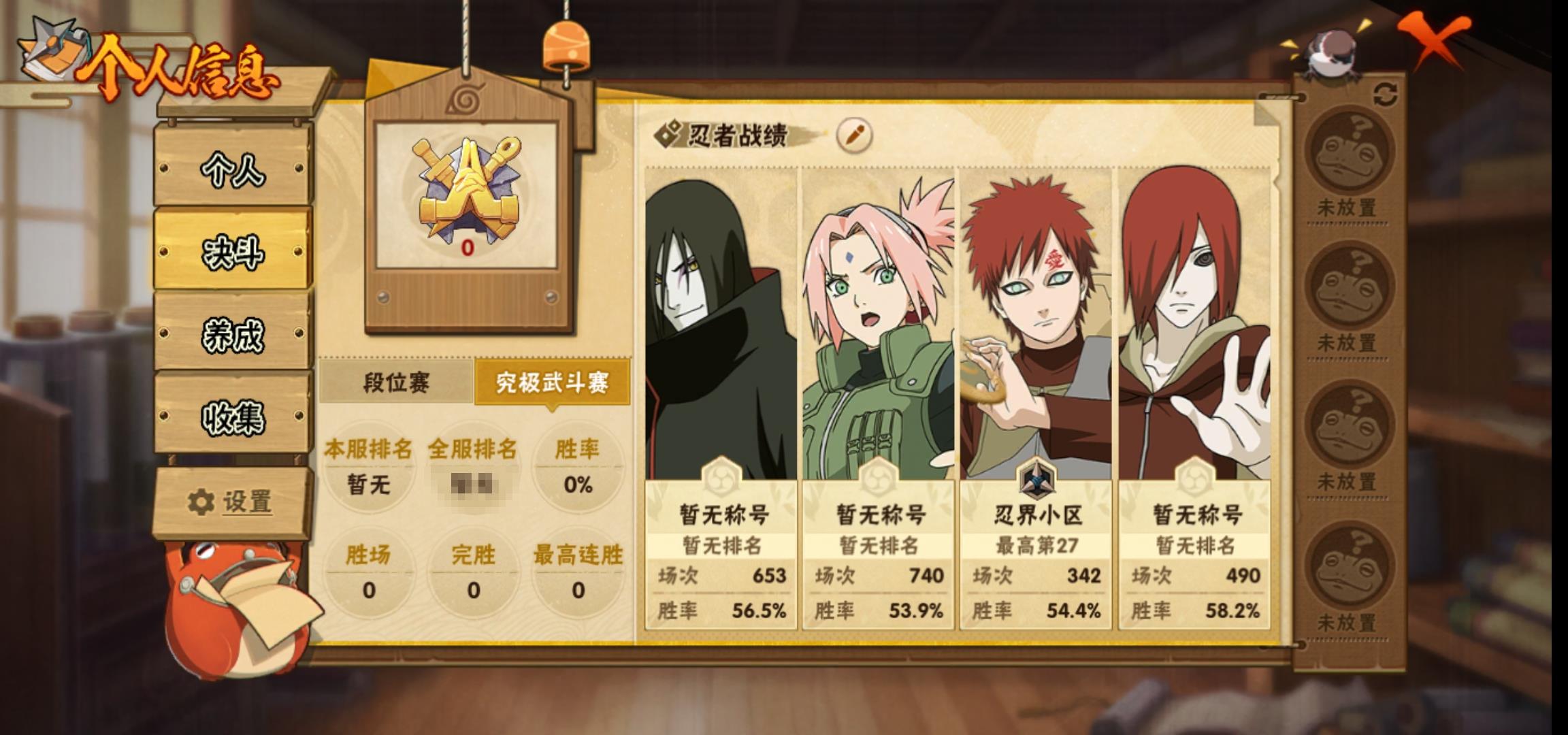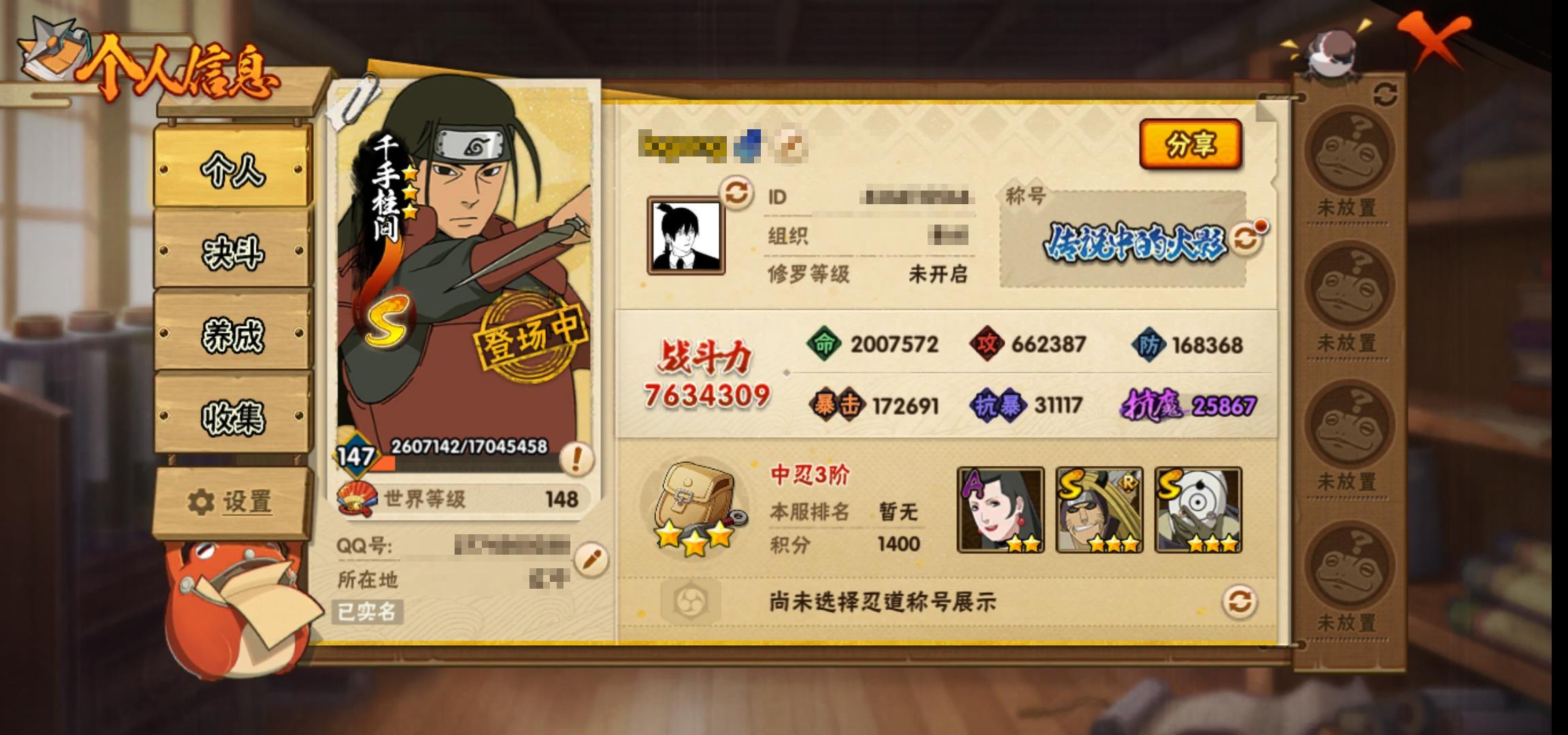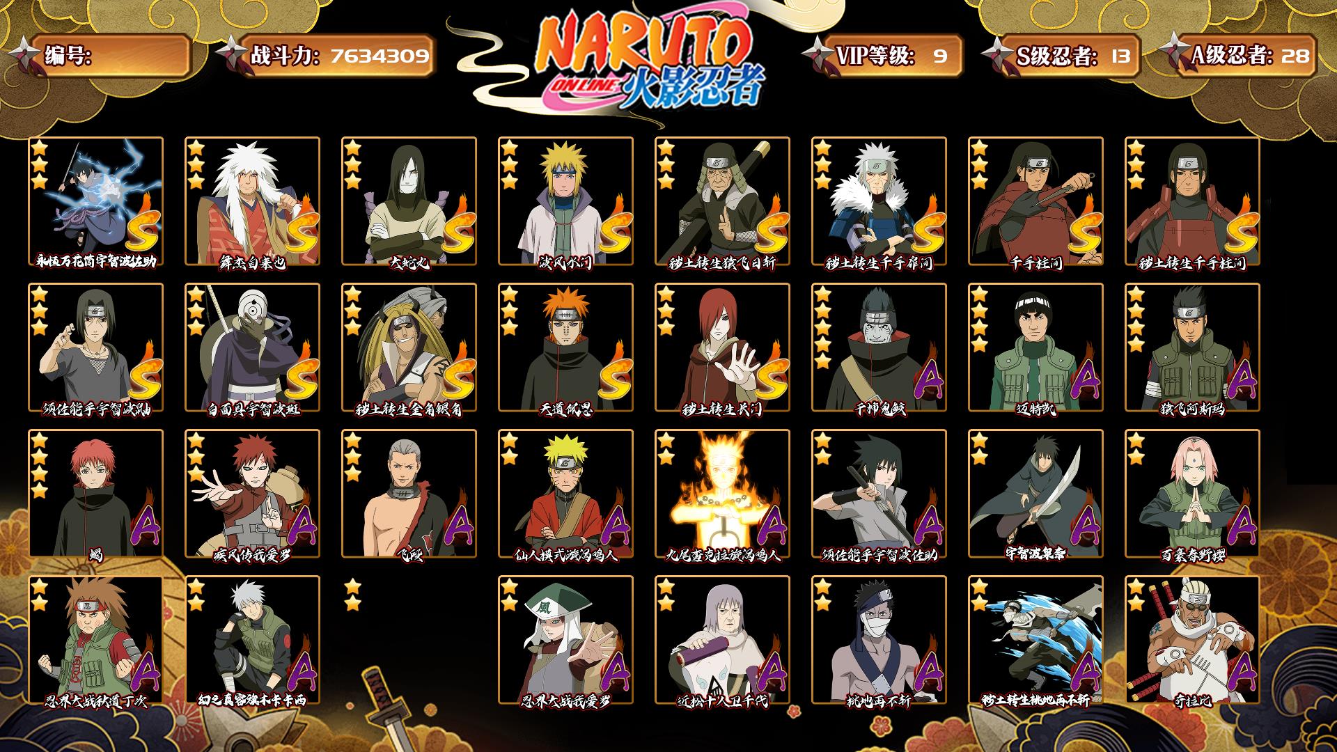 [14629277]0aqel8 号 vip9,763w战力,s忍13个,a忍28个,本服排名1242,战区排名未上榜,通灵兽316个,6时装,中忍3阶,忍者星数378