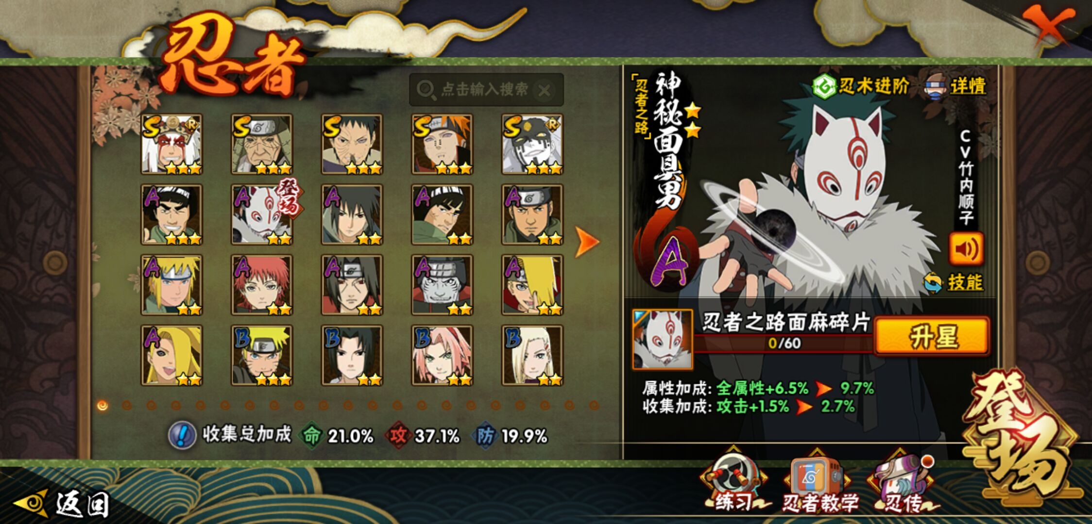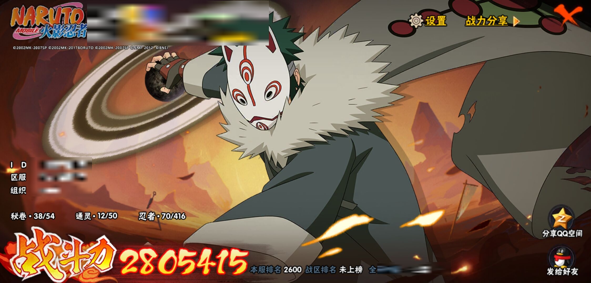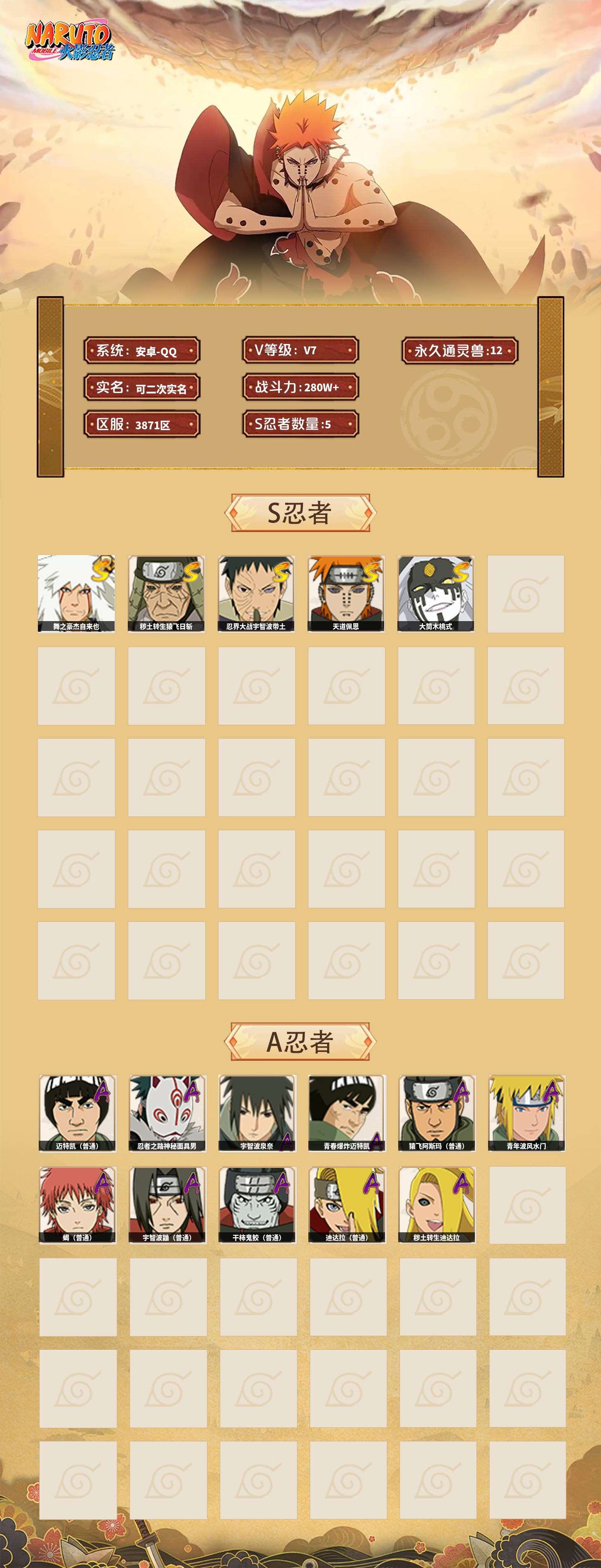 【火影忍者】【lyhy9344】战斗力:280w;段位:暗部1阶;本服排名:2600;vip:v7级;s忍:5个;a忍:11个;通灵兽:12个,s忍:舞之豪杰自来也|秽土转生猿飞日斩|忍界大战宇智波带土|天道佩恩|大筒木桃式__a忍:迈特凯(普通) 3星|忍者之路神秘面具男|宇智波泉奈|青春爆炸迈特凯|猿飞阿斯玛(普通)|青年波风水门|蝎(普通)|宇智波鼬(普通)|干柿鬼鲛(普通)|迪达拉(普通)|秽土转生迪达拉__通灵兽:忍犬(普通)|蓝蛇|蛤蟆吉|砂之守鹤|忍龟|镰鼬|猿魔|山椒鱼|蜃|蛤蟆仙人|鲛鲨|蛤蟆健