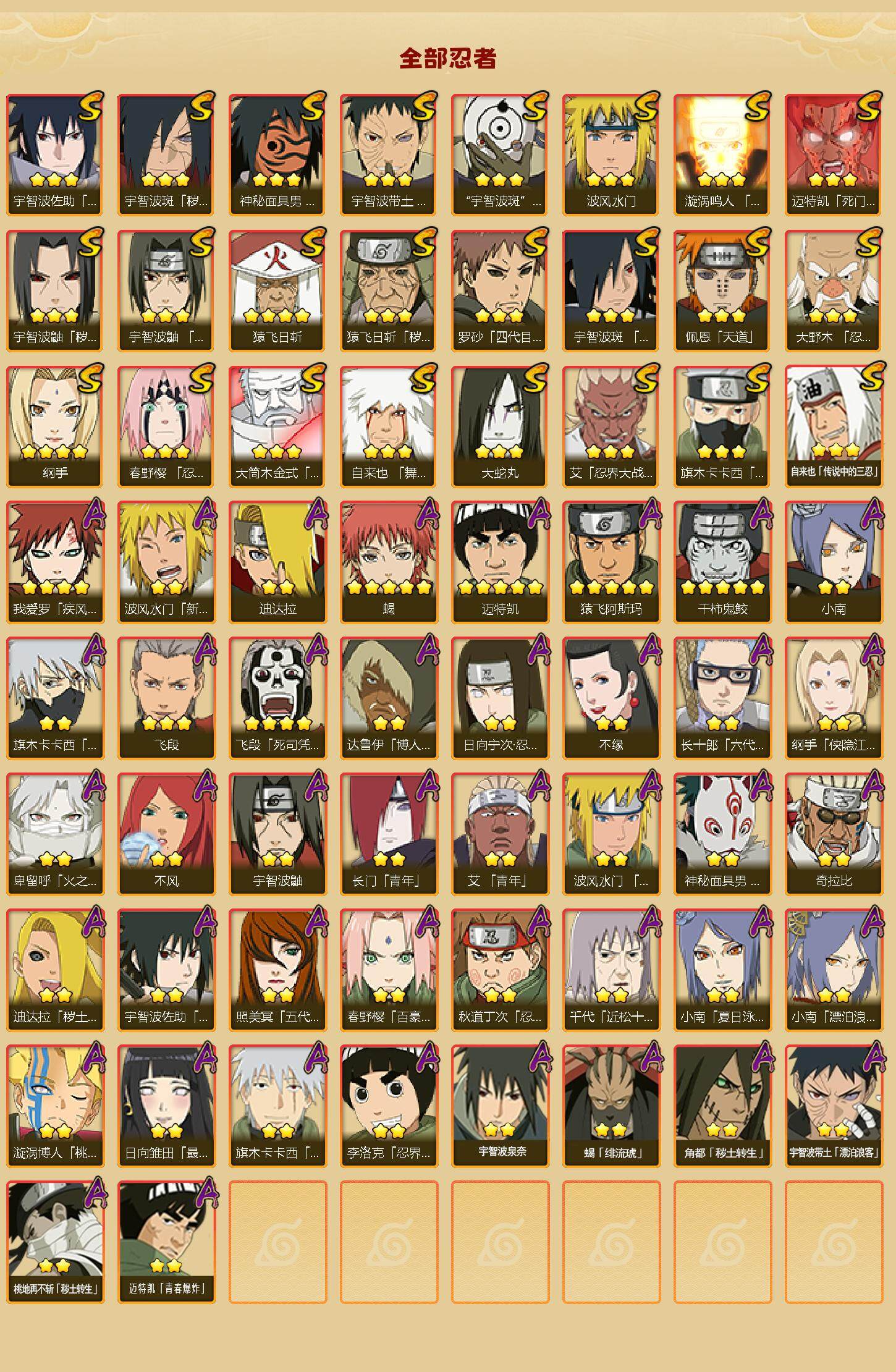 【hyyh806】v11/s忍24/a忍42/2星波风水门「新春限定」/2星纲手「侠隐江湖」/2星达鲁伊「博人传」/5星猿飞阿斯玛/3星旗木卡卡西「须佐能乎」/5星蝎/3星猿飞日斩「秽土转生」/2星照美冥「五代目水影」/5星迈特凯/2星神秘面具男「忍者之路」/3星罗砂「四代目风影」/2星长十郎「六代目水影」/2星蝎「绯流琥」/2星桃地再不斩「秽土转生」/2星春野樱「百豪」/3星宇智波斑「白面具」/4星纲手/3星迈特凯「死门」/3星自来也「传说中的三忍」/2星迪达拉「秽土转生」/3星春野樱「忍界大战」/2星迪达拉/4星我爱罗「疾风传」/2星小南/4星飞段「死司凭血」/2星不缘/2星日向宁次「忍界大战」/2星宇智波带土「漂泊浪客」/2星宇智波鼬/3星宇智波佐助「永恒万花筒」/3星大筒木金式/3星宇智波鼬「秽土转生」/2星长门「青年」/3星宇智波带土「忍界大战」/3星飞段/3星佩恩「天道」/3星波风水门/3星漩涡鸣人「九喇嘛连结」/2星秋道丁次「忍界大战」/2星角都「秽土转生」/2星漩涡博人「桃式显现」/2星旗木卡卡西「万花筒写轮眼」/2星小南「夏日泳装」/2星李洛克「忍界大战」/2星卑留呼「火之意志继承者」/2星波风水门「青年」/3星自来也「舞之豪杰」/3星神秘面具男「红夜之刃」/2星日向雏田「最终章」/2星奇拉比/2星不风/2星宇智波泉奈/4星猿飞日斩/2星旗木卡卡西「幻之真容」/3星宇智波斑「木叶创立」/3星大蛇丸/3星艾「忍界大战」/2星小南「漂泊浪客」/3星宇智波斑「秽土转生·解」/2星艾「青年」/3星大野木「忍界大战」/2星迈特凯「青春爆炸」/2星宇智波佐助「须佐能乎」/5星干柿鬼鲛/2星千代「近松十人卫」/3星宇智波鼬「须佐能乎」