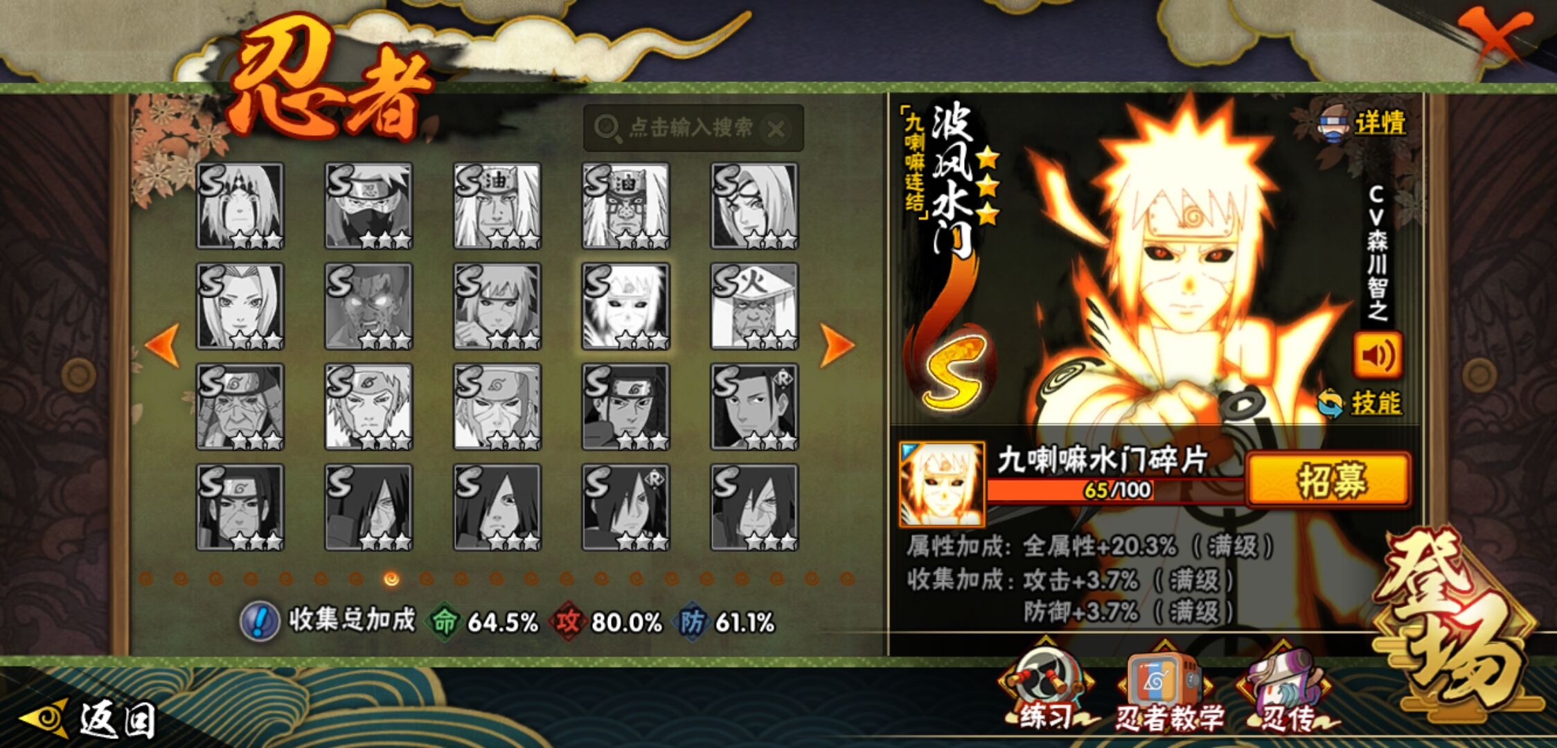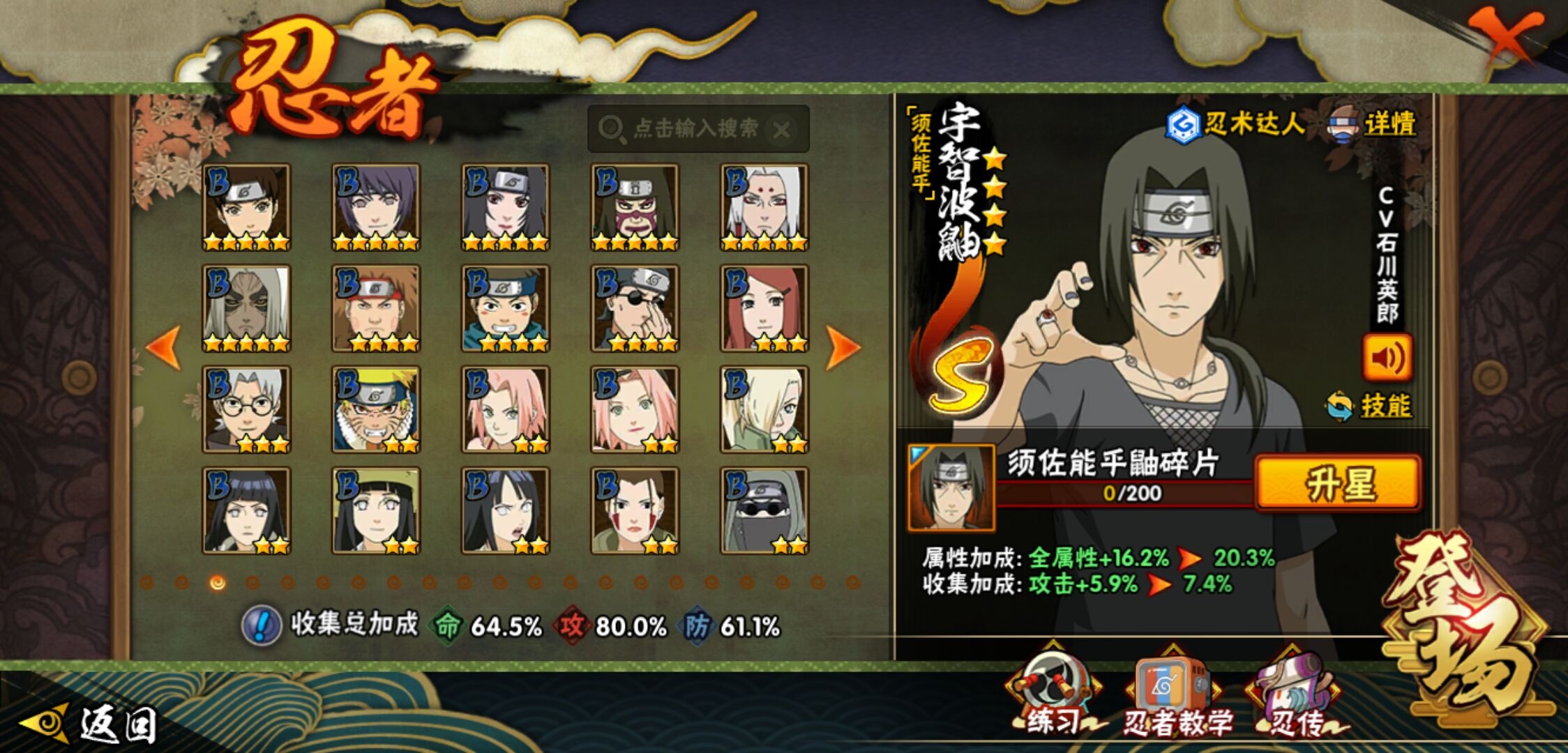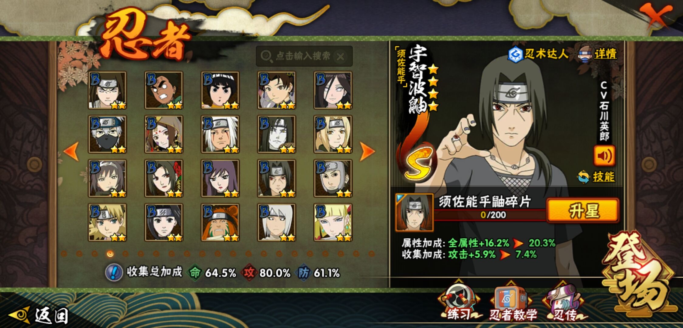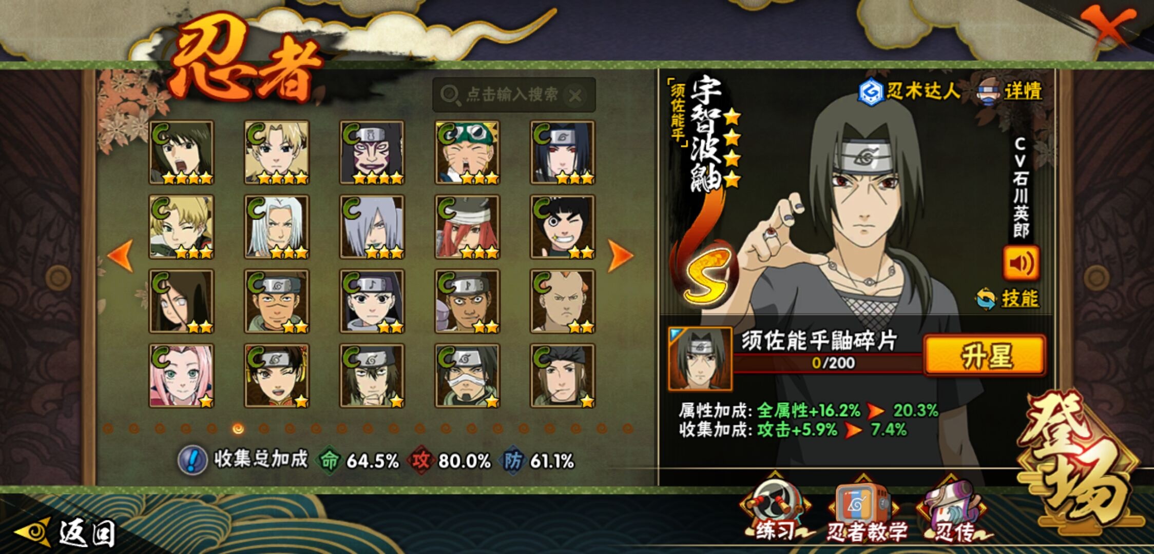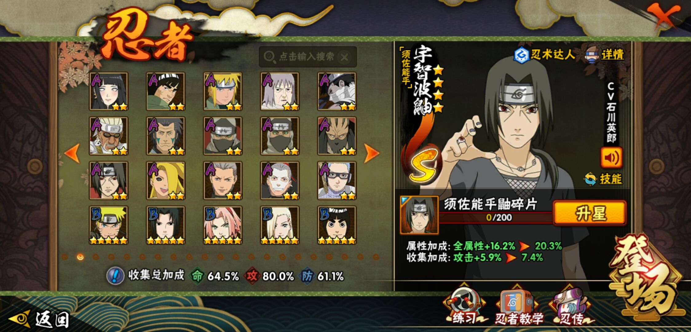 【火影忍者】【lyhy9384】战斗力:976w;段位:中忍1阶;本服排名:265;vip:v5级;s忍:9个;a忍:26个;通灵兽:15个,s忍:须佐能乎宇智波鼬 4星|永恒万花筒宇智波佐助|舞之豪杰自来也|传说中的三忍自来也|大蛇丸(普通)|波风水门|秽土转生宇智波鼬|忍界大战艾|天道佩恩__a忍:迈特凯(普通) 5星|猿飞阿斯玛(普通) 5星|干柿鬼鲛(普通) 5星|疾风传我爱罗 3星|忍界大战土台 3星|蝎(普通) 3星|死司凭血飞段 3星|须佐能乎宇智波佐助|宇智波泉奈|忍界大战秋道丁次|忍界大战李洛克|最终章日向雏田|青春爆炸迈特凯|青年波风水门|近松十人卫千代|秽土转生桃地再不斩|忍界大战奇拉比|不动|角都(普通)|地怨虞角都|绯流琥蝎|宇智波鼬(普通)|秽土转生迪达拉|飞段(普通)|恶灵之影飞段|六代目水影长十郎__通灵兽:忍犬(普通)|蓝蛇|砂之守鹤|蛤蟆吉|忍龟|镰鼬|猿魔|山椒鱼|蜃|蛤蟆仙人|鲛鲨|蛤蟆健|乌鸦(普通)|蛤蟆龙|蛤蟆广