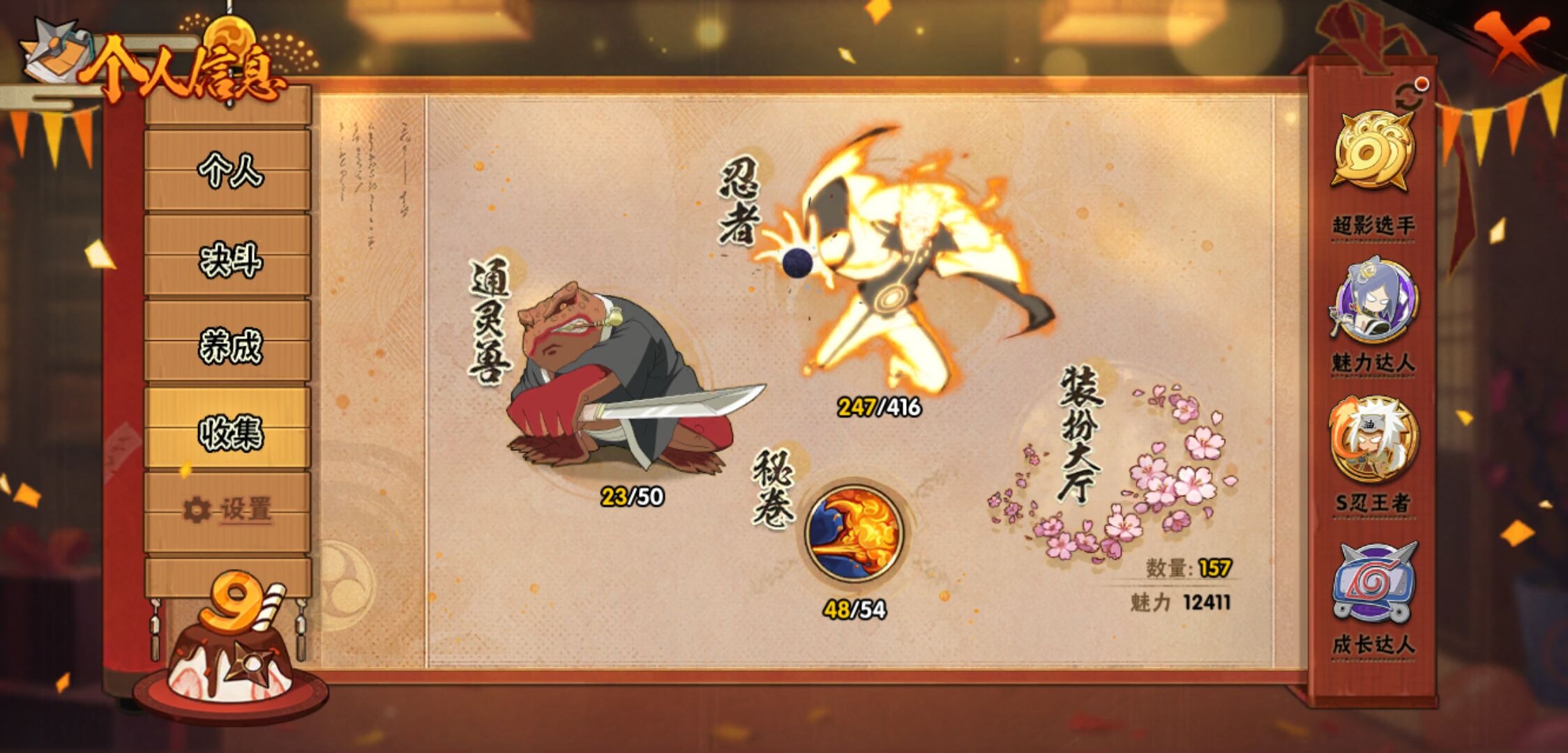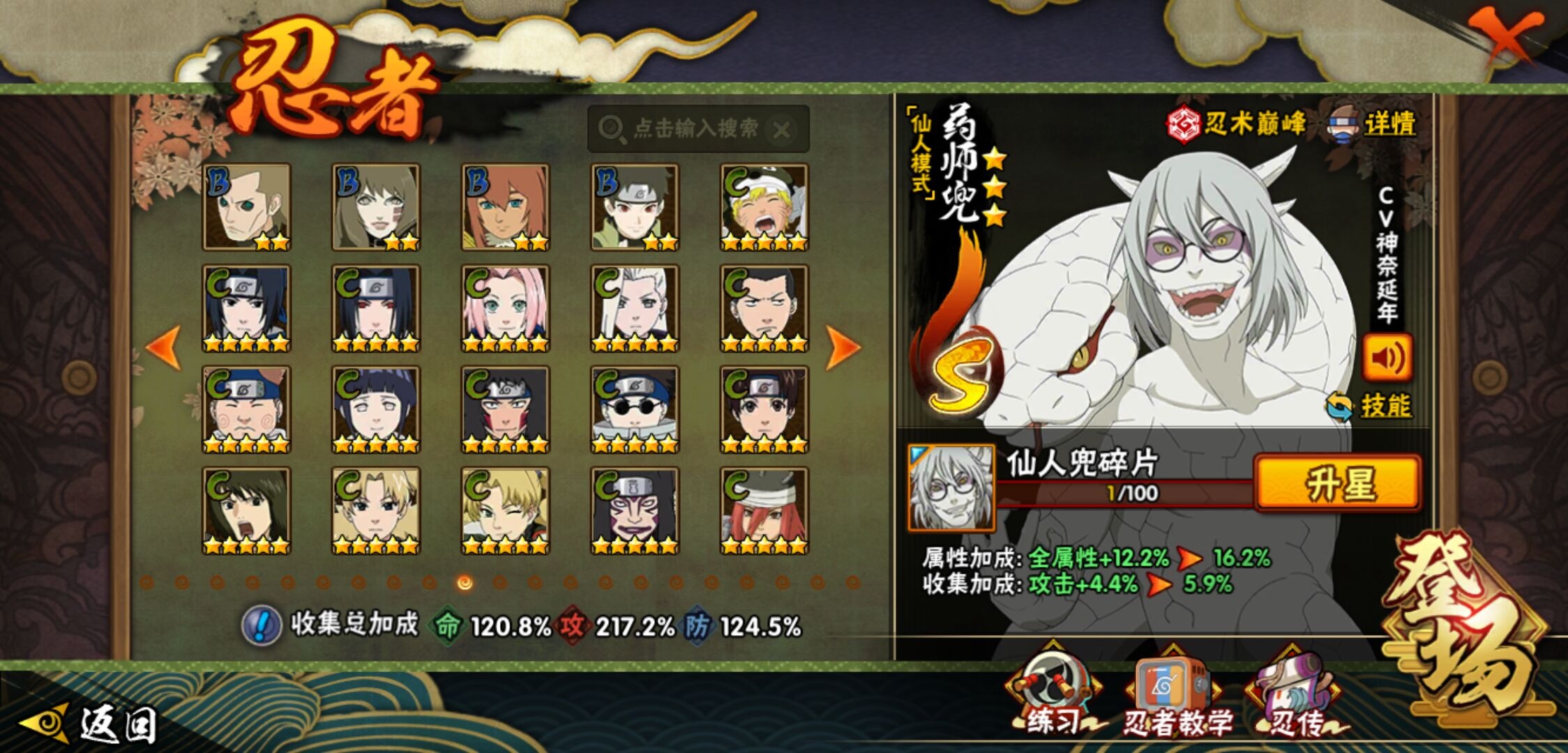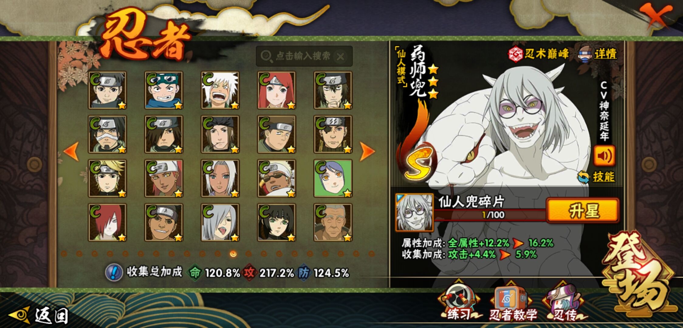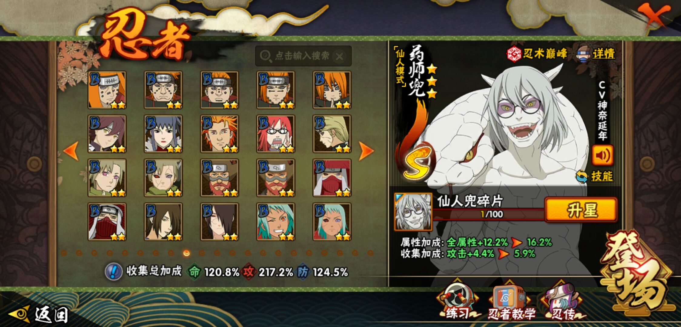 【火影忍者】【lyhy9390】战斗力:1761w;段位:暗部2阶;本服排名:78;vip:v12级;s忍:38个;a忍:44个;通灵兽:23个,s忍:纲手(普通) 5星|猿飞日斩(普通) 5星|大蛇丸(普通) 4星|波风水门 4星|须佐能乎宇智波鼬 4星|天道佩恩 4星|九喇嘛连结漩涡鸣人|永恒万花筒宇智波佐助|忍界大战春野樱|须佐能乎旗木卡卡西|自来也(普通)|仙人模式自来也|舞之豪杰自来也|传说中的三忍自来也|百豪纲手|死门迈特凯|秽土转生波风水门|秽土转生猿飞日斩|秽土转生千手扉间|千手扉间(普通)|秽土转生千手柱间|秽土转生宇智波斑|木叶创立宇智波斑|秽土转生宇智波鼬|神秘面具男(普通)|白面具宇智波斑|忍界大战宇智波带土|二代目水影鬼灯幻月|忍界大战艾|三代目雷影艾|秽土转生金角银角|三代目土影大野木|忍界大战大野木|二代目土影无|秽土转生半藏|超佩恩天道|仙人模式药师兜|博人传大筒木金式__a忍:迈特凯(普通) 5星|猿飞阿斯玛(普通) 5星|蝎(普通) 5星|干柿鬼鲛(普通) 5星|飞段(普通) 5星|死司凭血飞段 5星|疾风传我爱罗 4星|青年长门 3星|宇智波鼬(普通) 3星|仙人模式漩涡鸣人|九尾查克拉漩涡鸣人|万花筒写轮眼宇智波佐助|须佐能乎宇智波佐助|宇智波泉奈|百豪春野樱|忍界大战秋道丁次|忍界大战李洛克|万花筒写轮眼旗木卡卡西|青春爆炸迈特凯|宇智波止水(普通)|新春限定波风水门|青年波风水门|忍界大战我爱罗|近松十人卫千代|五代目水影照美冥|忍界大战奇拉比|奇拉比(普通)|青年艾|青年三船|半蛇斗篷药师兜|小南(普通)|新春限定小南|晓大蛇丸|绯流琥蝎|新春限定宇智波鼬|迪达拉(普通)|秽土转生迪达拉|侠隐江湖大野木|木叶上忍猿飞木叶丸|桃式显现漩涡博人|五代目雷影达鲁伊|六代目水影长十郎|仙人模式巳月|四代目土影黑土__通灵兽:忍犬(普通)|蓝蛇|蛤蟆吉|忍龟|镰鼬|猿魔|山椒鱼|蜃|熊猫|蛤蟆仙人|鲛鲨|蛤蟆健|乌鸦(普通)|蛞蝓(普通)|蛤蟆龙|蛤蟆广|二尾又旅|砂之守鹤|梦貘|螃蟹|鹰|蜘蛛|辛牙