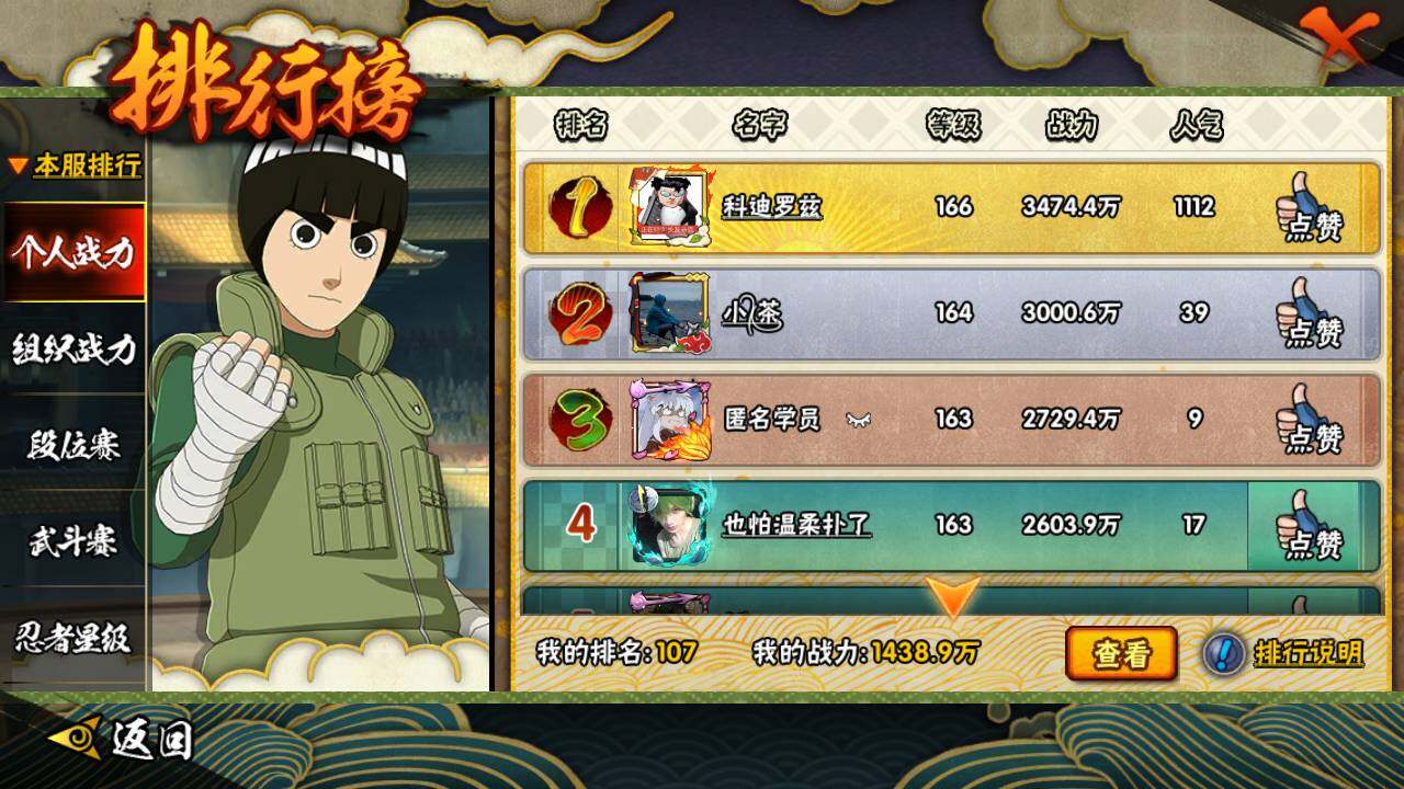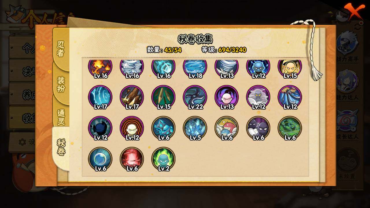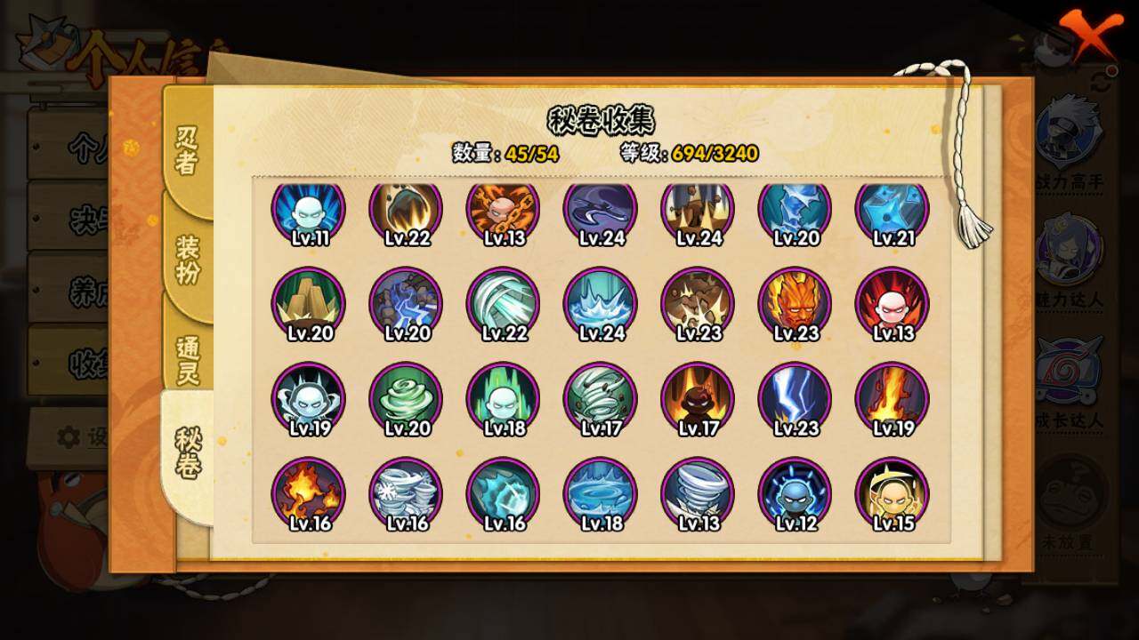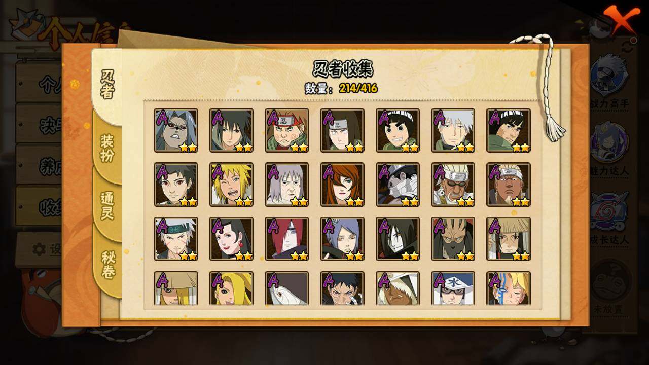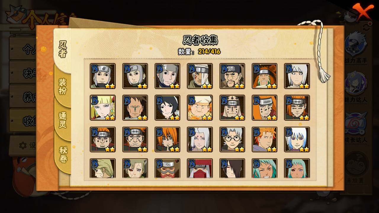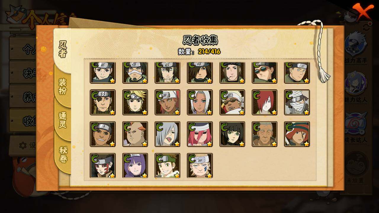 [14672746]v11 1438万战力 29s-42a 金币4.5万 有熊猫 自来也55片 烈斗50片 ll5545 【s级忍者】:长门「秽土转生」3星,千手柱间「秽土转生」3星,宇智波鼬「秽土转生」3星,宇智波斑「秽土转生」3星,宇智波斑「秽土转生·解」3星,春野樱「忍界大战」3星,宇智波带土「忍界大战」3星,艾「忍界大战」3星,宇智波鼬「须佐能乎」4星,宇智波止水「须佐能乎」3星,旗木卡卡西「须佐能乎」3星,宇智波斑「木叶创立」3星,无「二代目土影」3星,自来也「舞之豪杰」3星,大蛇丸3星,自来也「传说中的三忍」3星,纲手3星,猿飞日斩4星,波风水门3星,药师兜「仙人模式」3星,神秘面具男「红夜之刃」3星,漩涡鸣人「九喇嘛连结」3星,迈特凯「死门」3星,佩恩「天道」3星,佩恩·天道「超」3星,宇智波佐助「永恒万花筒」3星,宇智波斑 「白面具」3星宇智波斑「白面具」,大筒木桃式3星,波风水门「九喇嘛连结」3星 【a级忍者】:艾「青年」2星,长门「青年」2星,波风水门「青年」3星,波风水门「新春限定」2星,达鲁伊「博人传」2星,迪达拉2星,迪达拉「秽土转生」2星,大蛇丸「晓」2星,奇拉比「忍界大战」2星,飞段4星,飞段「死司凭血」4星,干柿鬼鲛5星,漩涡博人「桃式显现」2星,漩涡鸣人「仙人模式」2星,迈特凯5星,旗木卡卡西「幻之真容」2星,桃地再不斩「秽土转生」2星,我爱罗「疾风传」4星,蝎5星,蝎「绯流琥」2星,小南2星,猿飞阿斯玛5星,宇智波止水「新春限定」2星,宇智波鼬2星,宇智波佐助「须佐能乎」3星,宇智波佐助「疾风传咒印」2星,宇智波佐助「万花筒写轮眼」2星,照美冥「五代目水影」2星,日向宁次「忍界大战」2星,宇智波带土「暴怒」2星,宇智波带土「漂泊浪客」2星,长十郎「六代目水影」2星,神秘面具男「忍者之路」2星,李洛克「忍界大战」2星,黑土「博人传」2星,千手扉间「漂泊武士」2星,秋道丁次「忍界大战」2星,千代「近松十人卫」2星,土台「忍界大战」3星,不缘2星,宇智波泉奈2星,迈特凯「青春爆炸