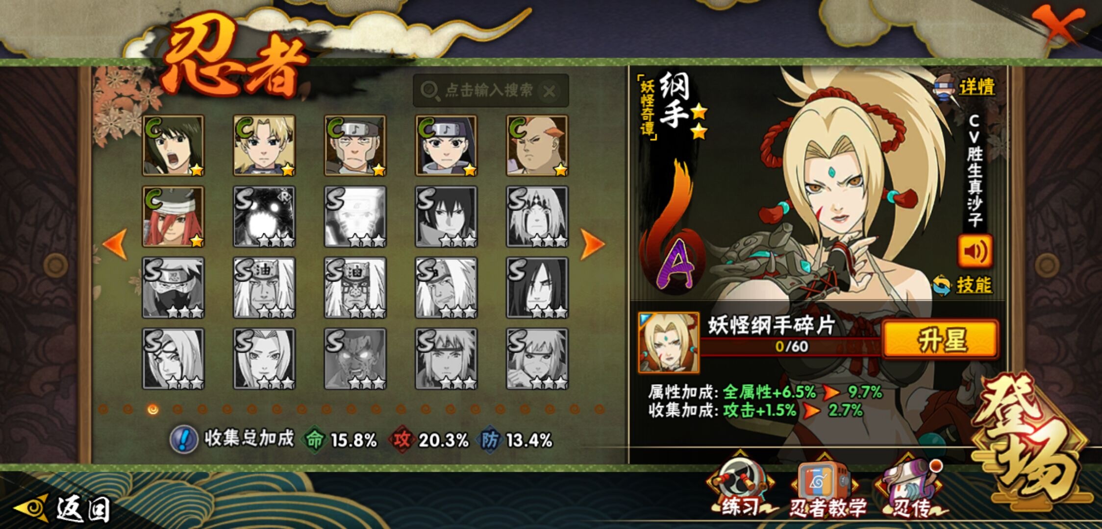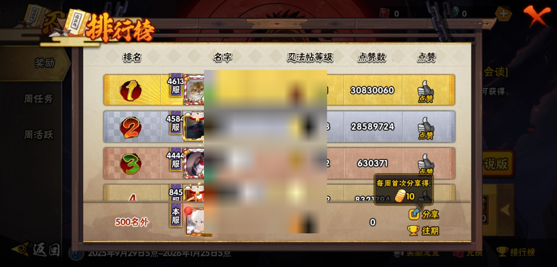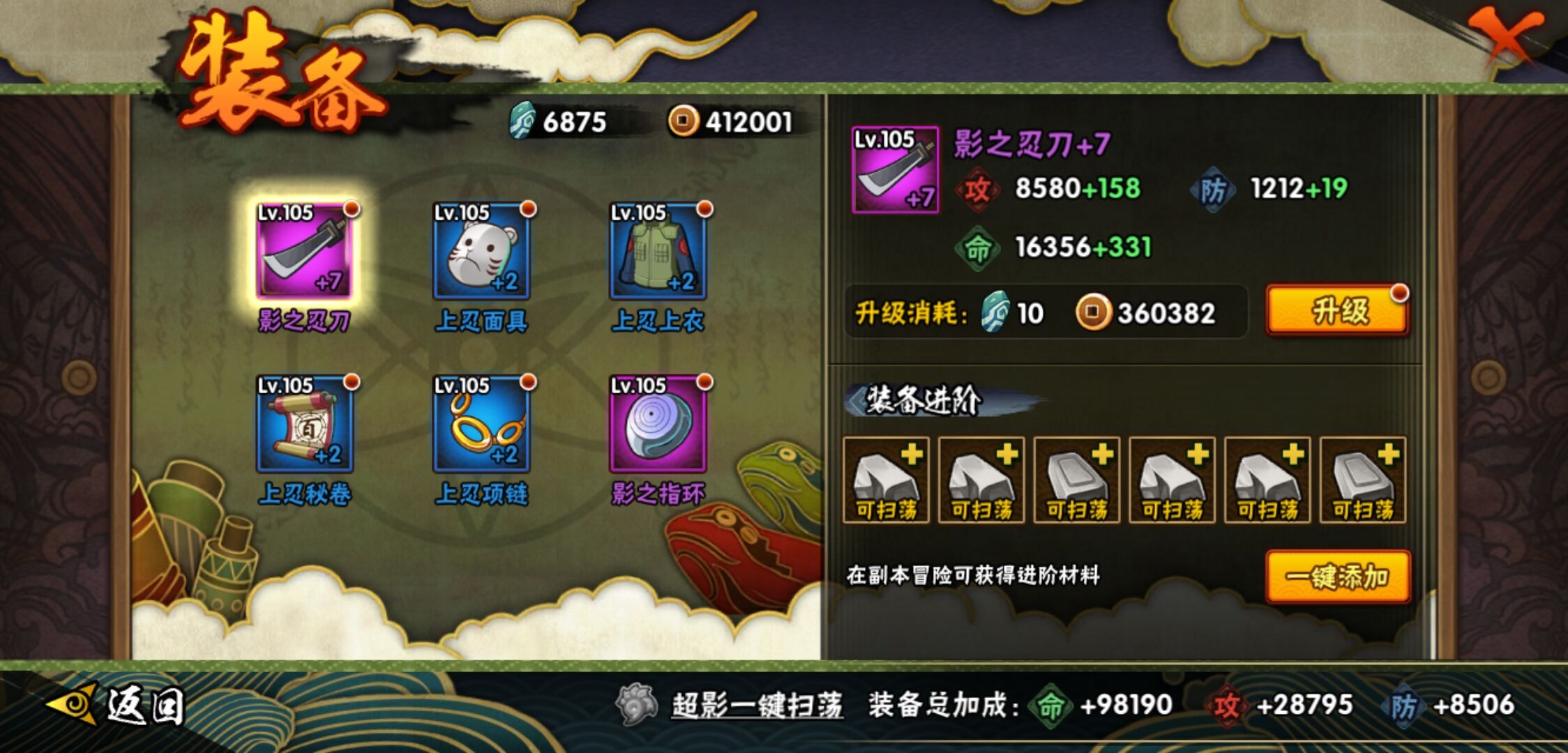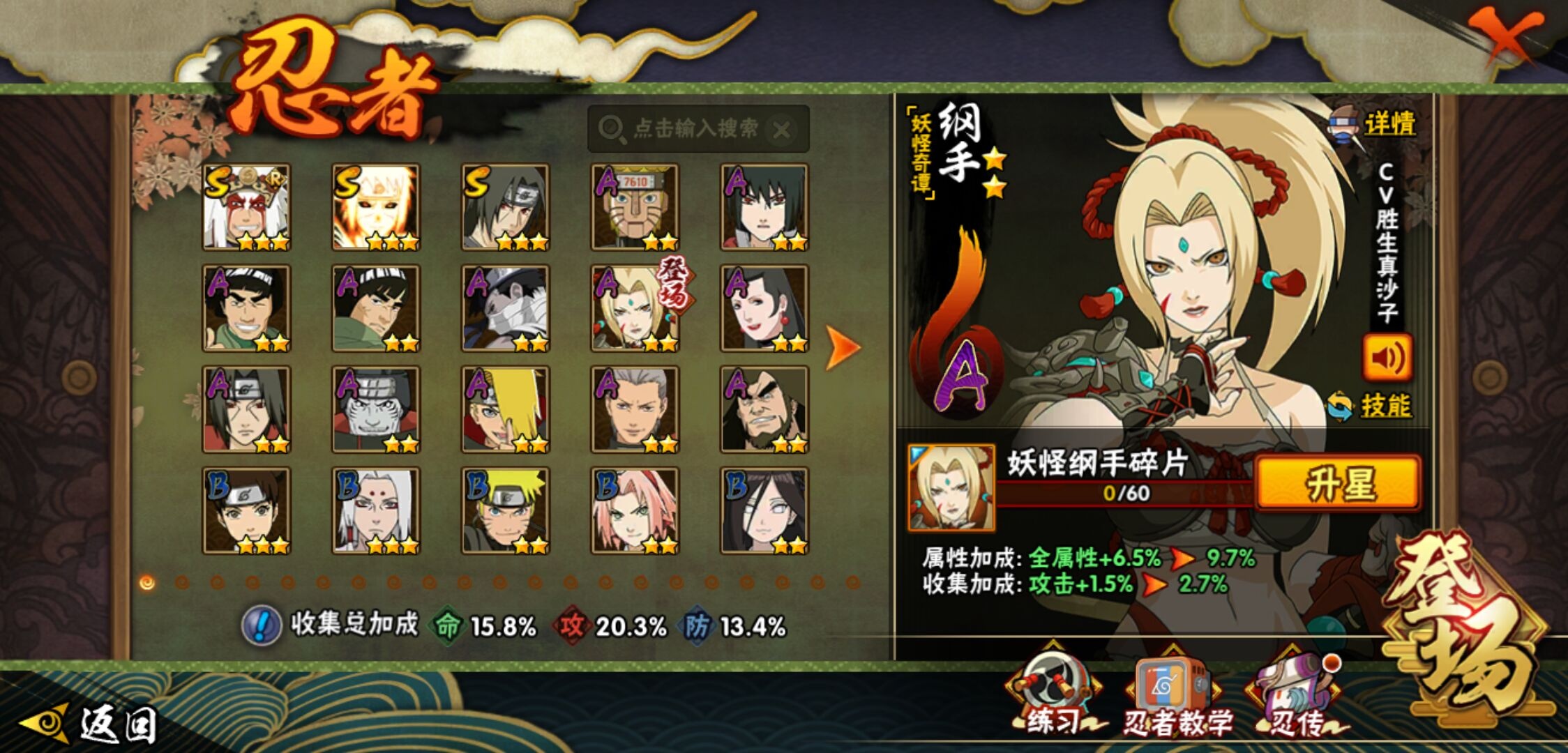 【火影忍者】【lyhy9406】战斗力:190w;段位:上忍1阶;本服排名:1011;vip:v4级;s忍:3个;a忍:12个;通灵兽:8个,s忍:舞之豪杰自来也|九喇嘛连结波风水门|须佐能乎宇智波鼬__a忍:初始形态机械鸣人|万花筒写轮眼宇智波佐助|迈特凯(普通)|青春爆炸迈特凯|秽土转生桃地再不斩|妖怪奇谭纲手|不缘|宇智波鼬(普通)|干柿鬼鲛(普通)|迪达拉(普通)|飞段(普通)|羁绊神农__通灵兽:忍犬(普通)|蓝蛇|蛤蟆吉|忍龟|镰鼬|猿魔|砂之守鹤|山椒鱼