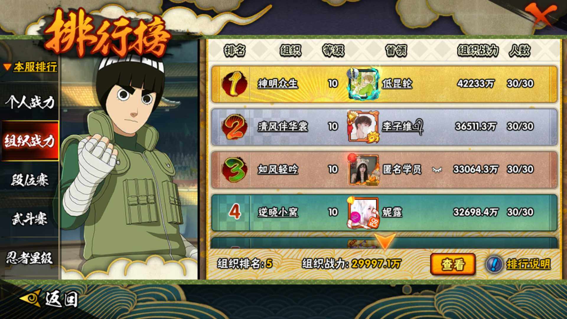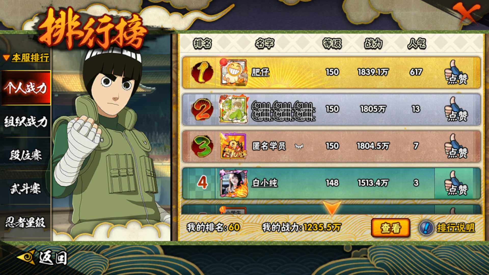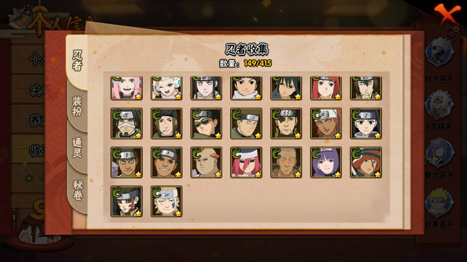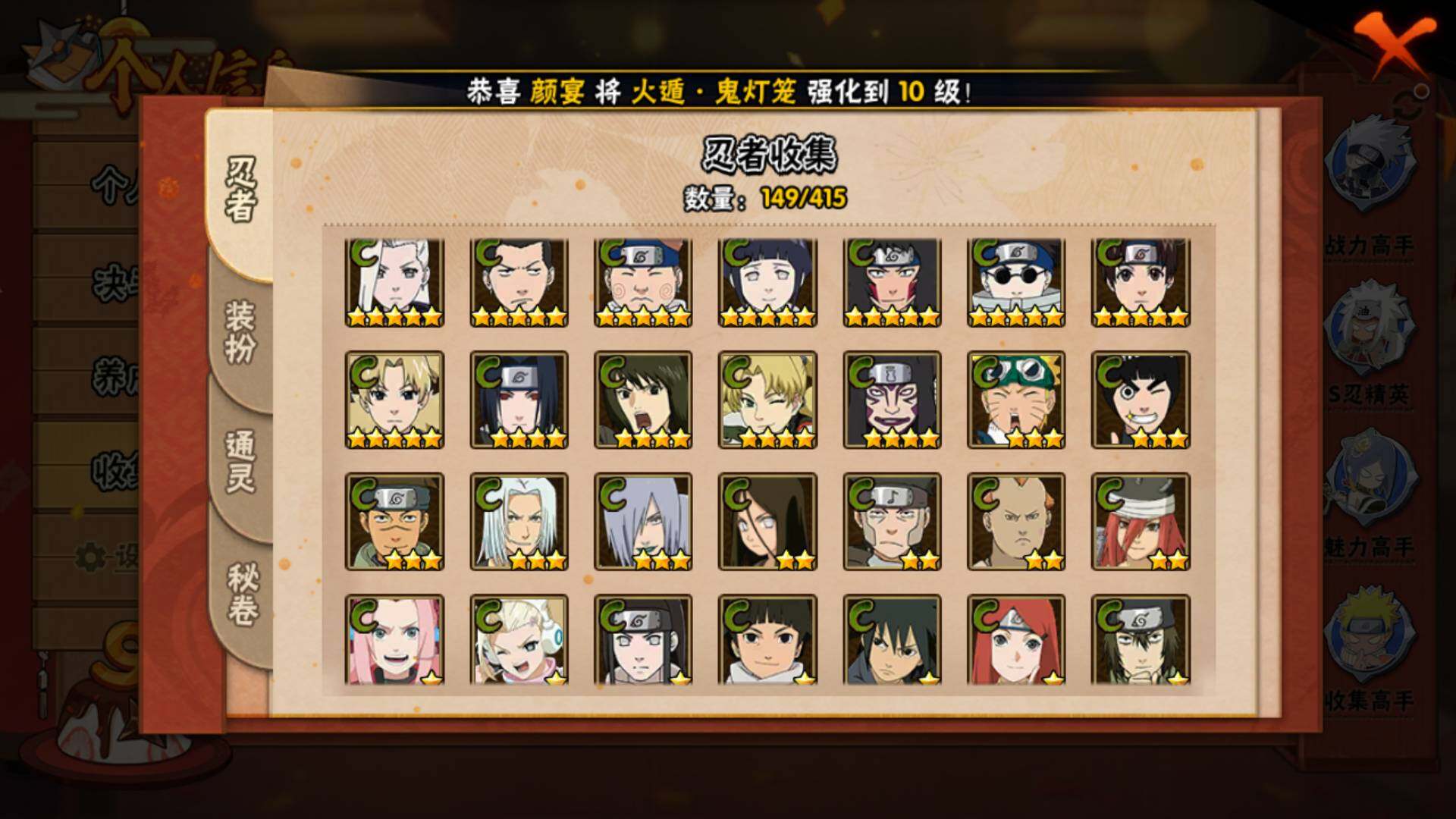 [14681546]v9 1235万战力 16s-30a 三代目风影79片 tt1542 【s级忍者】:千手扉间「秽土转生」3星,宇智波斑「秽土转生·解」3星,艾「忍界大战」3星,宇智波鼬「须佐能乎」4星,宇智波止水「须佐能乎」3星,旗木卡卡西「须佐能乎」3星,烈斗「初代目风影」3星,自来也「舞之豪杰」3星,自来也「传说中的三忍」3星,纲手3星,猿飞日斩3星,波风水门3星,佩恩「天道」3星,宇智波佐助「永恒万花筒」3星,大筒木舍人「最终章」3星,漩涡鸣人「暴怒·第六尾」3星 【a级忍者】:波风水门「青年」2星,迪达拉2星,飞段2星,飞段「死司凭血」2星,干柿鬼鲛5星,漩涡博人「桃式显现」2星,机械鸣人「初始形态」2星,迈特凯5星,旗木卡卡西「幻之真容」2星,桃地再不斩「秽土转生」2星,我爱罗「疾风传」3星,蝎4星,蝎「绯流琥」2星,角都「秽土转生」2星,猿飞阿斯玛5星,猿飞阿斯玛「秽土转生」2星,宇智波鼬2星,宇智波佐助「万花筒写轮眼」2星,日向宁次「忍界大战」2星,日向雏田「最终章」2星,长十郎「六代目水影」2星,李洛克「忍界大战」2星,秋道丁次「忍界大战」2星,千代「近松十人卫」2星,神农「羁绊」2星,土台「忍界大战」3星,不缘2星,宇智波泉奈2星,不动2星,迈特凯「青春爆炸」2星