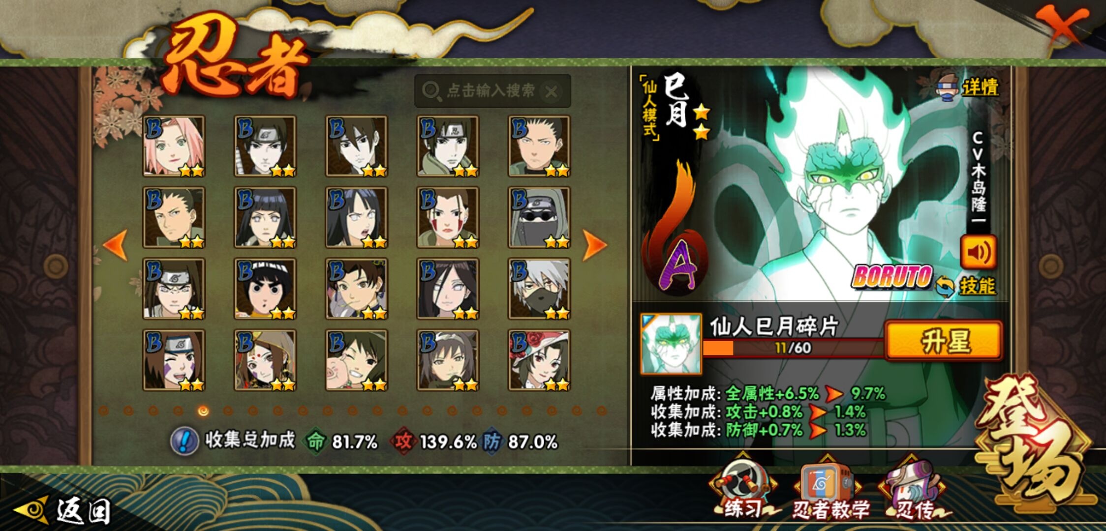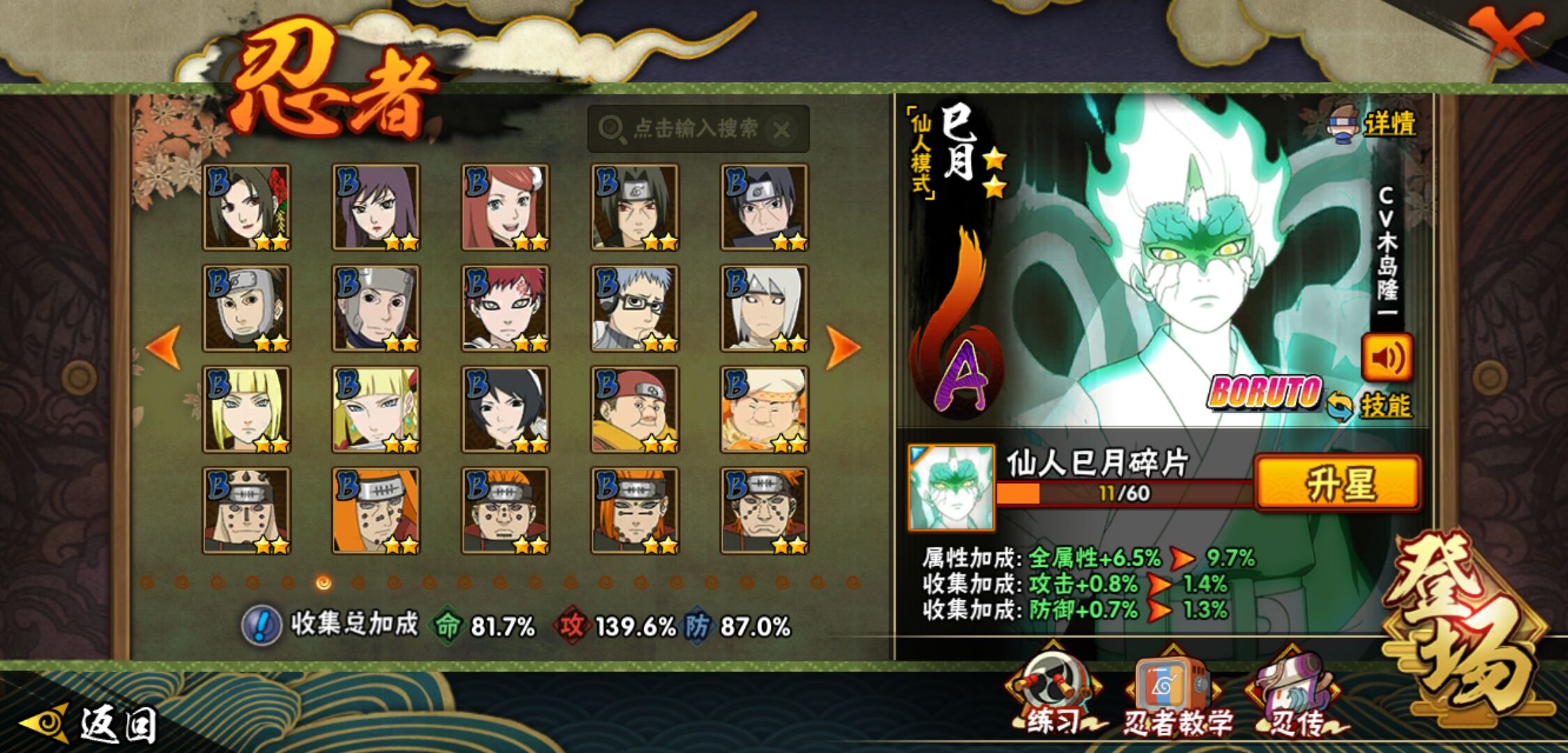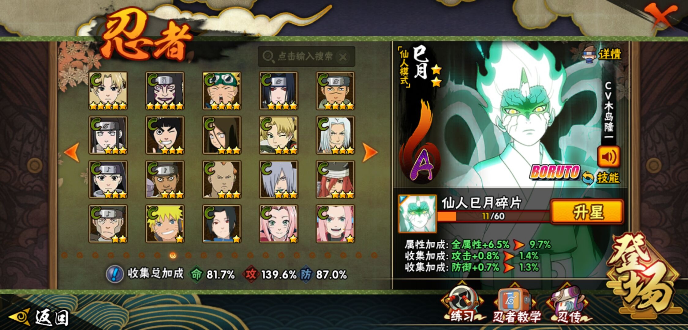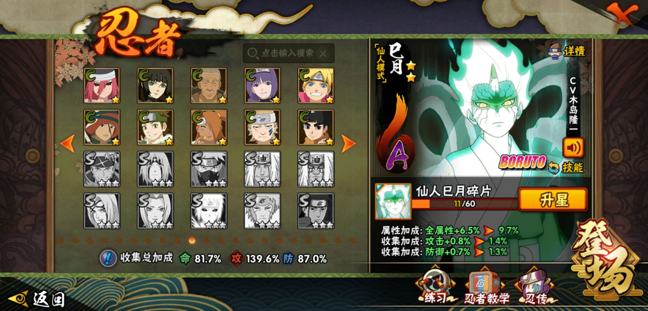 【火影忍者】【lyhy9399】战斗力:1288w;段位:中忍2阶;本服排名:126;vip:v10级;s忍:21个;a忍:36个;通灵兽:18个,s忍:暴怒第六尾漩涡鸣人|九喇嘛连结漩涡鸣人|永恒万花筒宇智波佐助|舞之豪杰自来也|传说中的三忍自来也|大蛇丸(普通)|死门迈特凯|波风水门|秽土转生波风水门|猿飞日斩(普通)|秽土转生猿飞日斩|秽土转生千手扉间|秽土转生解宇智波斑|须佐能乎宇智波鼬|神秘面具男(普通)|白面具宇智波斑|忍界大战宇智波带土|红夜之刃神秘面具男|天道佩恩|秽土转生长门|博人传大筒木金式__a忍:迈特凯(普通) 5星|猿飞阿斯玛(普通) 5星|干柿鬼鲛(普通) 5星|蝎(普通) 4星|飞段(普通) 4星|忍界大战日向宁次 3星|疾风传我爱罗 3星|忍者之路神秘面具男|万花筒写轮眼宇智波佐助|须佐能乎宇智波佐助|宇智波泉奈|忍界大战秋道丁次|幻之真容旗木卡卡西|青春爆炸迈特凯|宇智波止水(普通)|青年波风水门|近松十人卫千代|五代目水影照美冥|秽土转生桃地再不斩|忍界大战奇拉比|青年艾|忍界大战土台|漂泊武士千手扉间|半蛇斗篷药师兜|青年长门|漂泊浪客佩恩六道|绯流琥蝎|宇智波鼬(普通)|迪达拉(普通)|死司凭血飞段|羁绊神农|桃式显现漩涡博人|五代目雷影达鲁伊|六代目水影长十郎|仙人模式巳月|四代目土影黑土__通灵兽:忍犬(普通)|蓝蛇|砂之守鹤|蛤蟆吉|忍龟|镰鼬|猿魔|山椒鱼|蜃|蛤蟆仙人|鲛鲨|蛤蟆健|蛞蝓(普通)|乌鸦(普通)|蛤蟆龙|蛤蟆广|梦貘|鹰